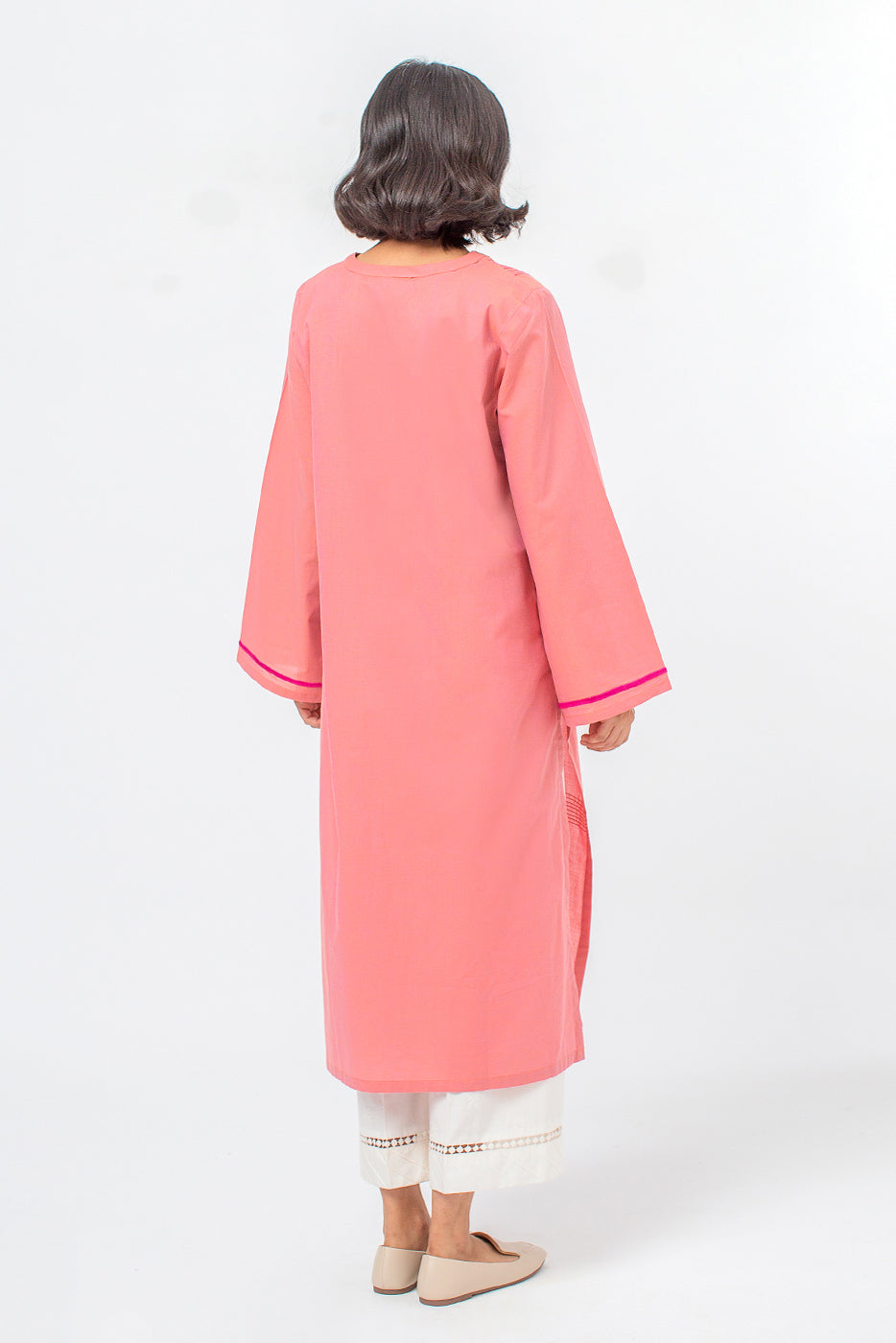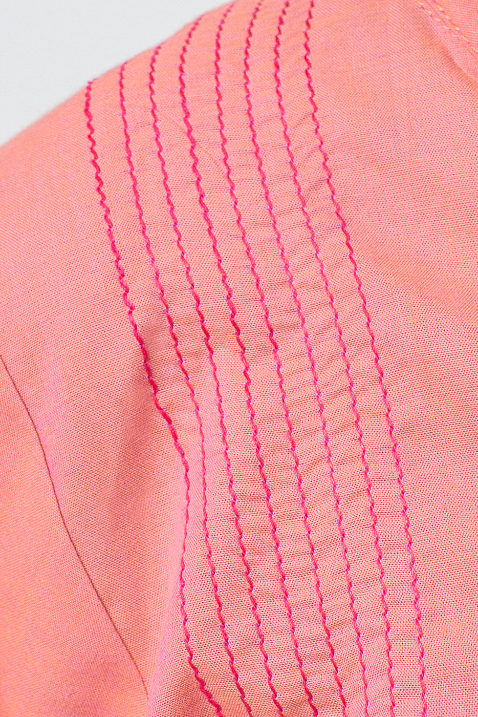 Basic Solid Coloured Shirt With Band Collar And Placket With Contrasting Stitch Detail , Stitches Detail On Front And Sleeves.Fabric:ChamberyWhat You'll Get: Shirt
