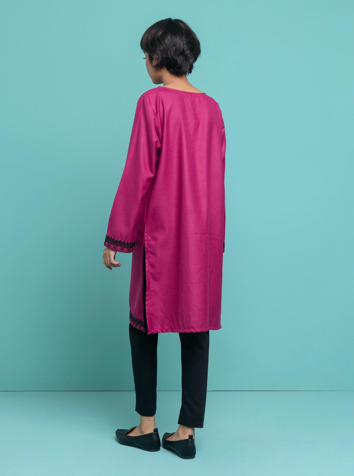 Fabric:LinenEmbellishment Detail:Basic boat neckline with embroidery on front neckline, pearl detail on neck. Embroidered border on front hem and sleeves.No. of Units: ShirtFit: StraightSize : 8 & 10 - 3" , 12 - 38" , 14 - 40"