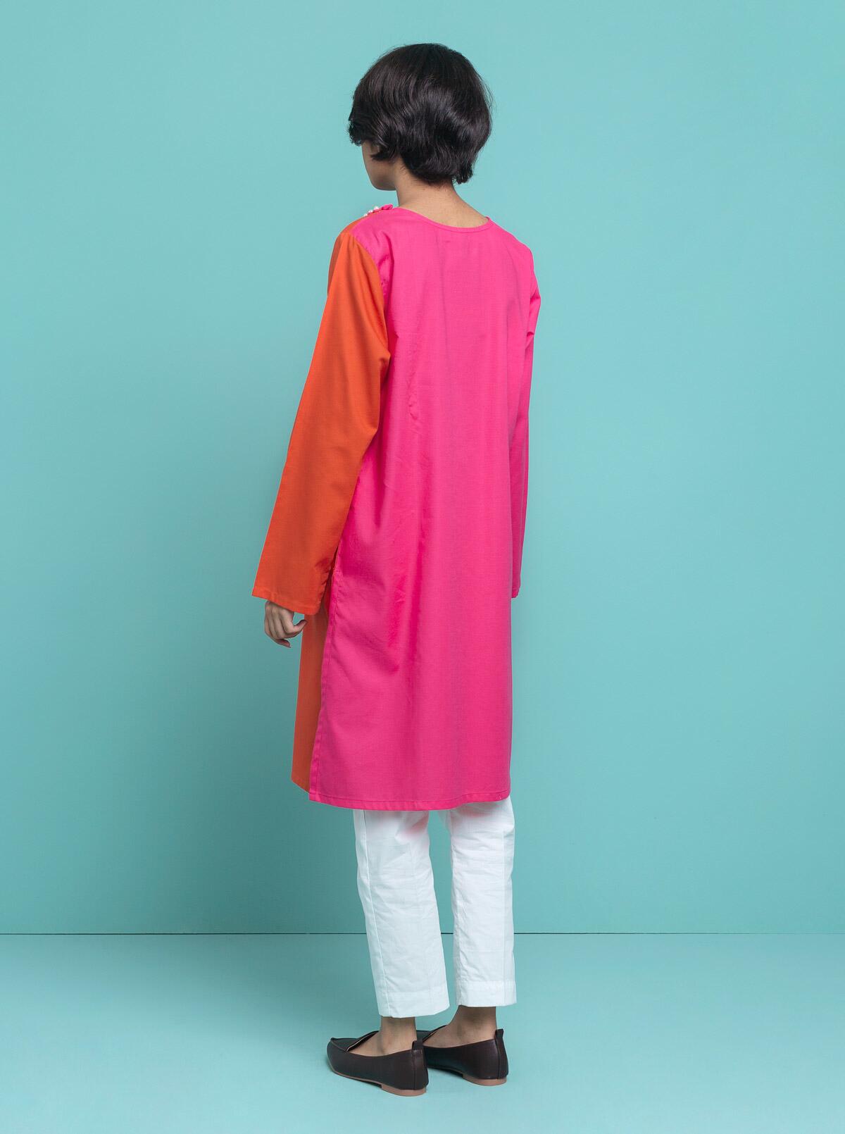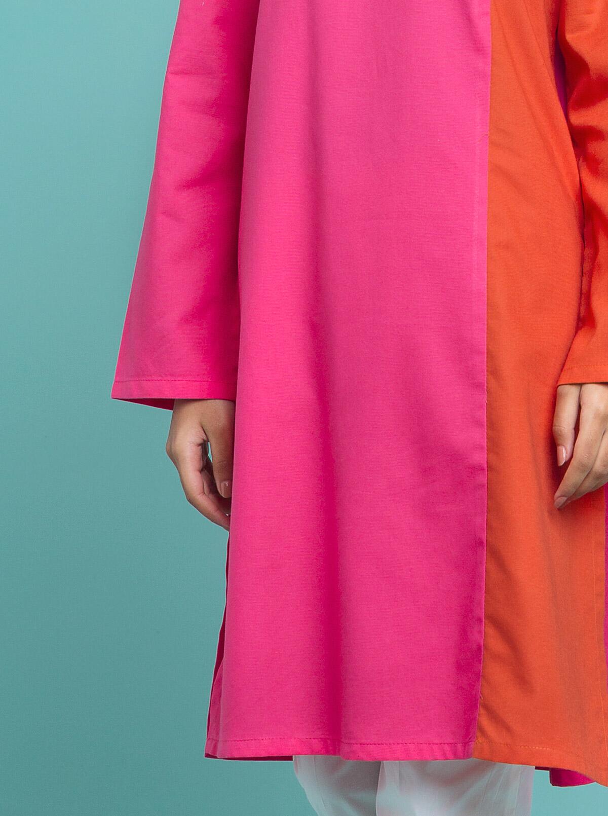 Fabric:KhaddarEmbellishment Detail:Round neckline with side placket with loop and pearl detail.No. of Units: ShirtFit: StraightSize : 8 & 10 - 3" , 12 - 38" , 14 - 40"