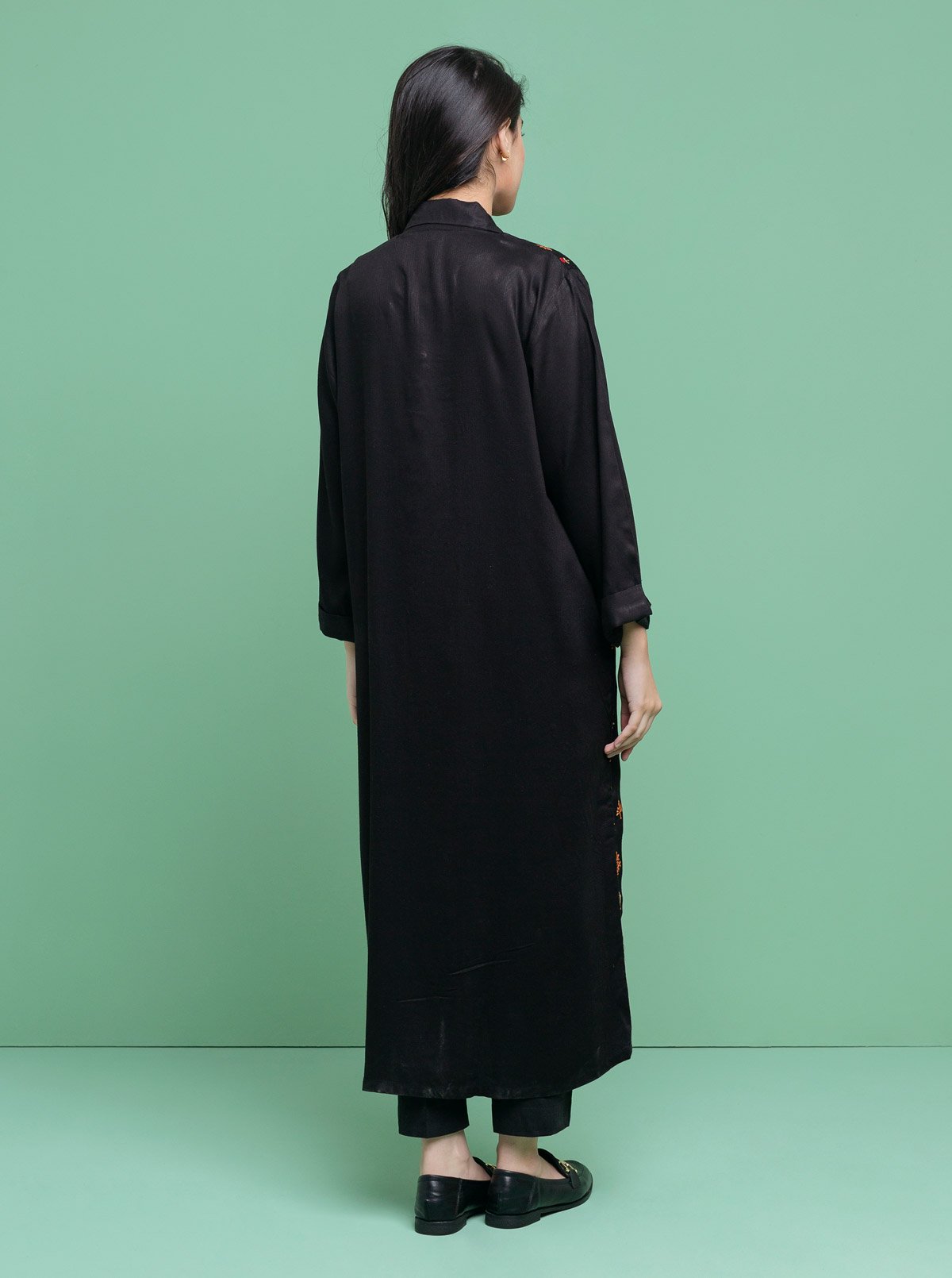 Basic collar, fully embroidered front, box pleat detail, long A line shirtCuff detail on sleevesNo. of Units: ShirtFit: RegularFabric:LinenSize : 8 & 10 - 36" , 12 & 14 - 36"