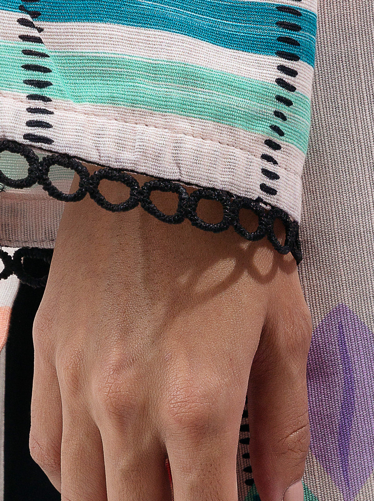 Regular Fit Printed Kurta With Placket. Lace Detail On Sleeve And Hem. Button And Pearl Embellishment On Placket. Fabric: Khaddar