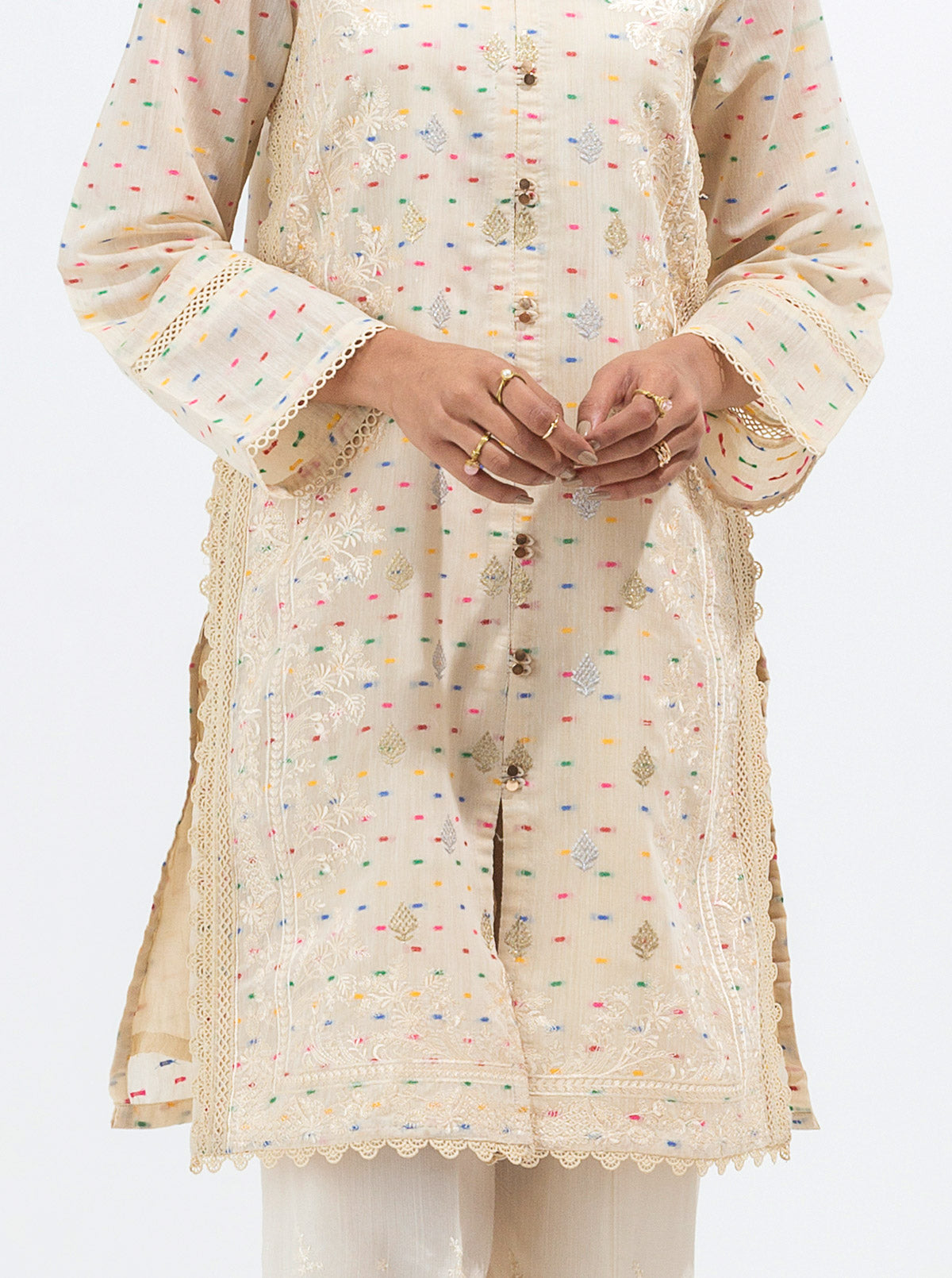 Textured Fabric With Embroidery On Front And Sleeves. lace Detail On Front And inserts On Sleeves Fabric: Paper Cotton