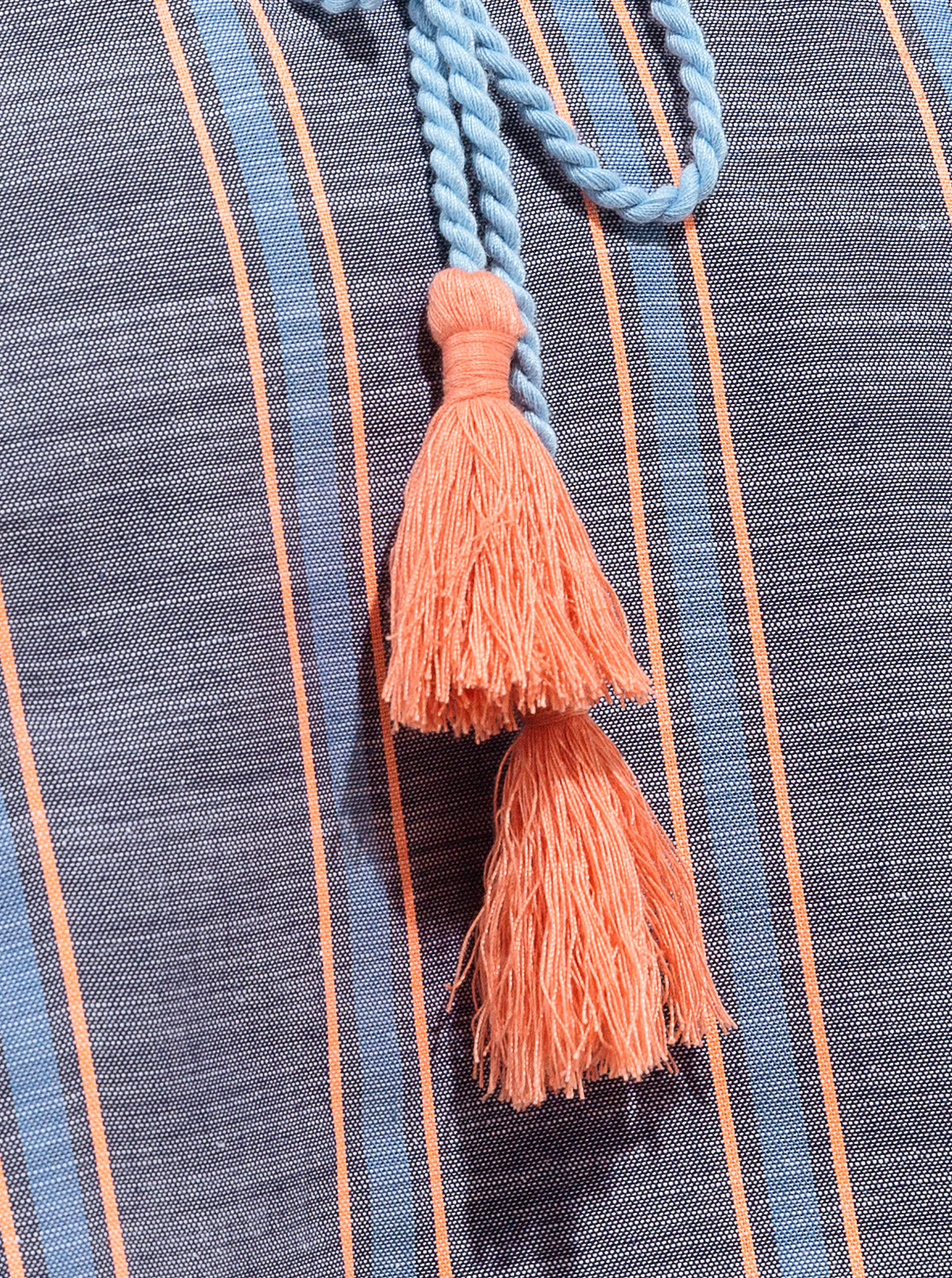 Stripe Fabric Stitched into A Gathered Top With Tassle Detail Fabric: Yarn Dyed