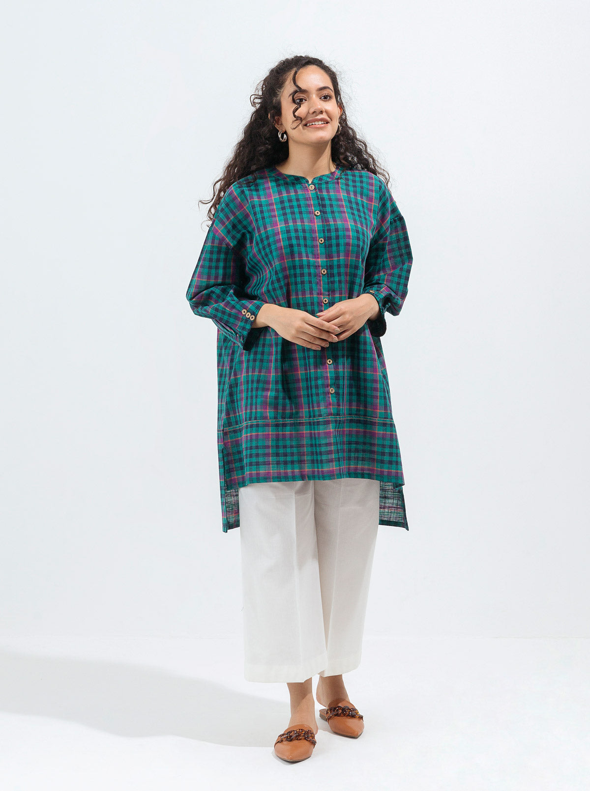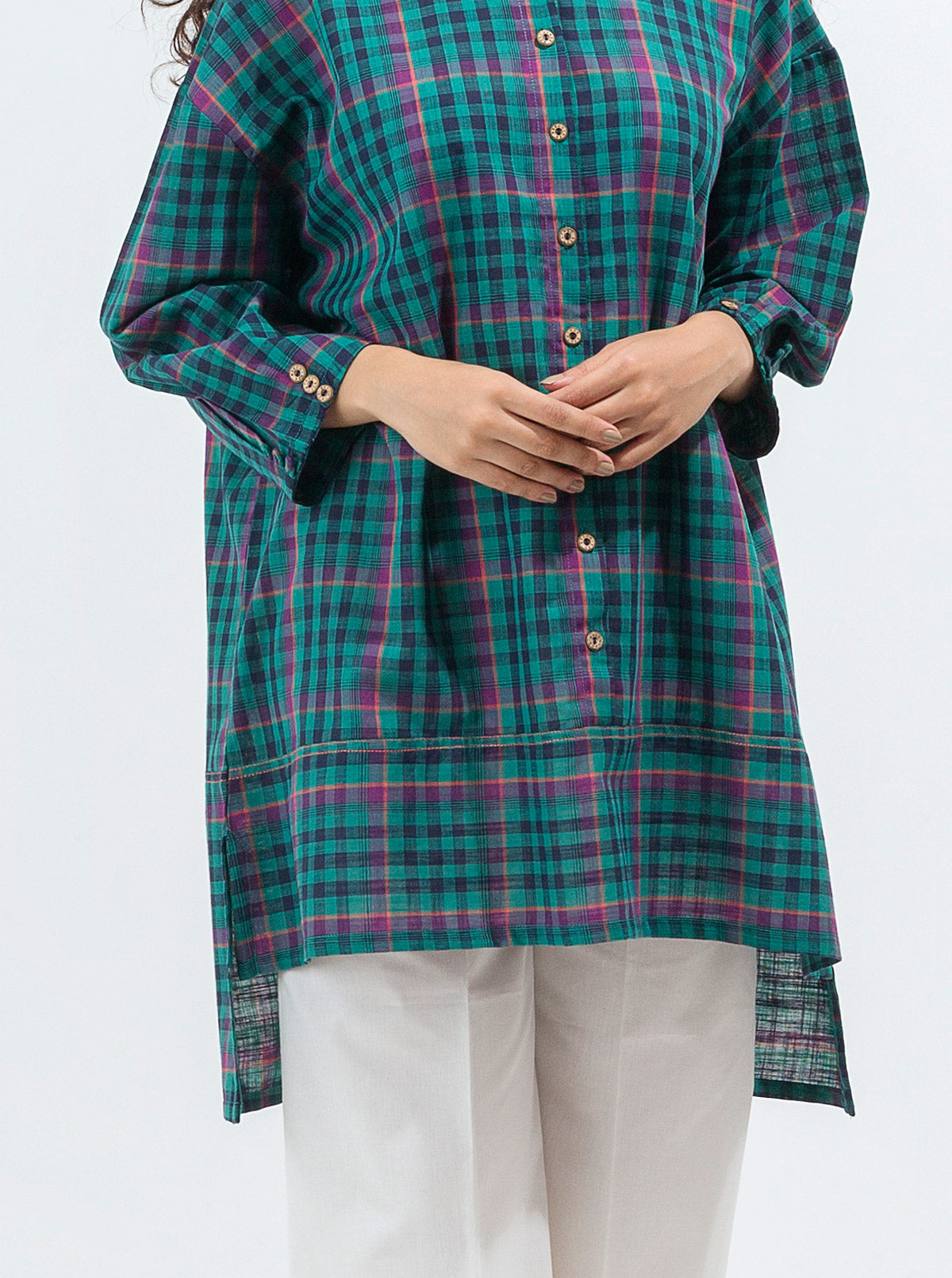 loosefit Top With Wooden Button Detail On Front And Sleeves
