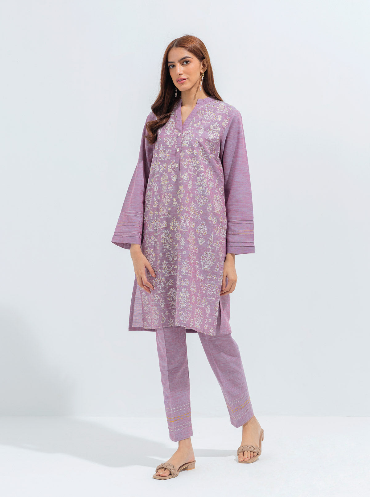 Basic Shirt With Band Collar And Placket With Button Detail, Fully Screen Printed Front With Pintucks Detail On Sleeves. Fabric: Cotton Slub