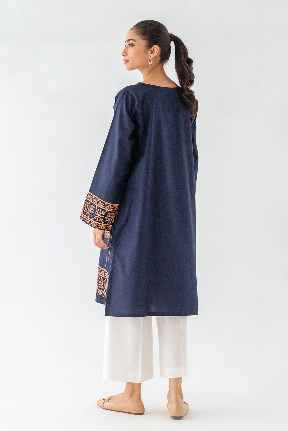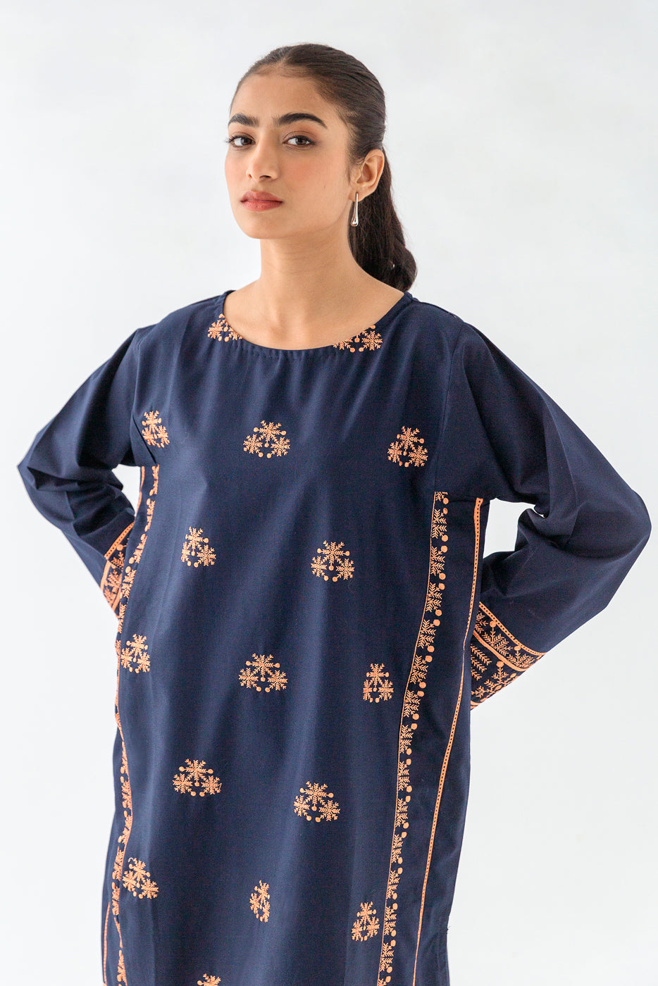 Basic Boat Neckline With Embroidered Front And Sleeves In Accent Tone.A Line Sihouette With Short Slits Fabric:Plain KhaddarWhat You'll Get: Shirt