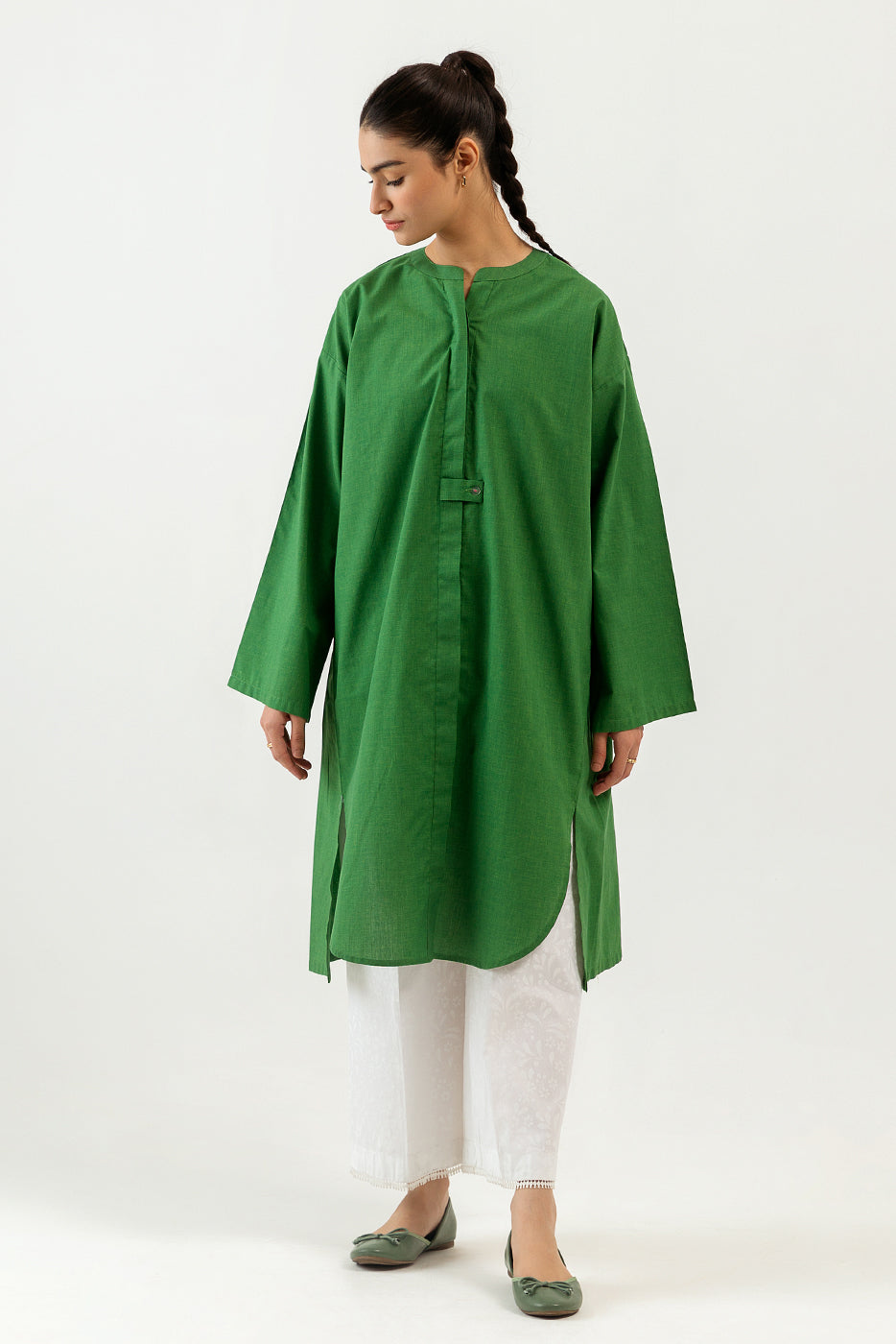 Bottle Green Solid Shirt With Front Placket And Loop Detail.Fabric: Chambray