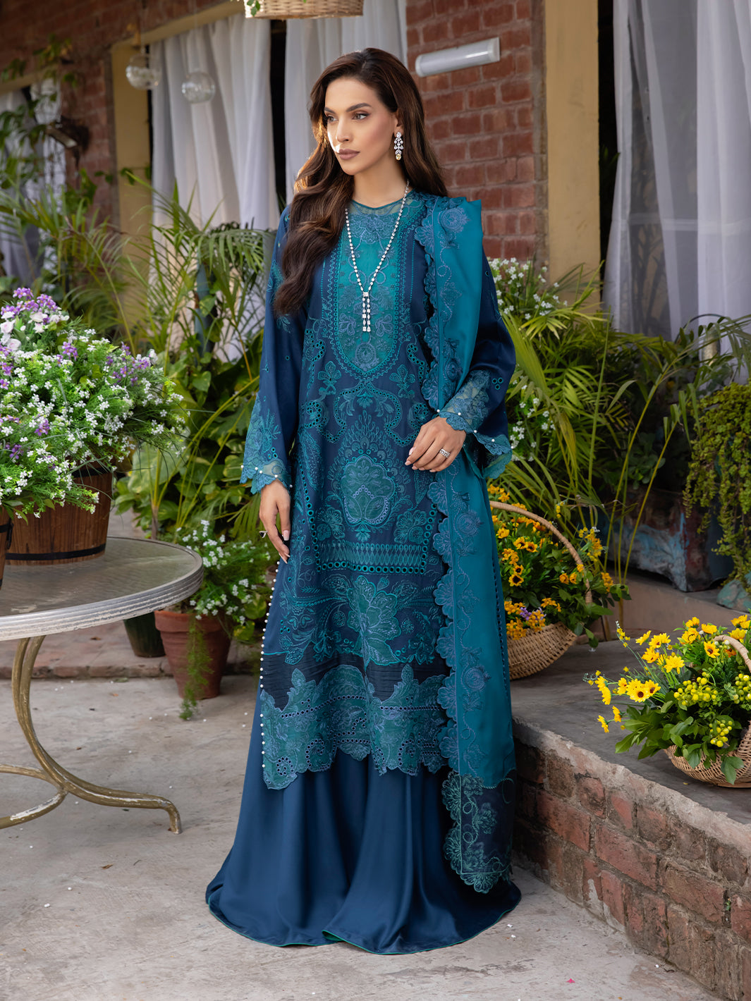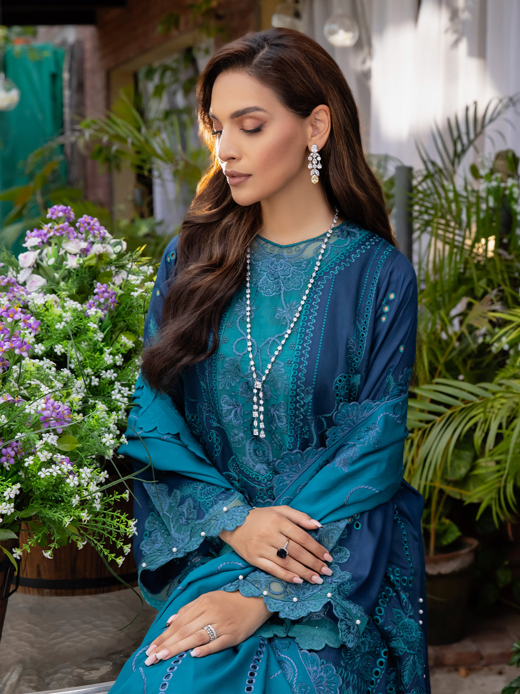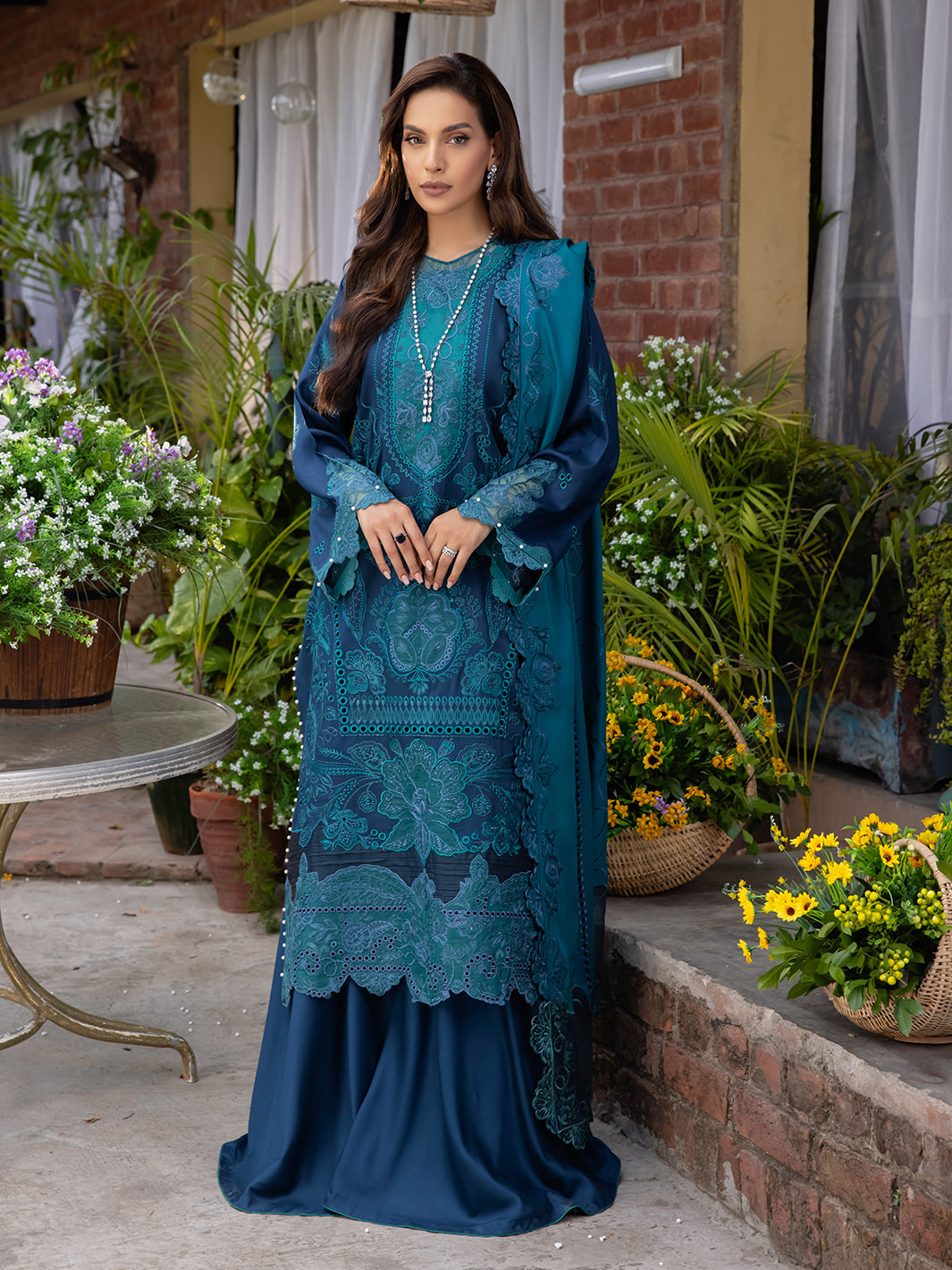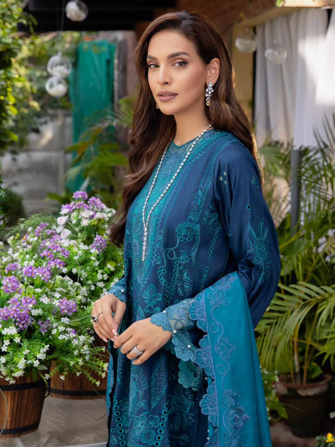 | Dyed Schiffli Embroidered Front with Lazar Style Applick Neck and 2 types of Shirt Motifs | 1.25 Meter |
