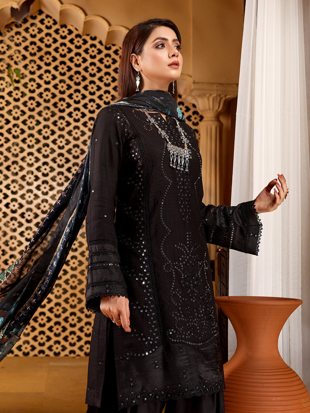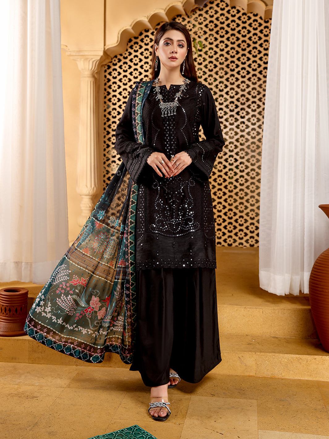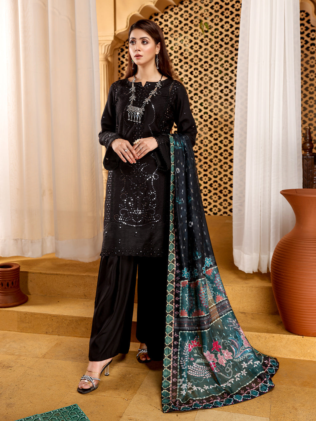 | Dyed Dobby Staple Sequence Embroidered Front | 1.25 mtr |
