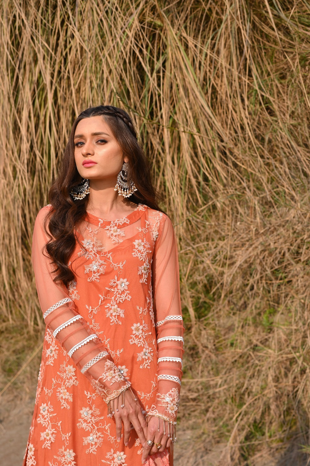 Handmade Organza Plates Laces work on Daman & Sleeves