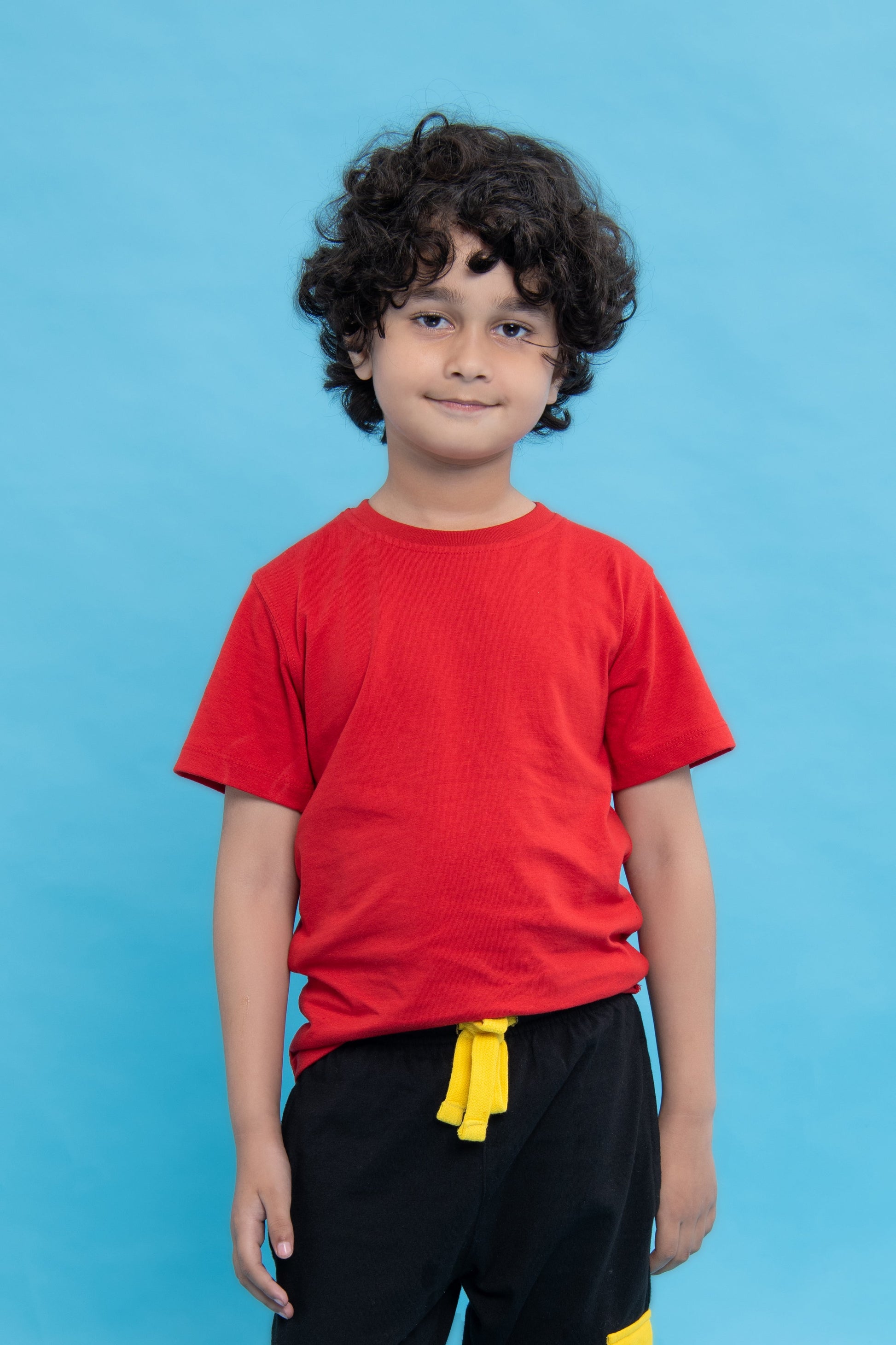 Red Basic Tee With Round Neck. Take On The Day In Bold Style With This Basic Tee! The Red Hue And Round Neck Make A Statement, Ready To Be Paired With Your Favorite Jeans Or Joggers For A Look That Will Take You Anywhere. Show The World Who You Are: Take The Challenge!