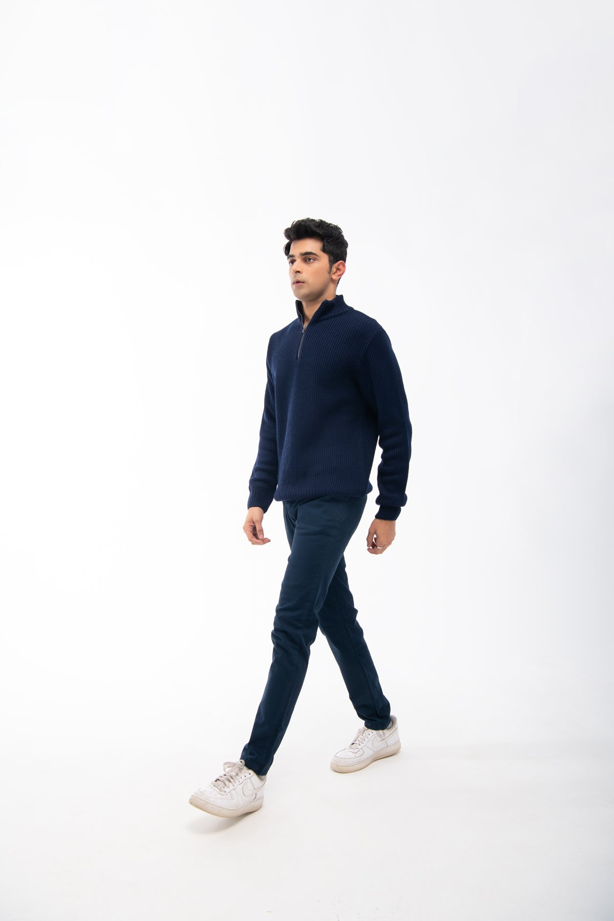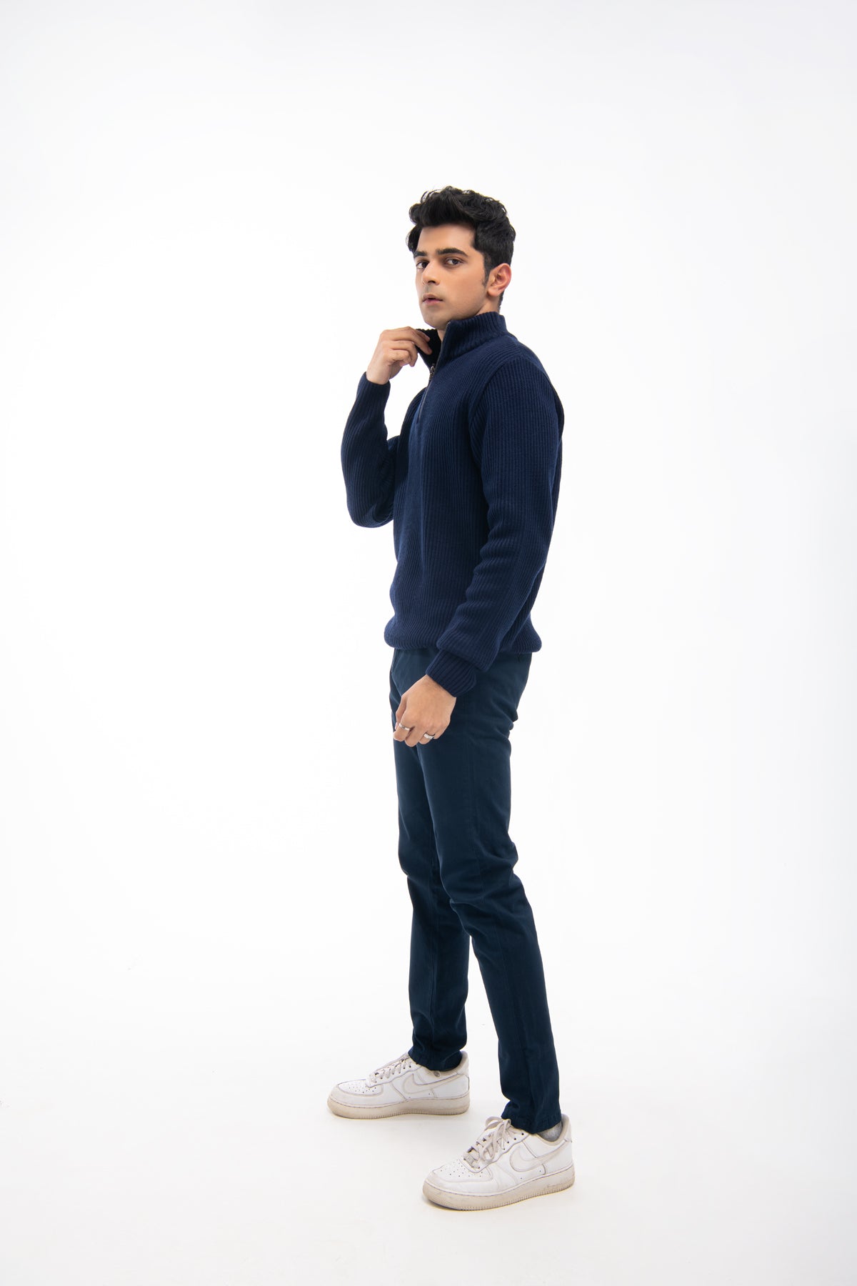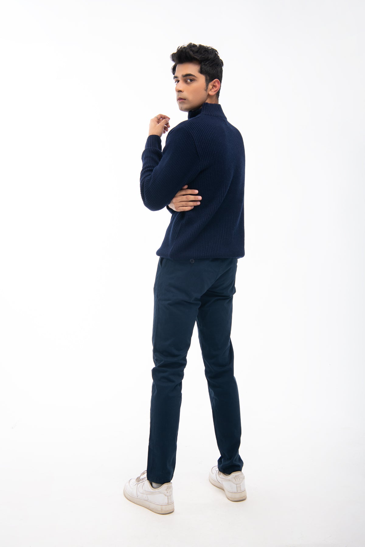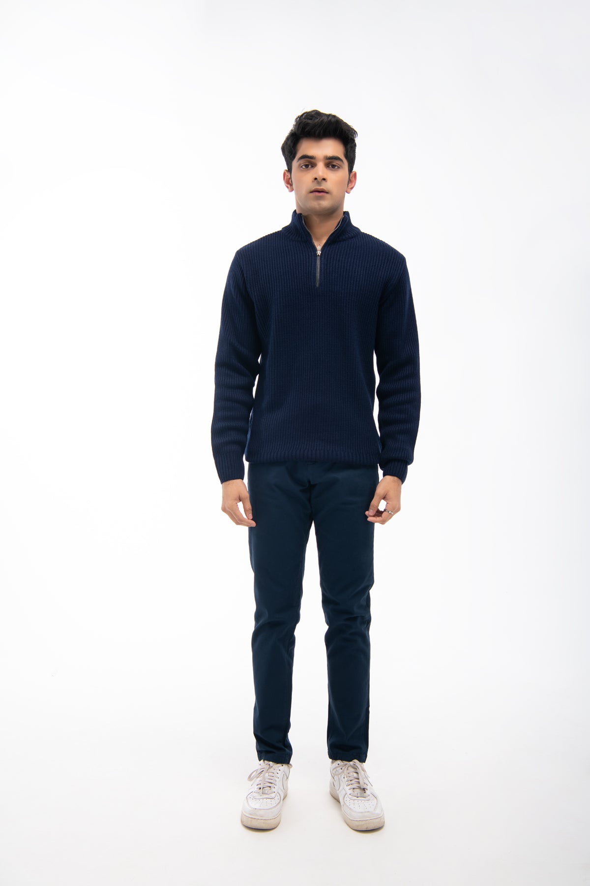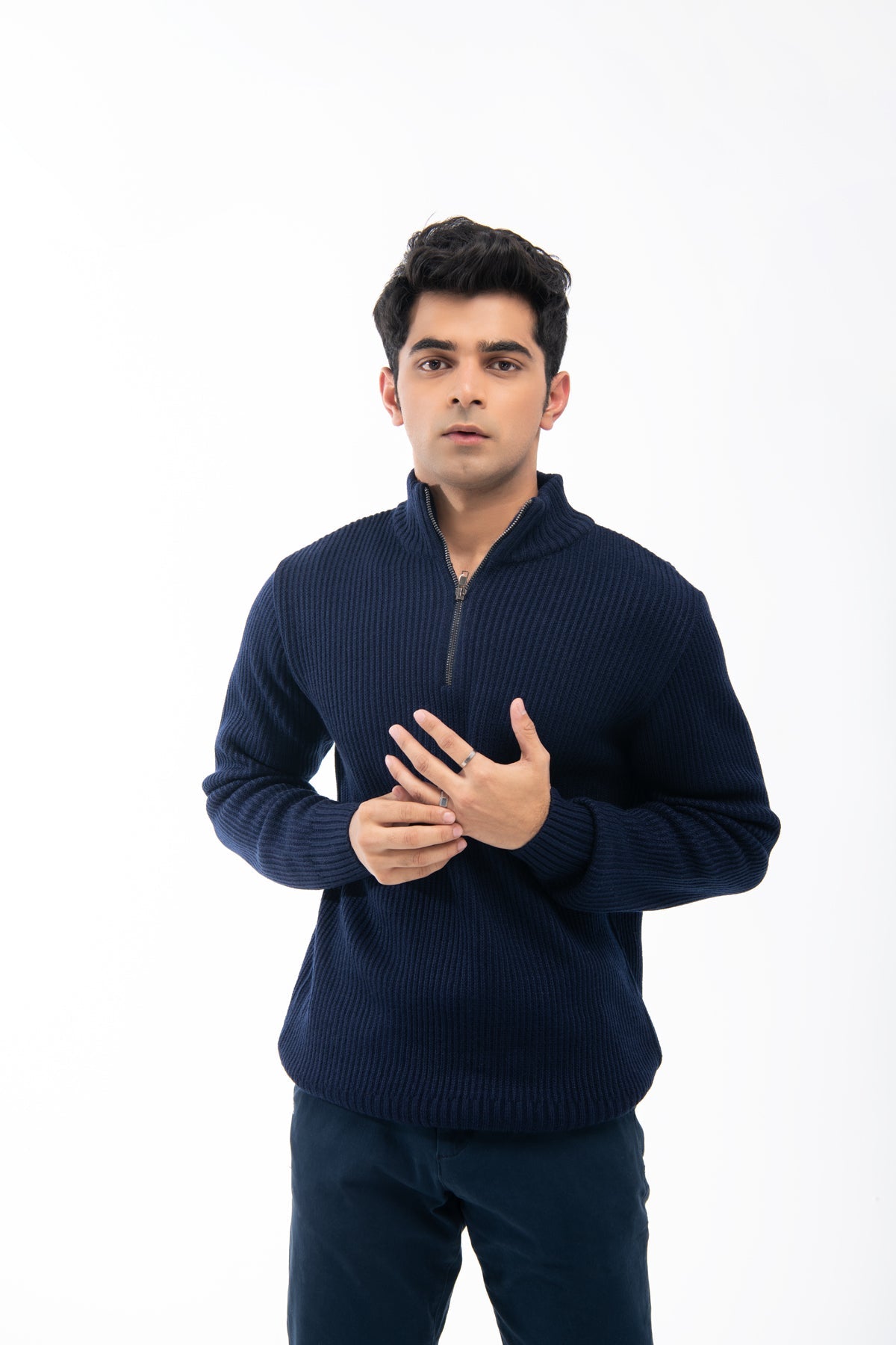 Model Wear Sweater In Cotton Poly Mix Material