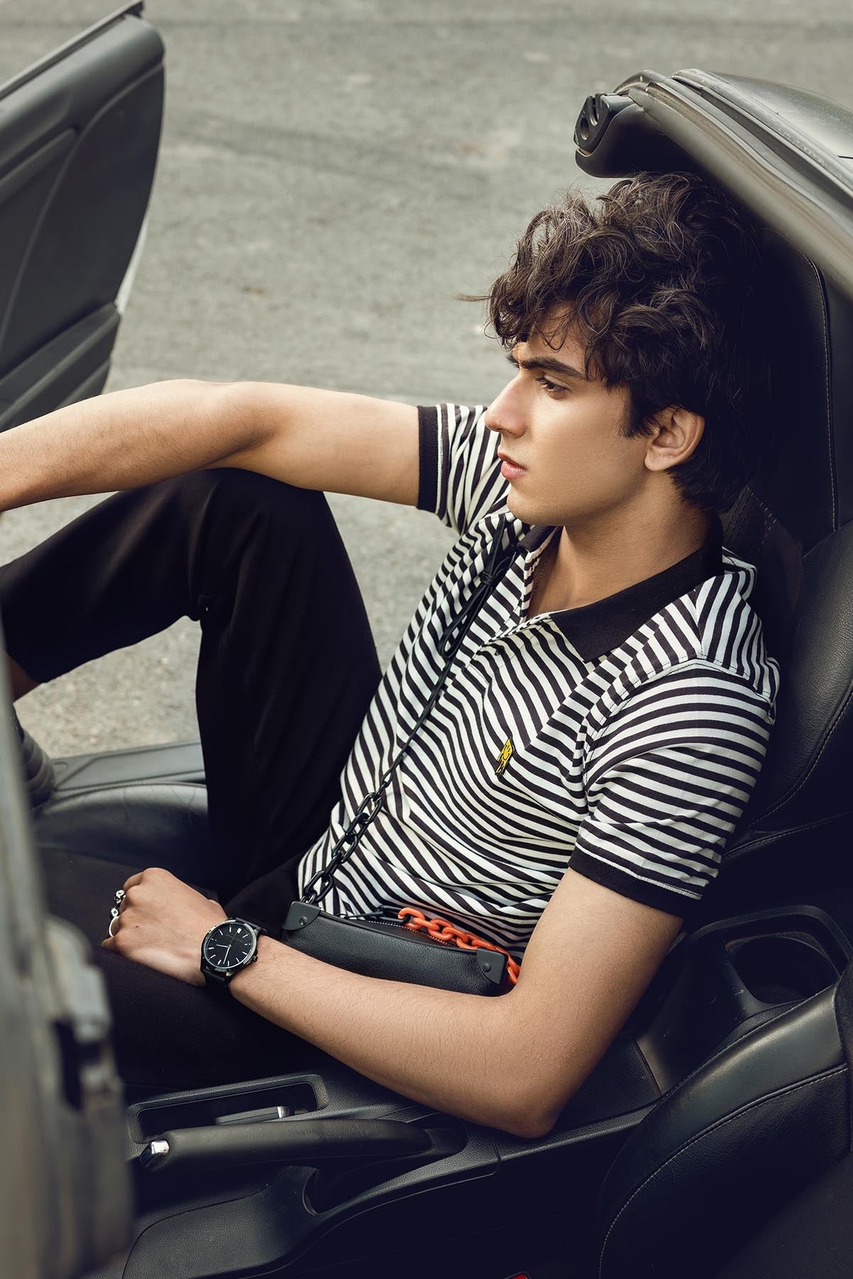 Behold The Power Of Stripes. A Black And White Men’S Polo Shirt With A Pop Of Yellow Color, A Perfect Fit For A Casual Night Out.