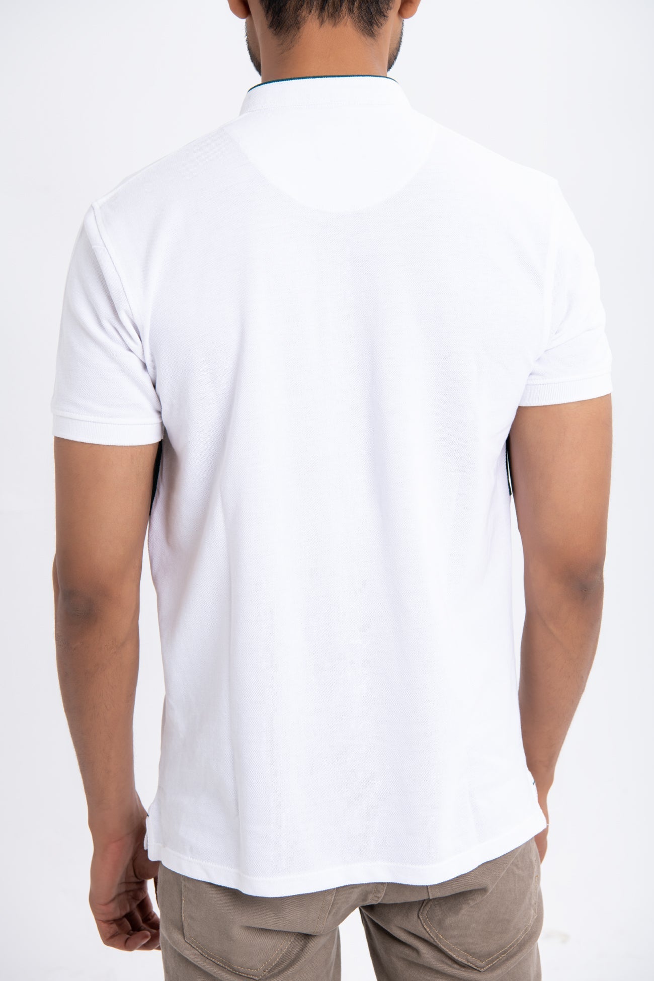 - Regular Fit Cut And Sew Embroidered Polo Shirt With Contrast Pipping On Neck Ban