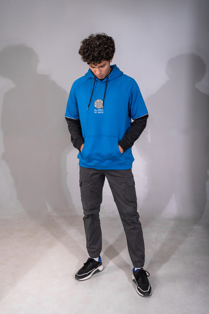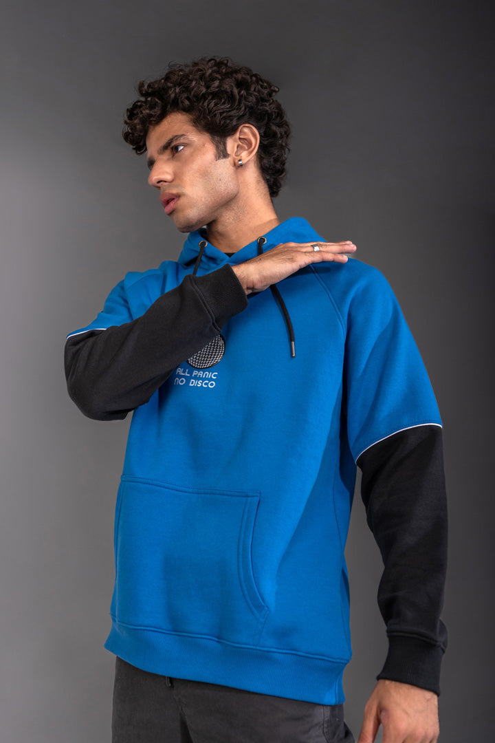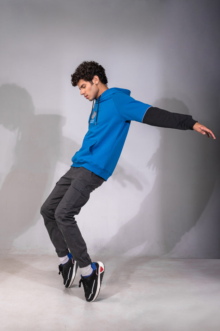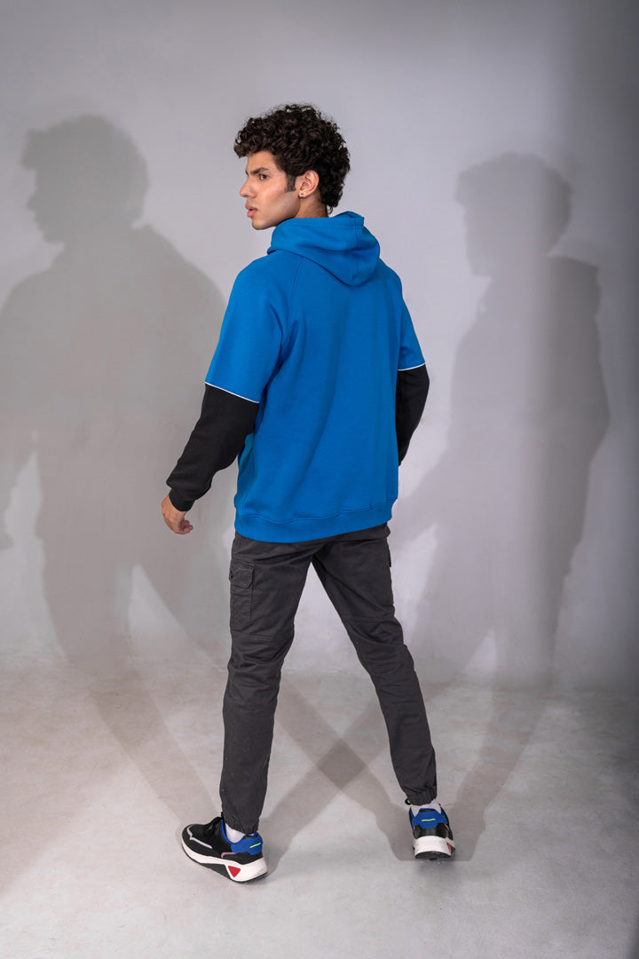 Blue Custom Text Hoodie With Color Blocked Sleeves