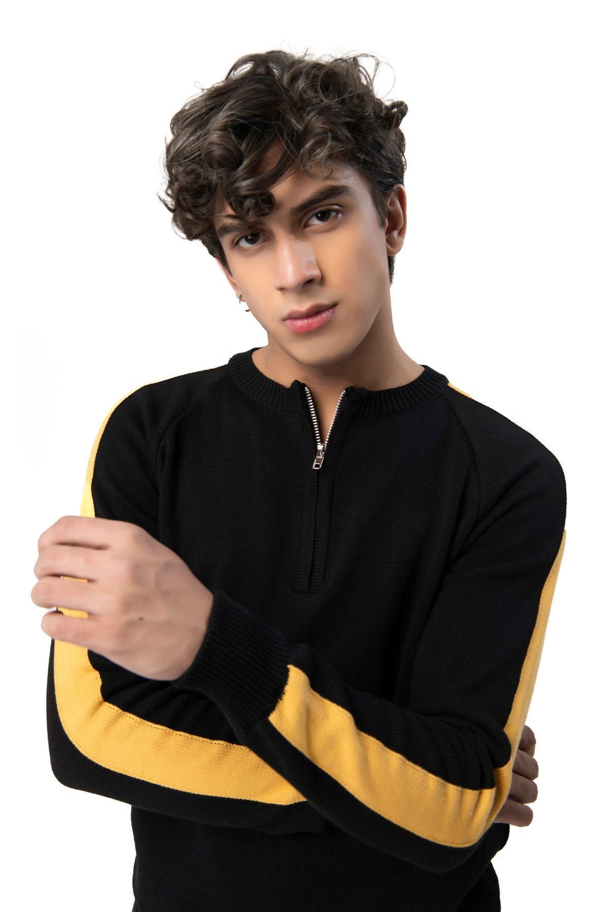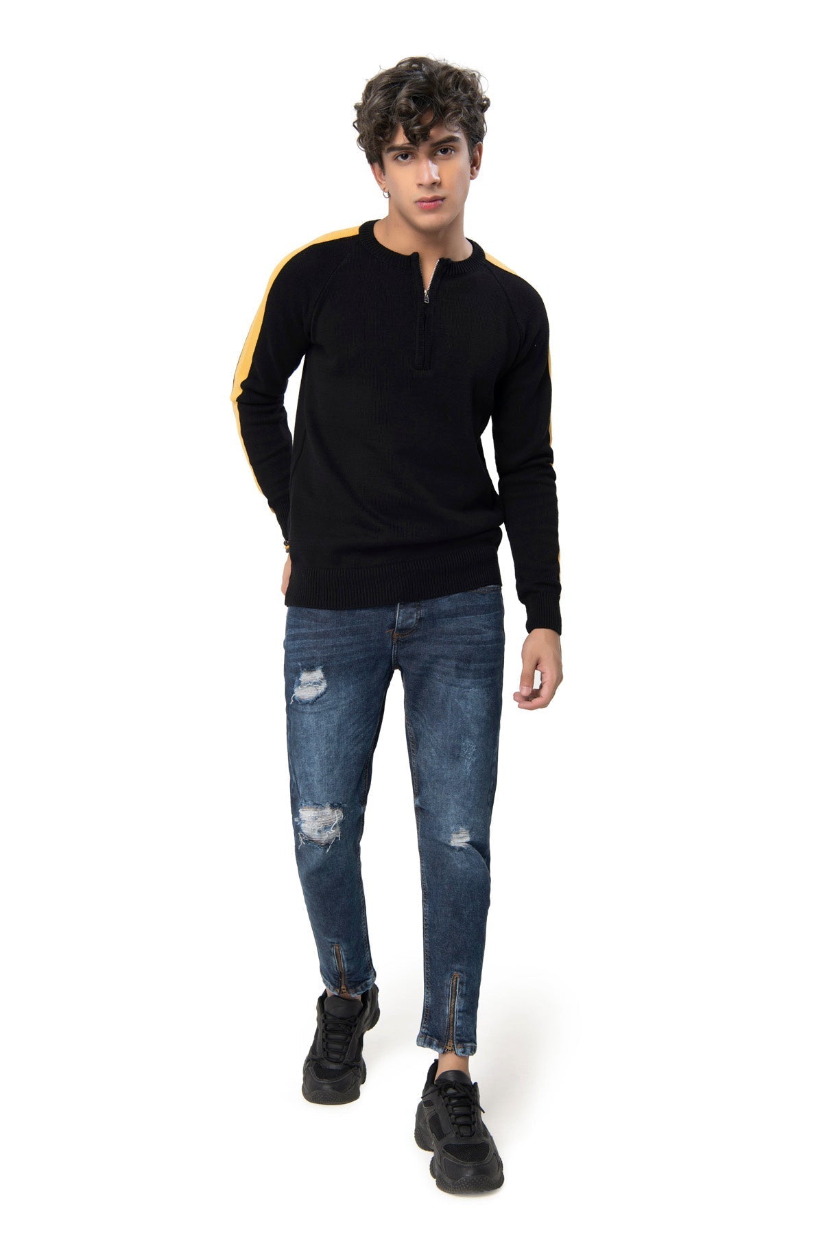Mock Turtleneck Sweater In A Bright Black Color, A Perfect Pick In Winters.