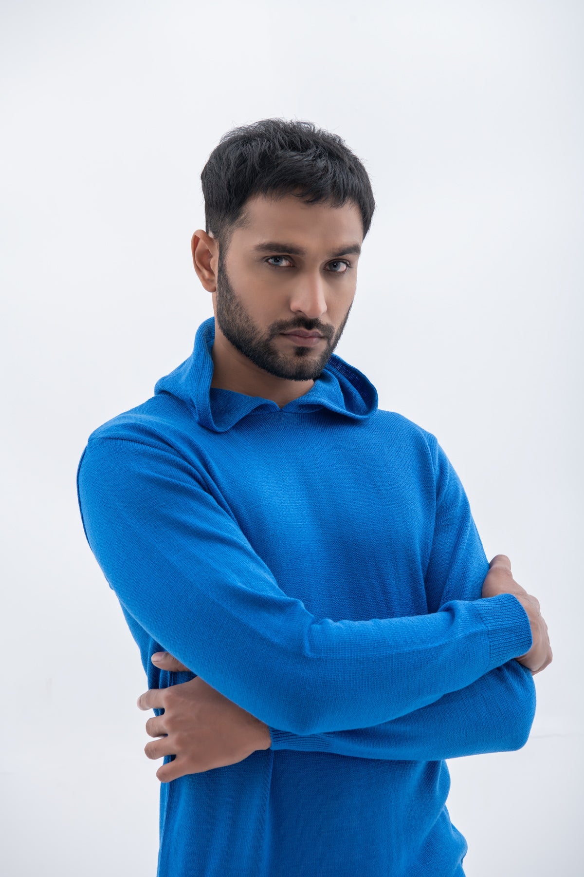 Model Wear Sweater In Cotton Poly Mix Material