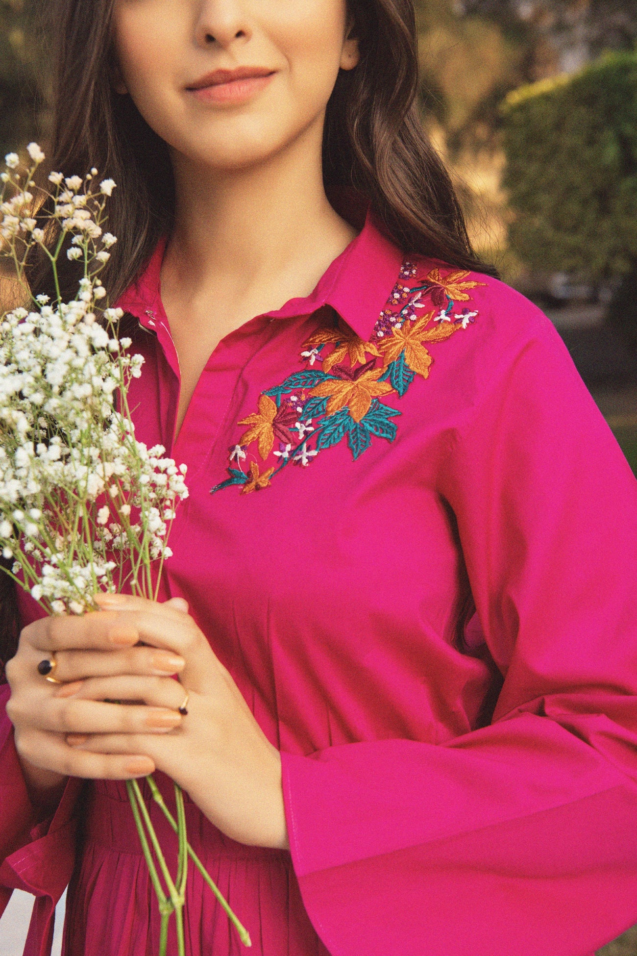 Full-Length Embroidered Cambric Dress With Front Placket.