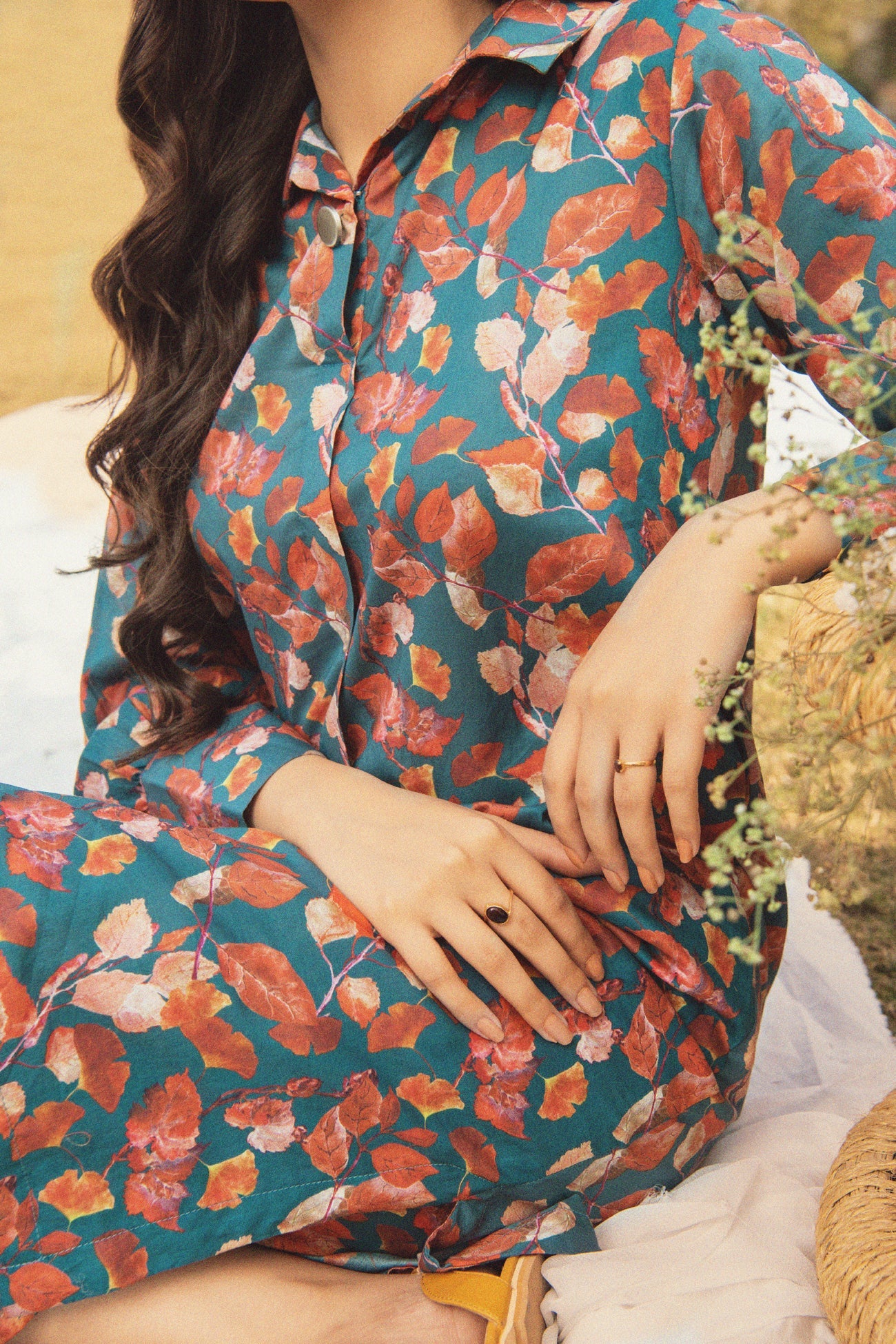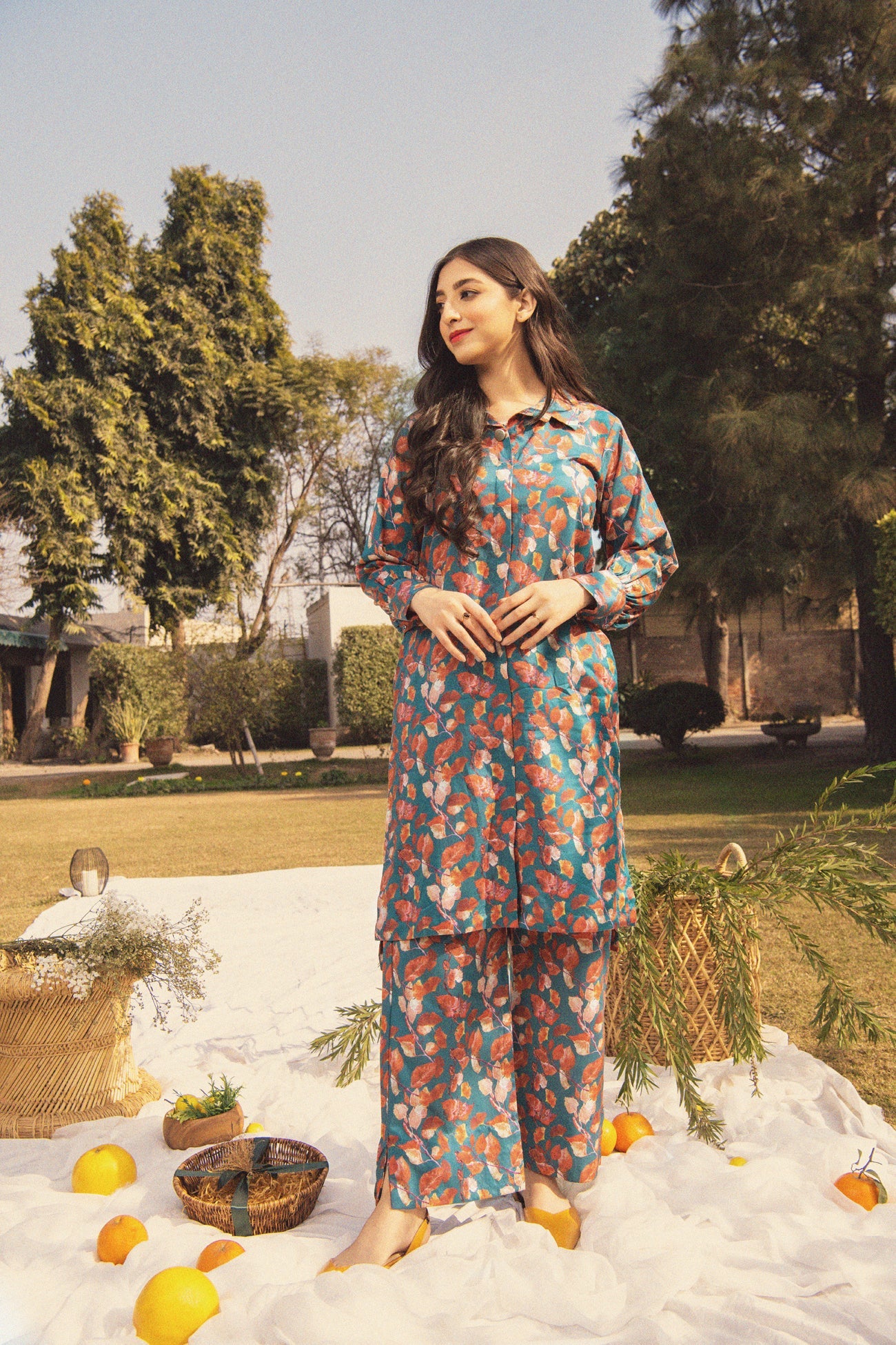 Collared Button Printed Shirt With Placket And Culottes Trousers