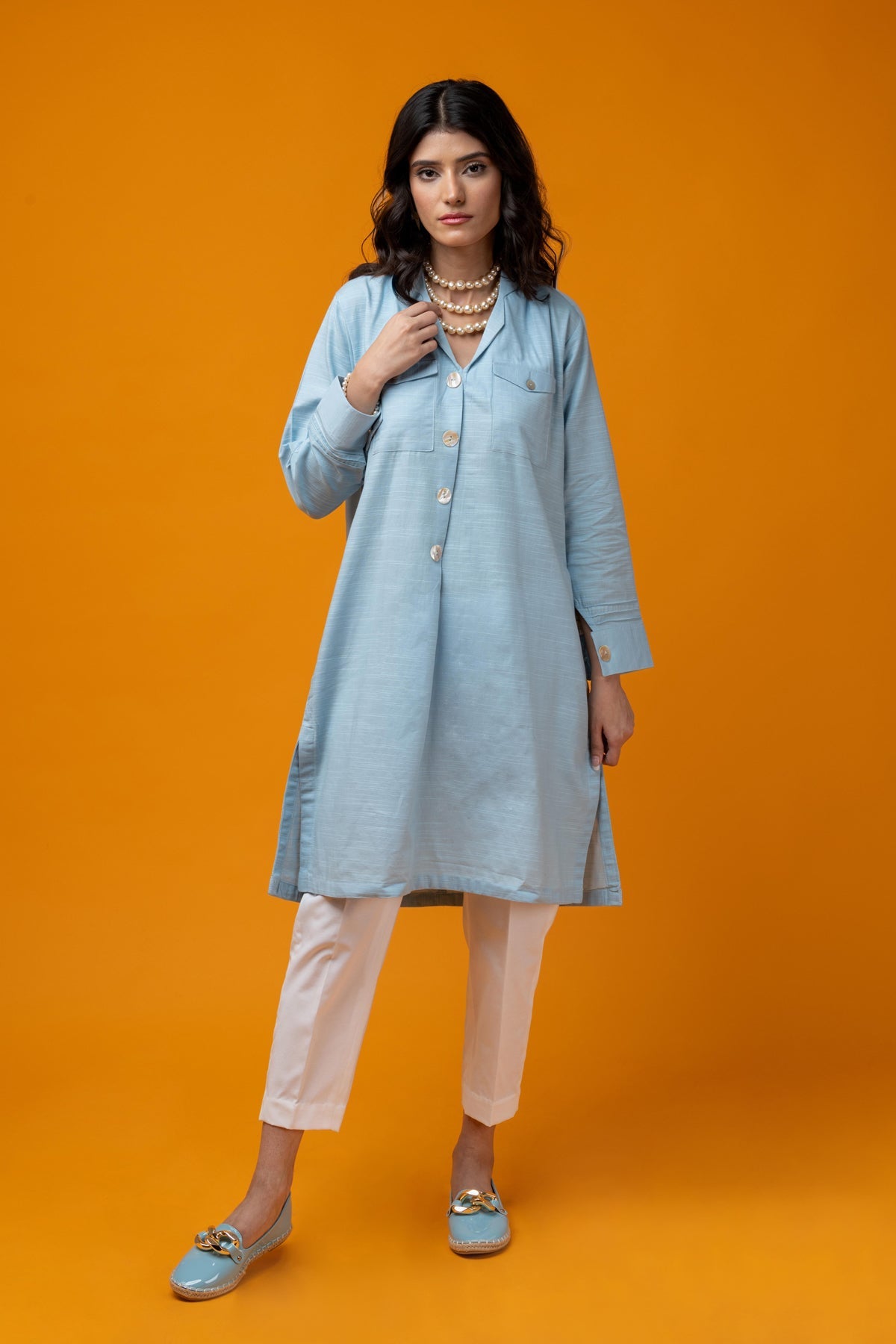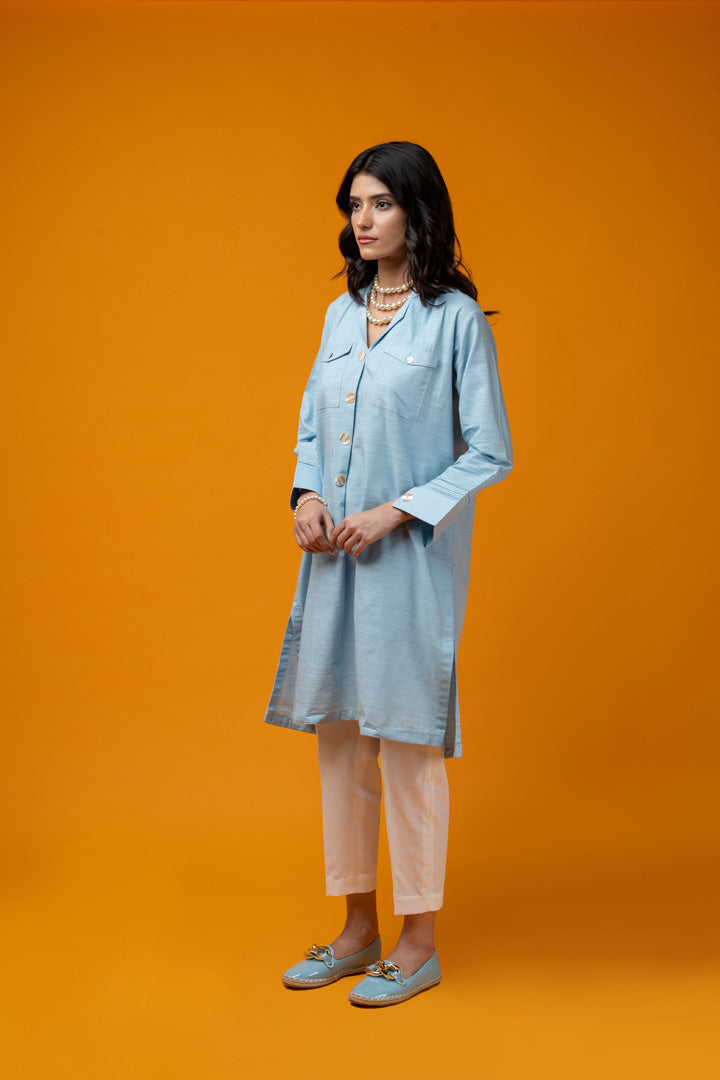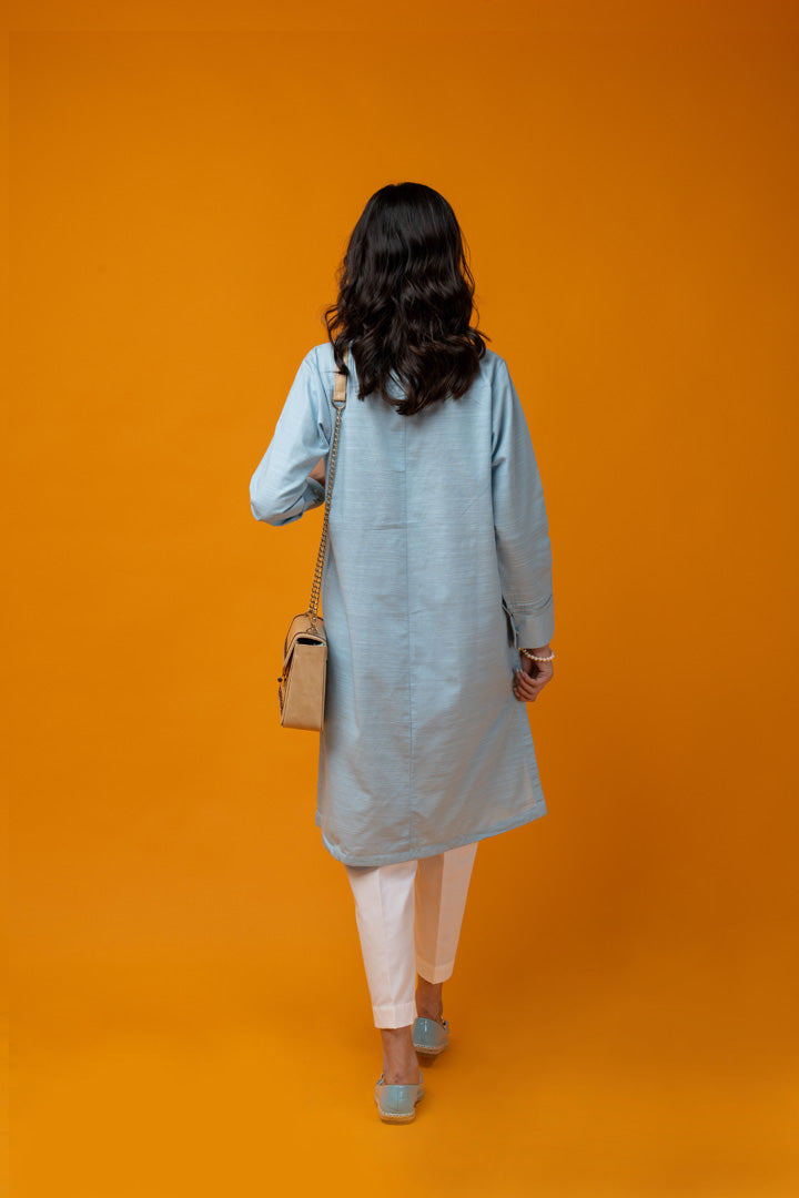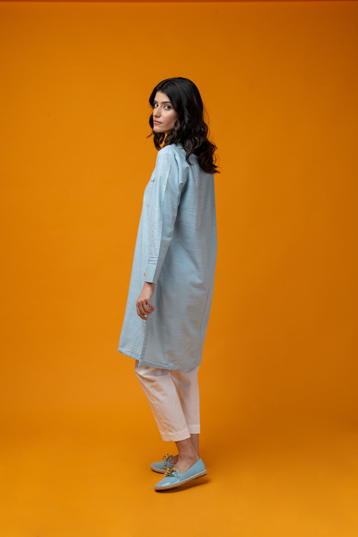 Casual Luxe Blue Button-Down Shirt with Thin Stripes