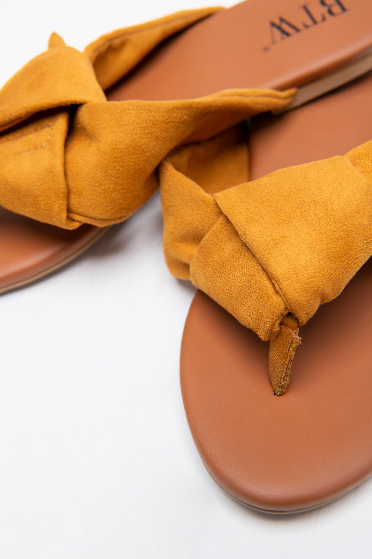 Add Stylish Tactility To Your Casual Off-Duty Outfits With These Slide Sandals. They Feature Suede Material Straps That Are Not Just Beautifully Pleated But Also Twisted For An Added Dimension.