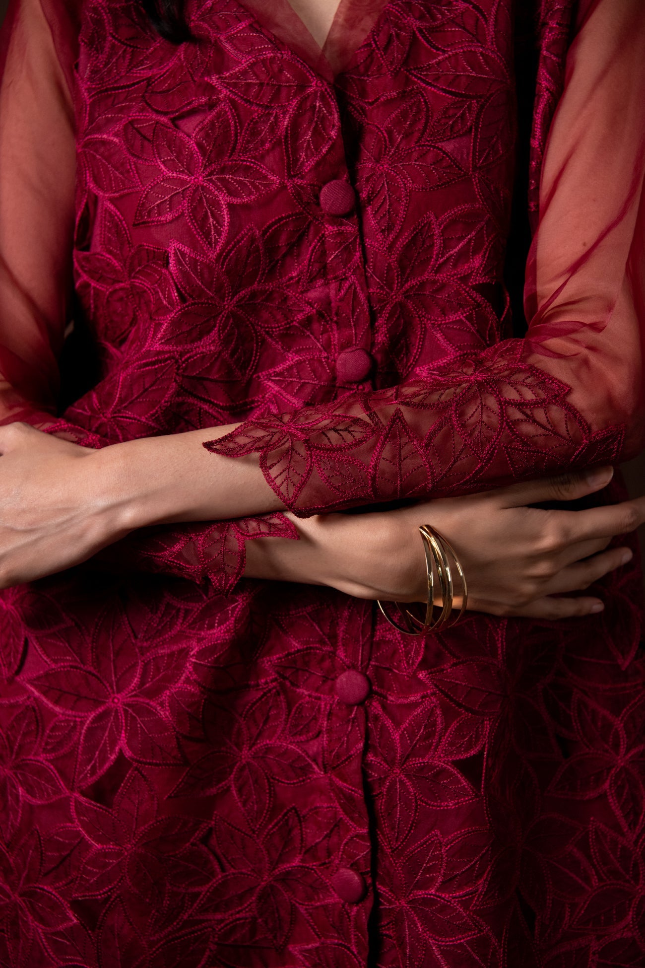 - Cut Work Embroidery On The Front And Sleeves