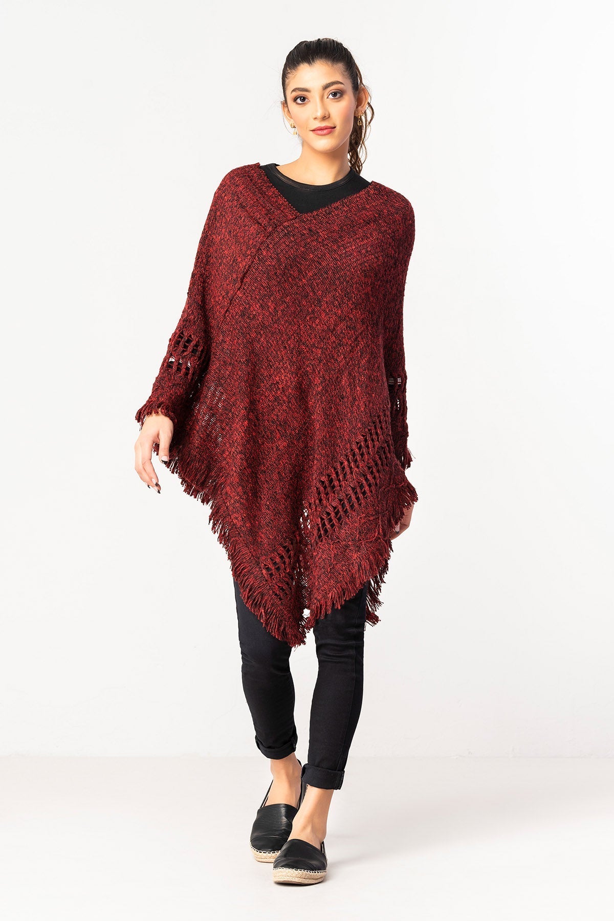 Pancho Style Sweater With V-Neck Designed With Raglan Sleeves.
