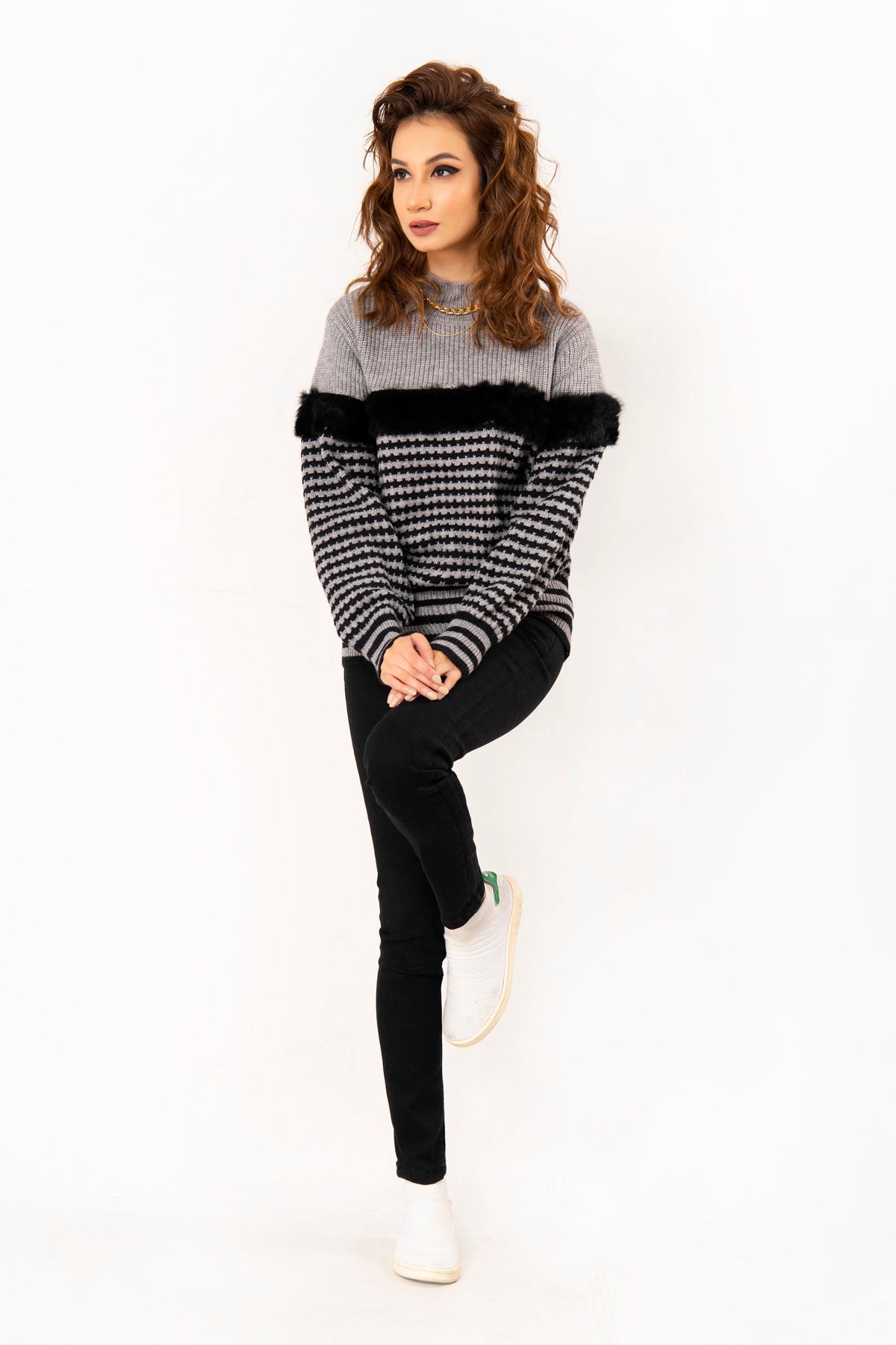 Three Tone Color With Faux Knitted Sweater Perfect For Morning Vibes.