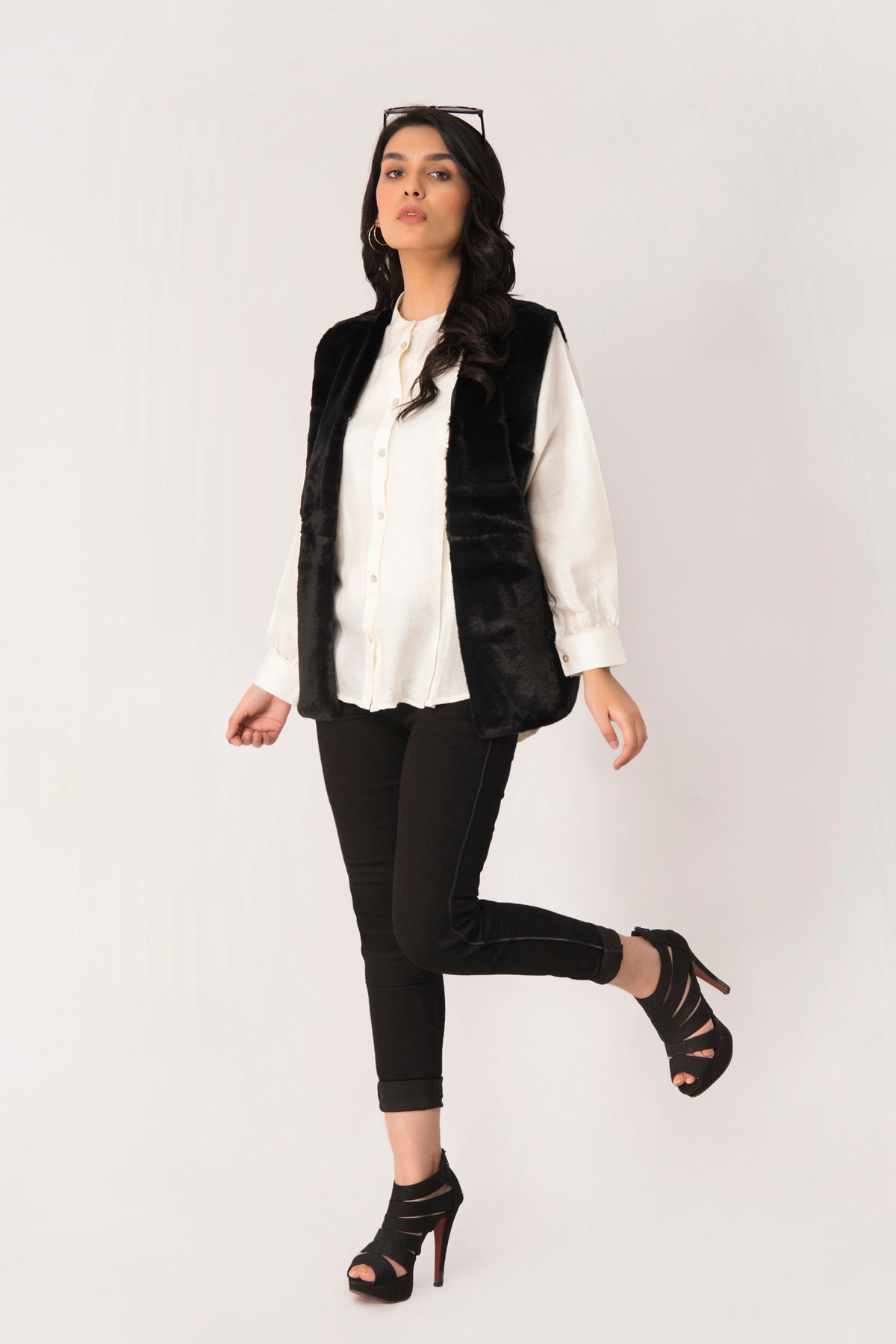 Plane Black Faux Fur Sweater, A Perfect Pick In Winters.