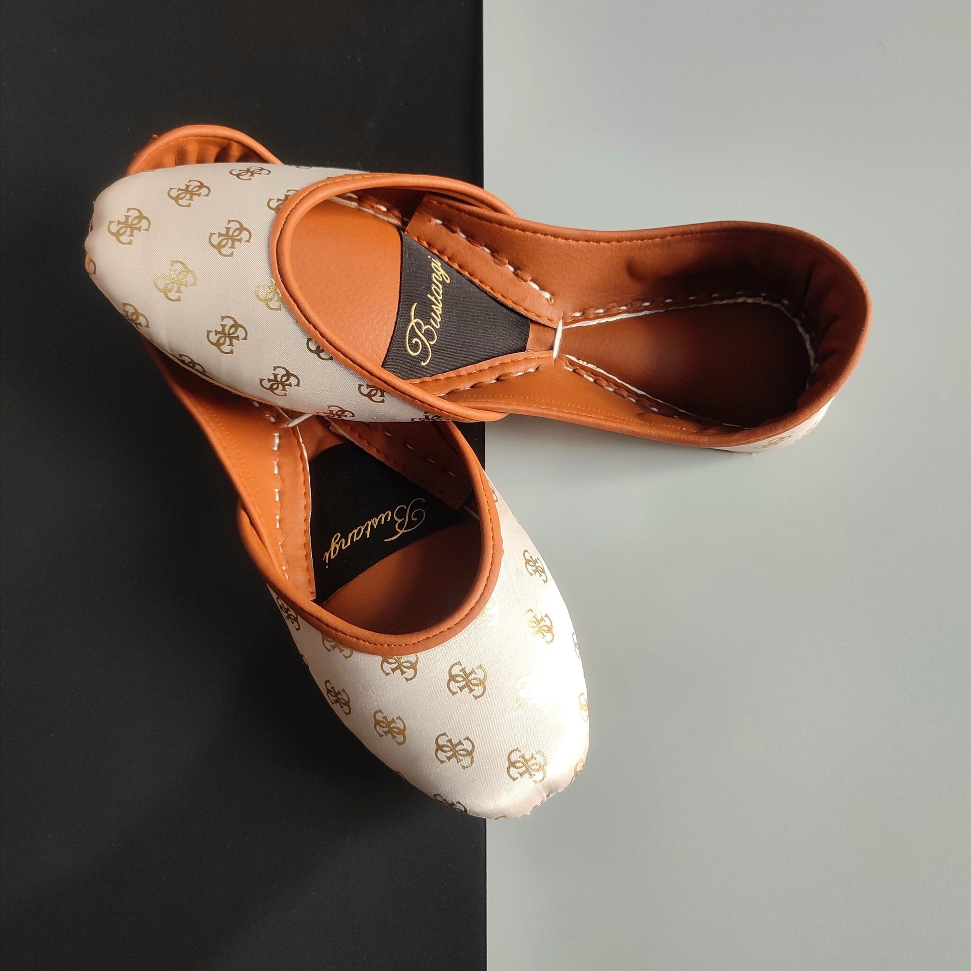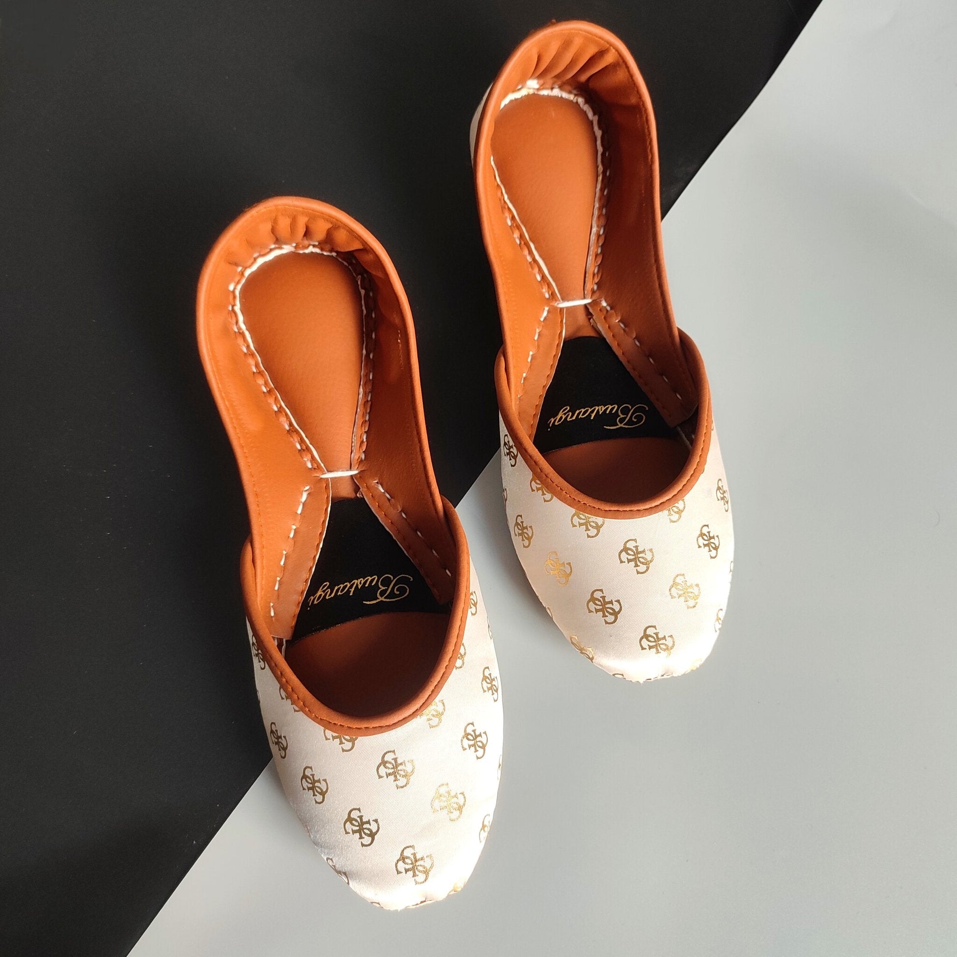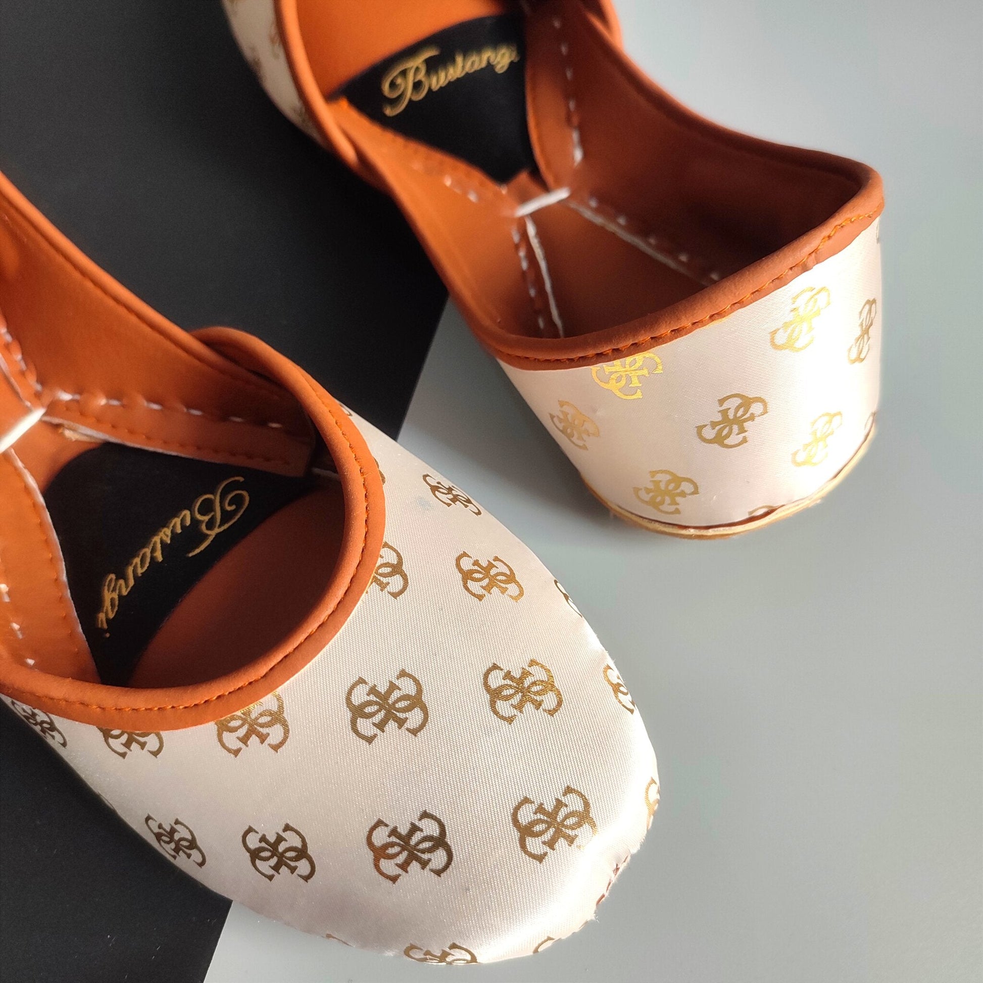 The sole of this ladies khussa is made from Leather, providing excellent traction and support, while the upper part is made from a soft and breathable material with a printed design on top. The slip-on khussa shoes design makes them easy to put on and take off, and the padded insole provides extra cushioning for your feet. White color.