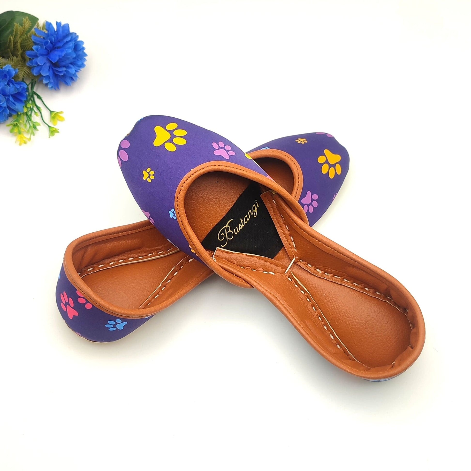 The sole of this ladies khussa is made from Leather, providing excellent traction and support, while the upper part is made from a soft and breathable material with a printed design on top. The slip-on khussa shoes design makes them easy to put on and take off, and the padded insole provides extra cushioning for your feet. Blue color.