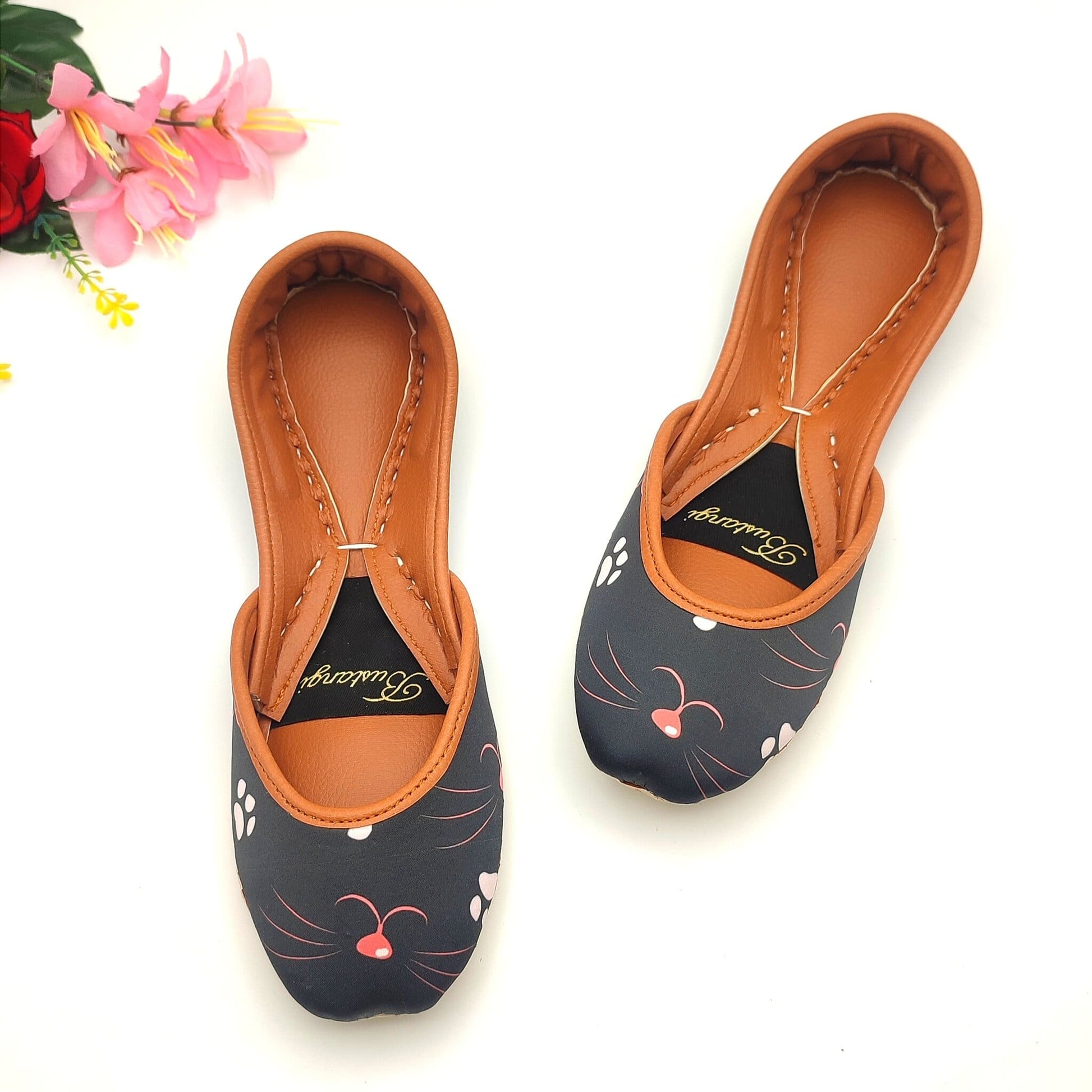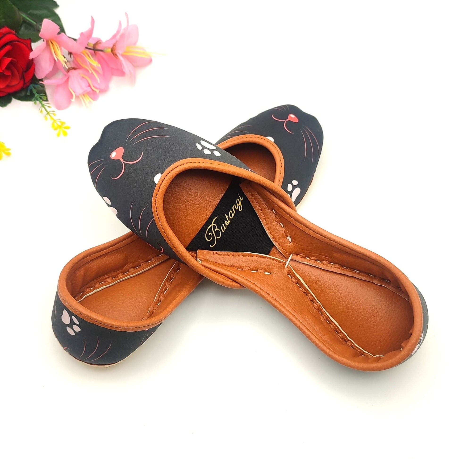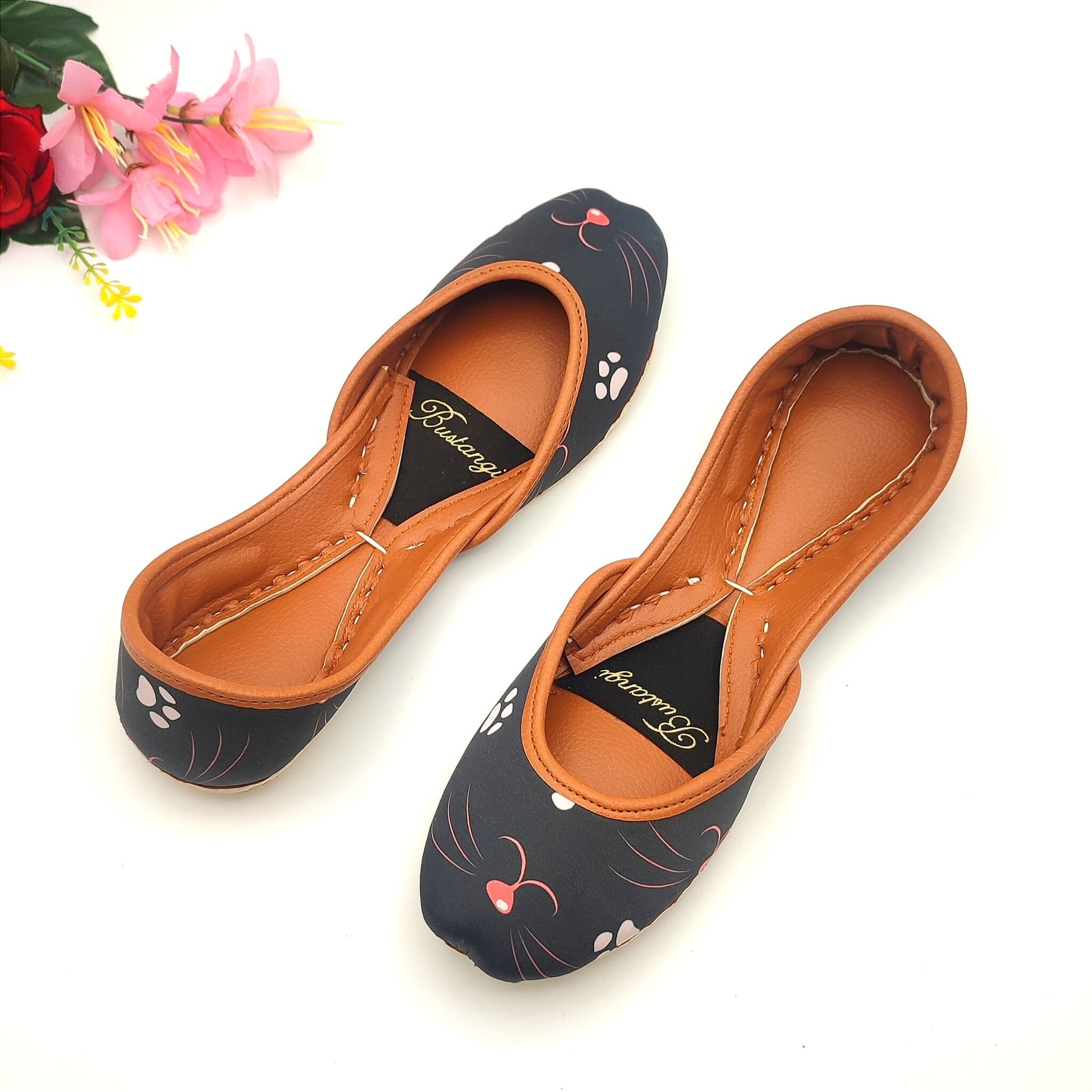 The sole of this ladies khussa is made from Leather, providing excellent traction and support, while the upper part is made from a soft and breathable material with a printed design on top. The slip-on khussa shoes design makes them easy to put on and take off, and the padded insole provides extra cushioning for your feet. Black color.