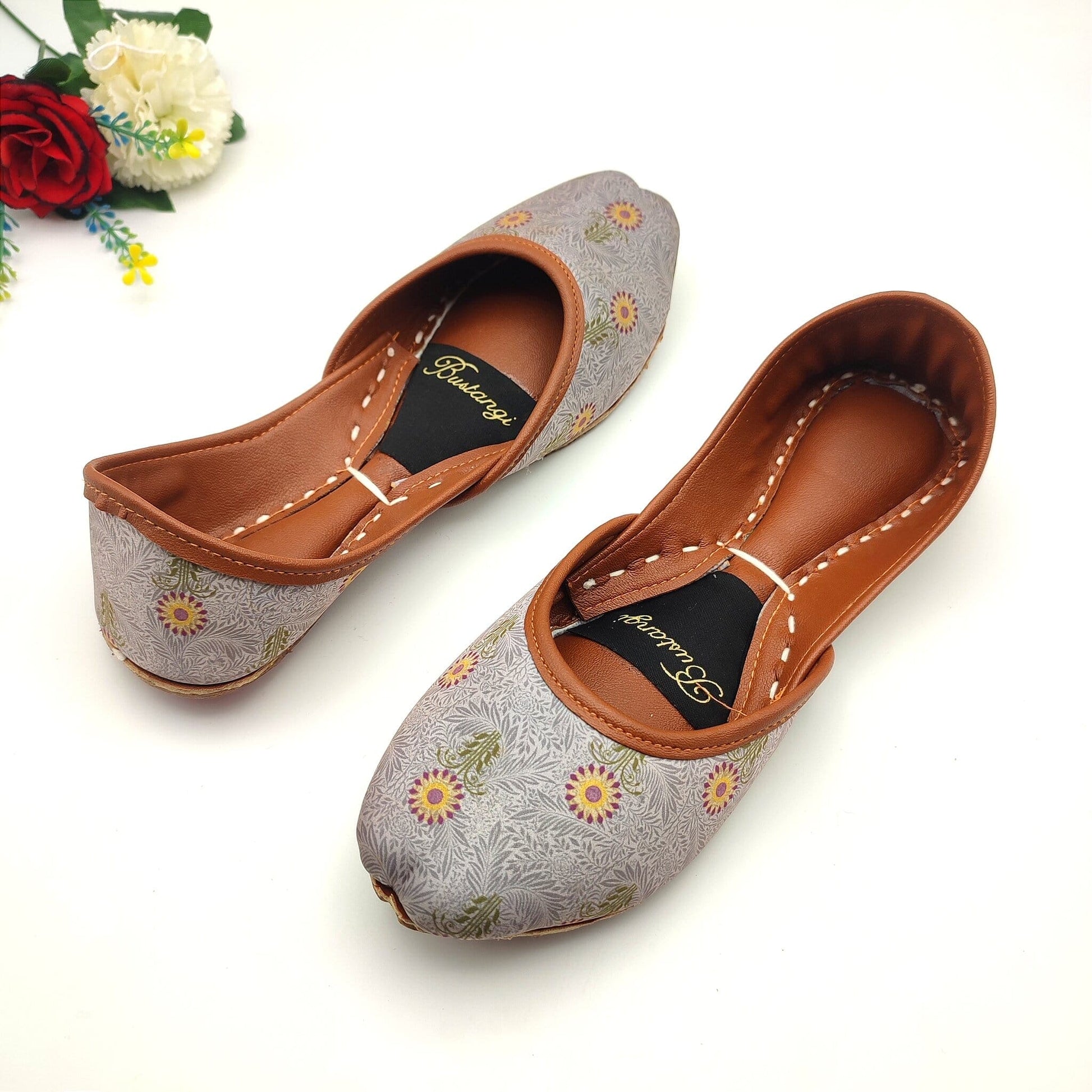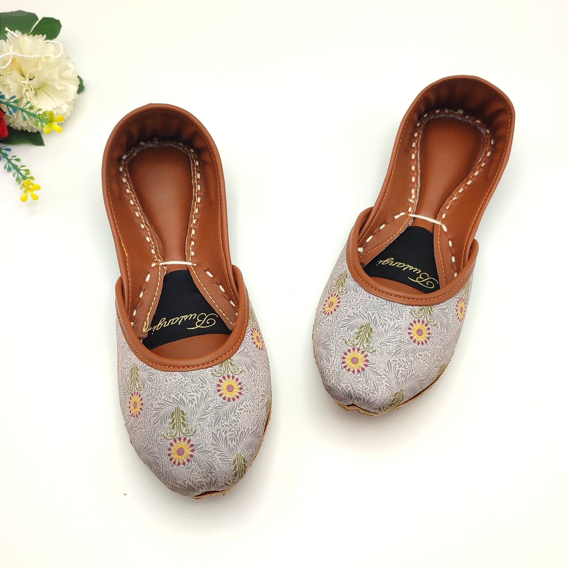 The sole of this ladies khussa is made from Leather, providing excellent traction and support, while the upper part is made from a soft and breathable material with a printed design on top. The slip-on khussa shoes design makes them easy to put on and take off, and the padded insole provides extra cushioning for your feet.
