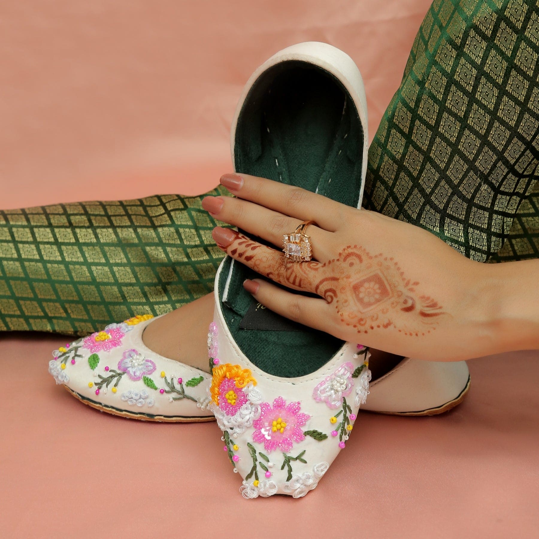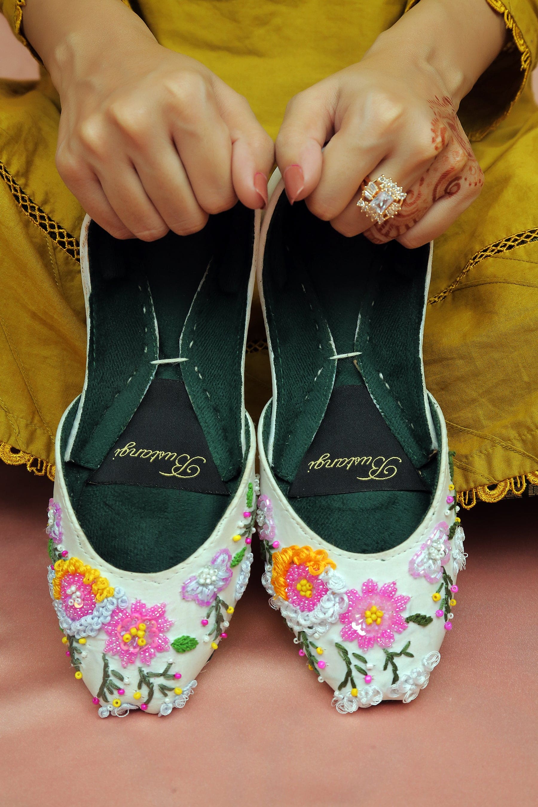 This embroidery khussa is made of leather sole and provides excellent traction and support. Beautiful handcrafted embroidery is done over the upper part on a soft and breathable material. The slip-on khussa shoes design makes them easy to put on and take off, and the padded insole provides extra cushioning for your feet.