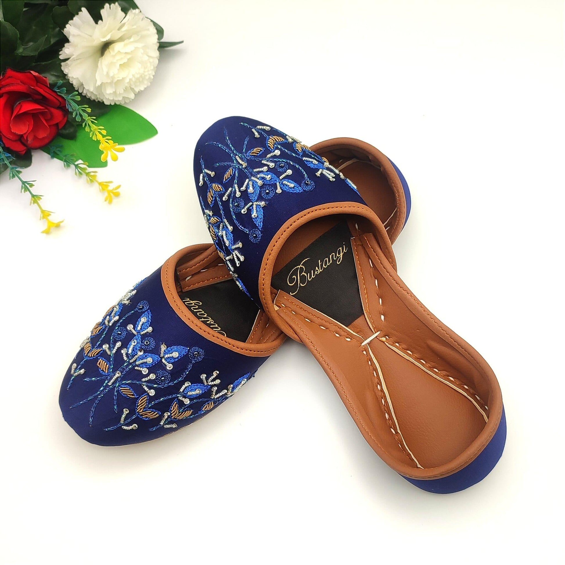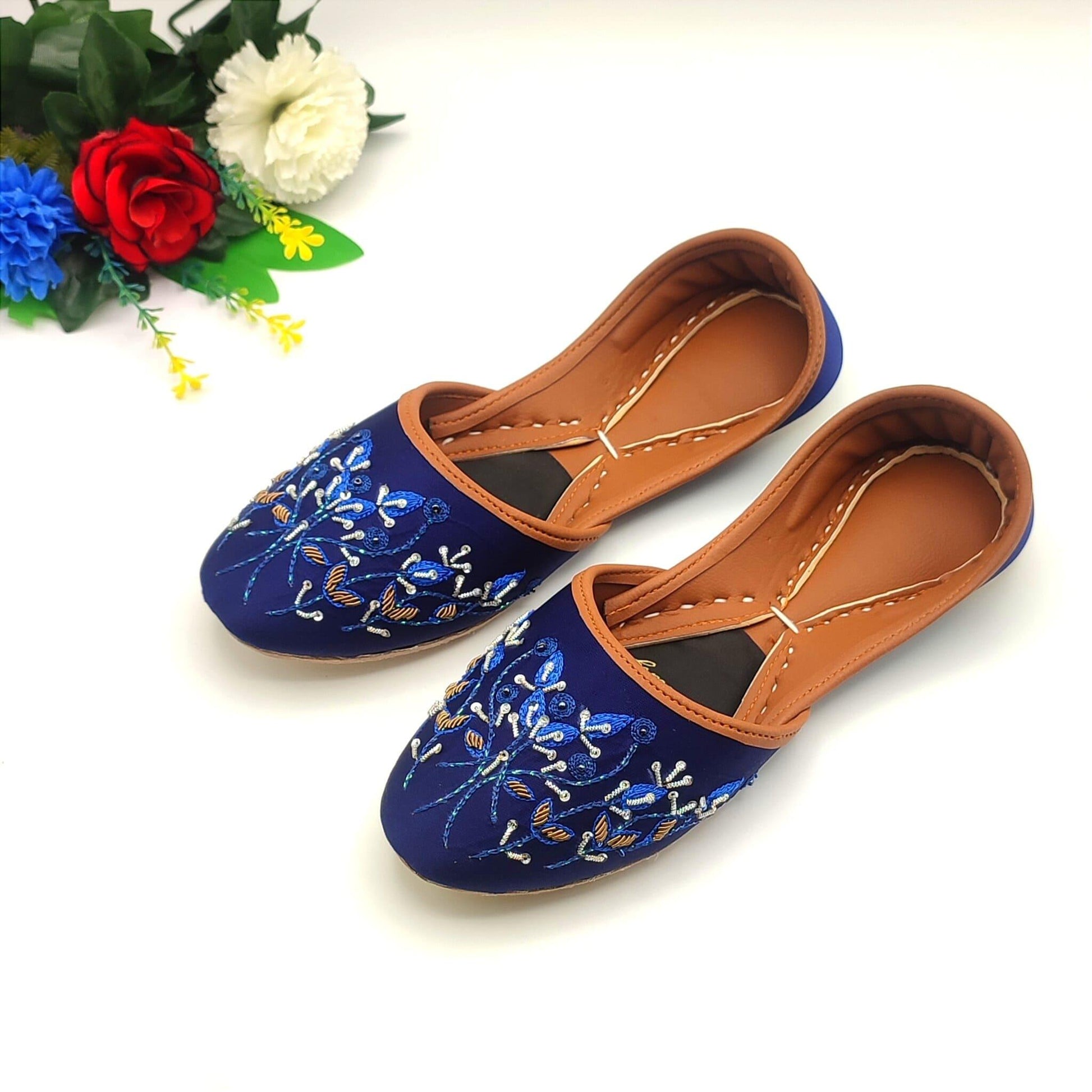 Beautiful embroidery is crafted on top of this Nawabi Khussa. This women shoes is Blue colored. It comes with leather sole and double padding for extra comfort. Necklines are also scalloped to avoid discomfort.