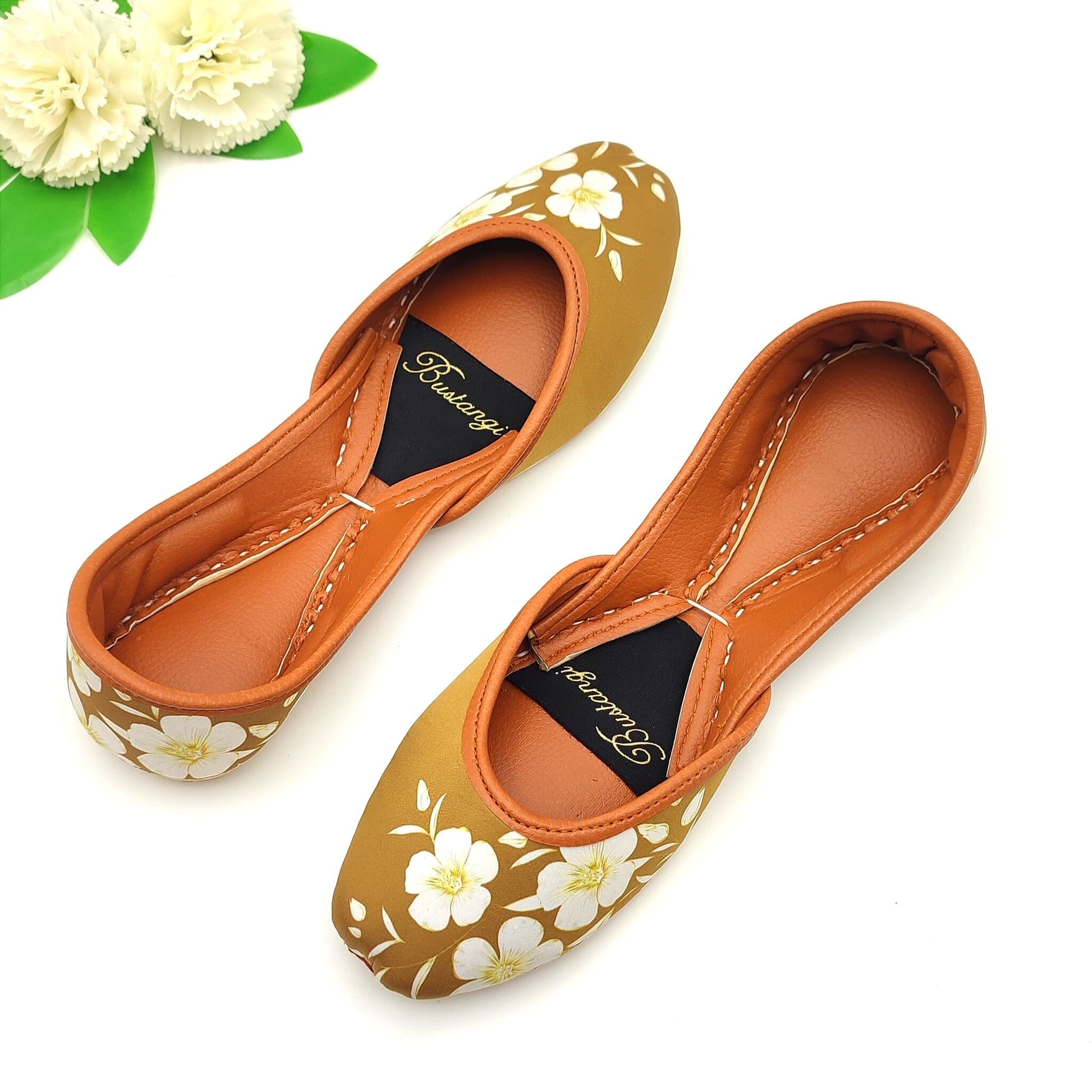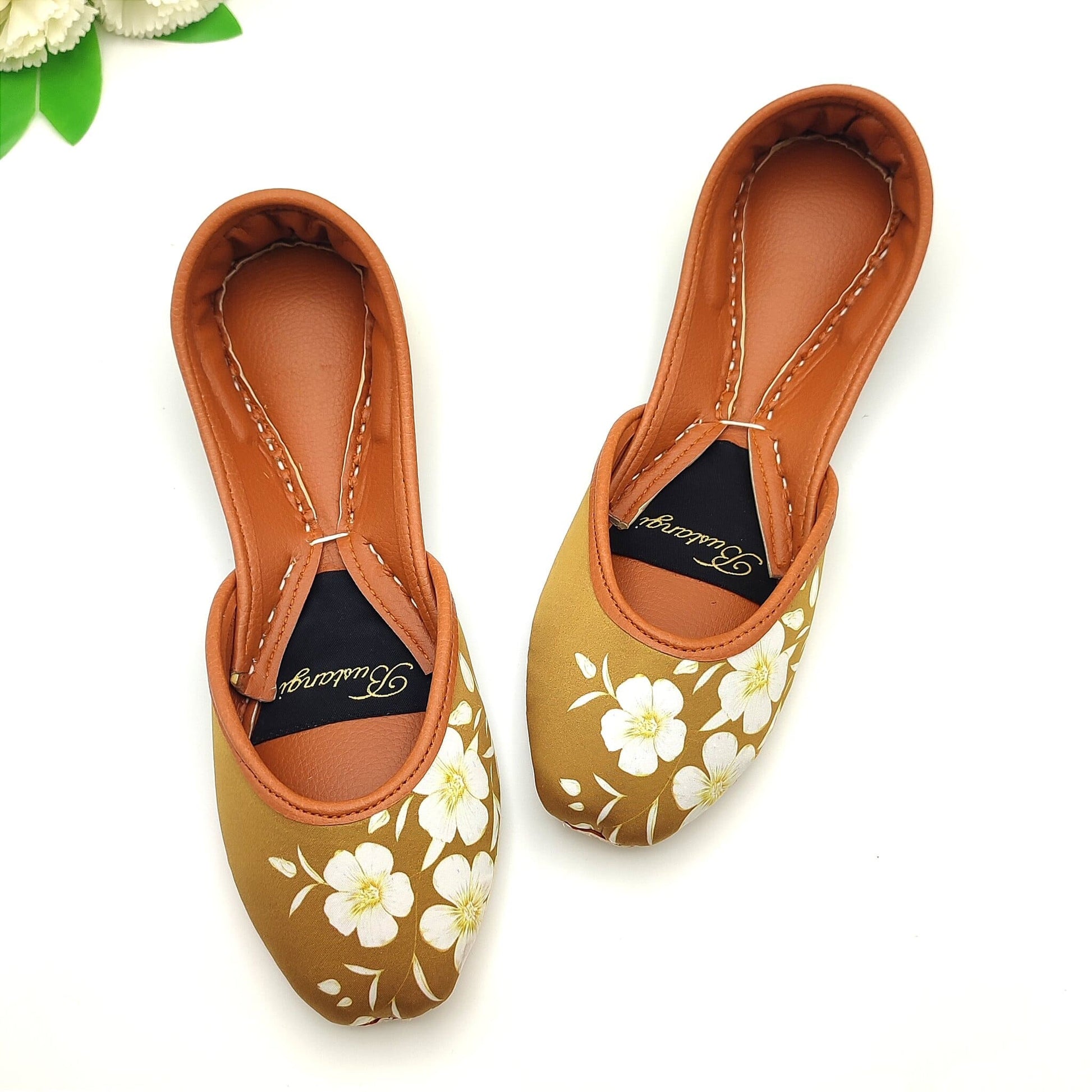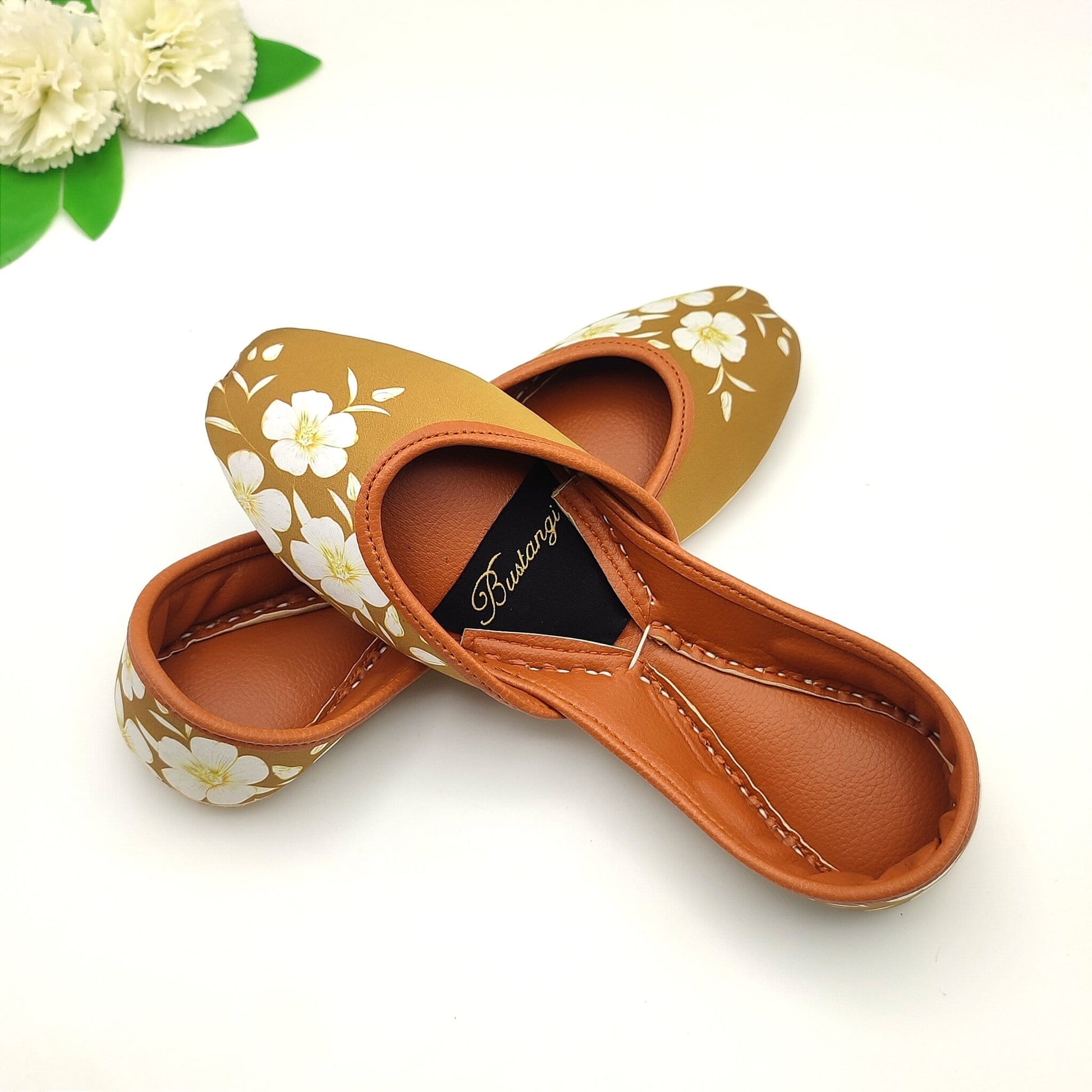 The sole of this ladies khussa is made from Leather, providing excellent traction and support, while the upper part is made from a soft and breathable material with a printed design on top. The slip-on khussa shoes design makes them easy to put on and take off, and the padded insole provides extra cushioning for your feet. Olive color.