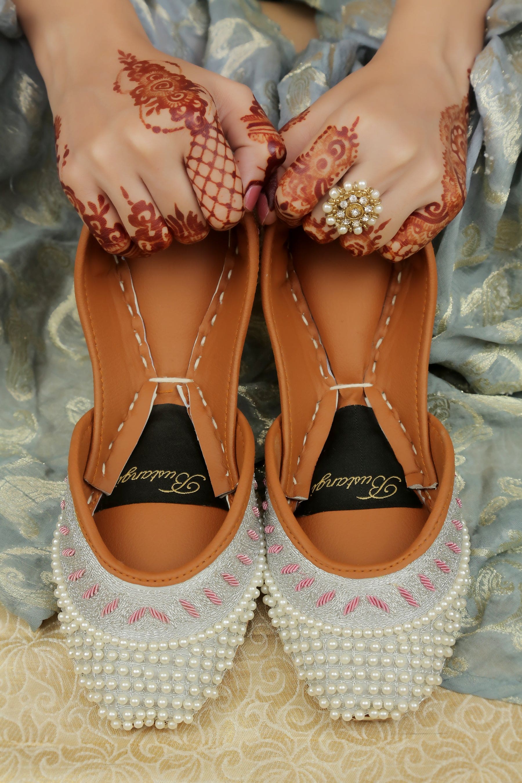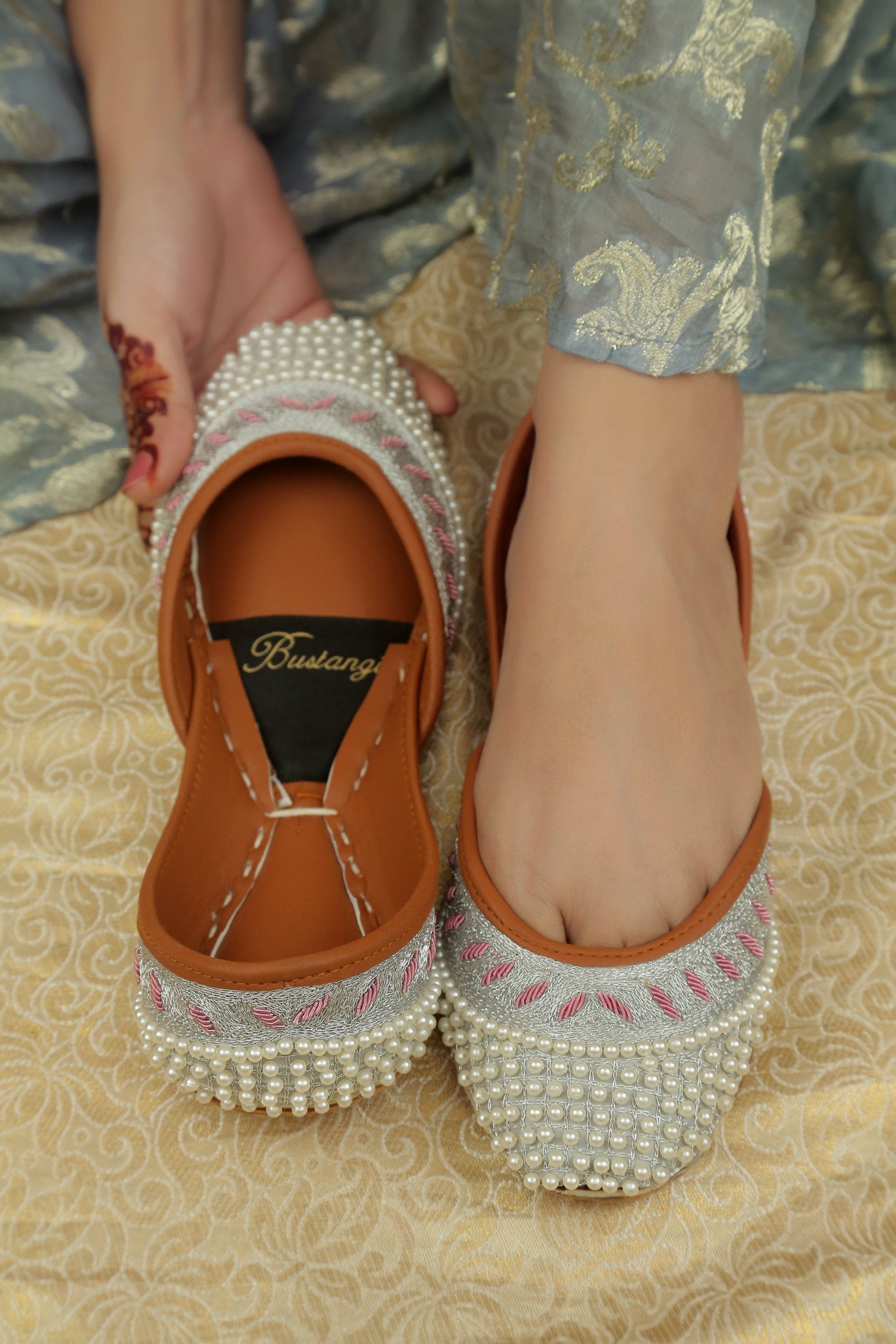 This embroidery khussa is made of leather sole and provides excellent traction and support. Beautiful handcrafted embroidery is done over the upper part on a soft and breathable material. The slip-on khussa shoes design makes them easy to put on and take off, and the padded insole provides extra cushioning for your feet.