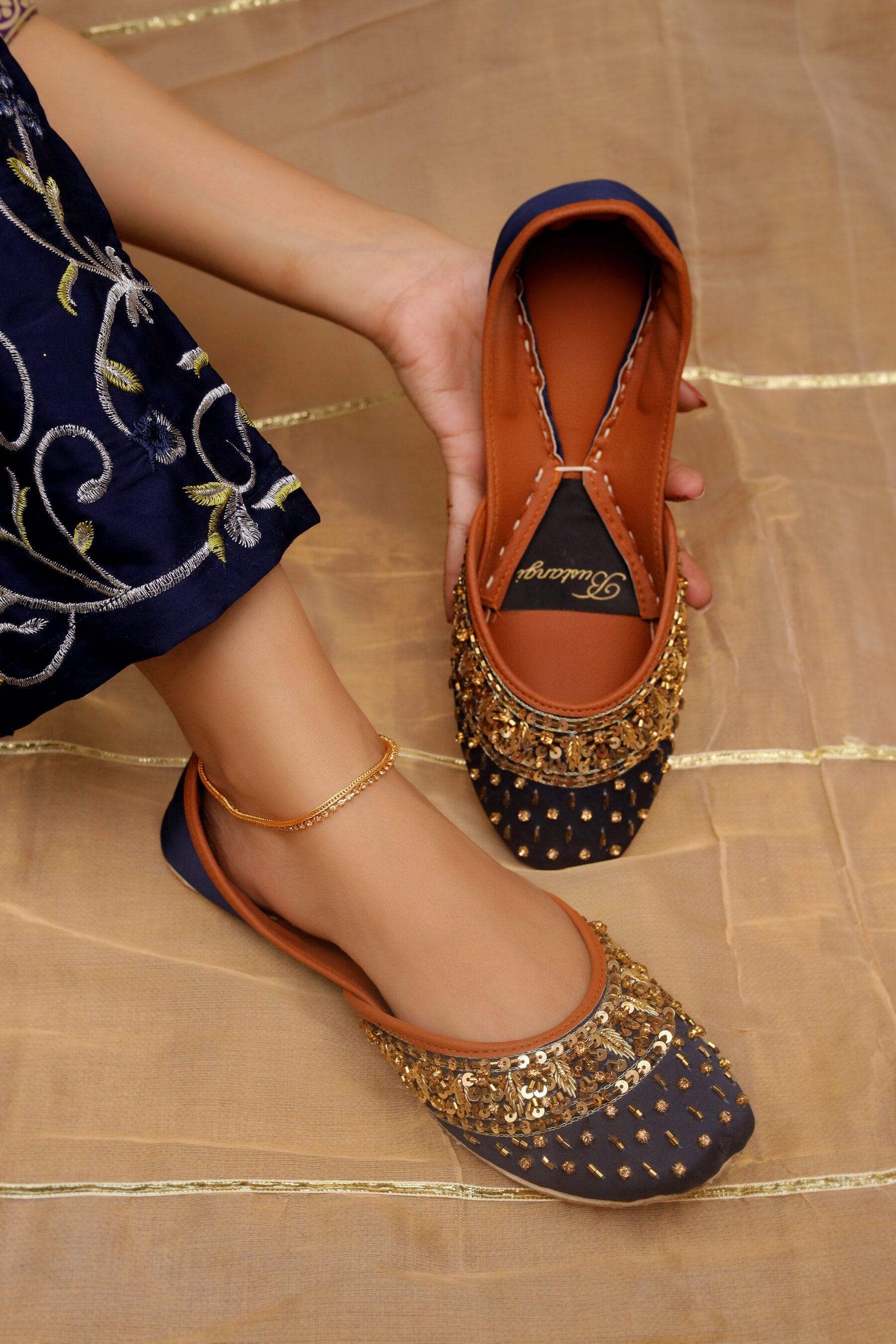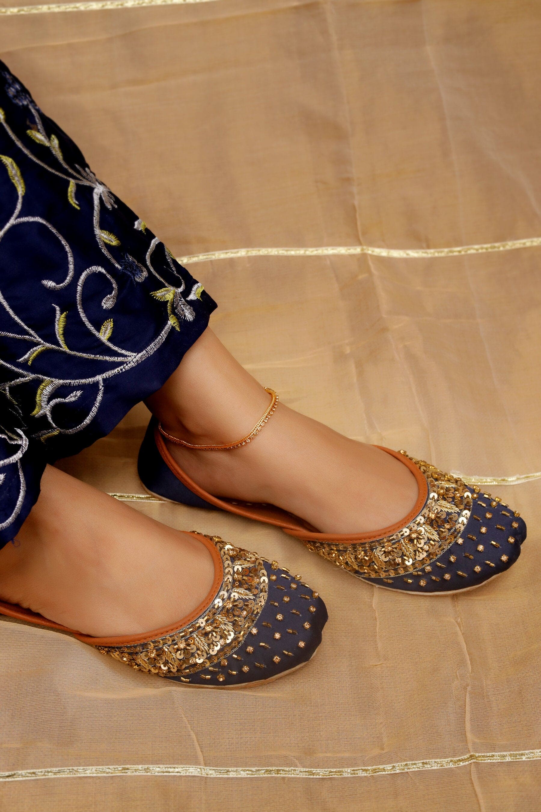 This embroidery khussa is made of leather sole and provides excellent traction and support. Beautiful handcrafted embroidery is done over the upper part on a soft and breathable material. The slip-on khussa shoes design makes them easy to put on and take off, and the padded insole provides extra cushioning for your feet.
