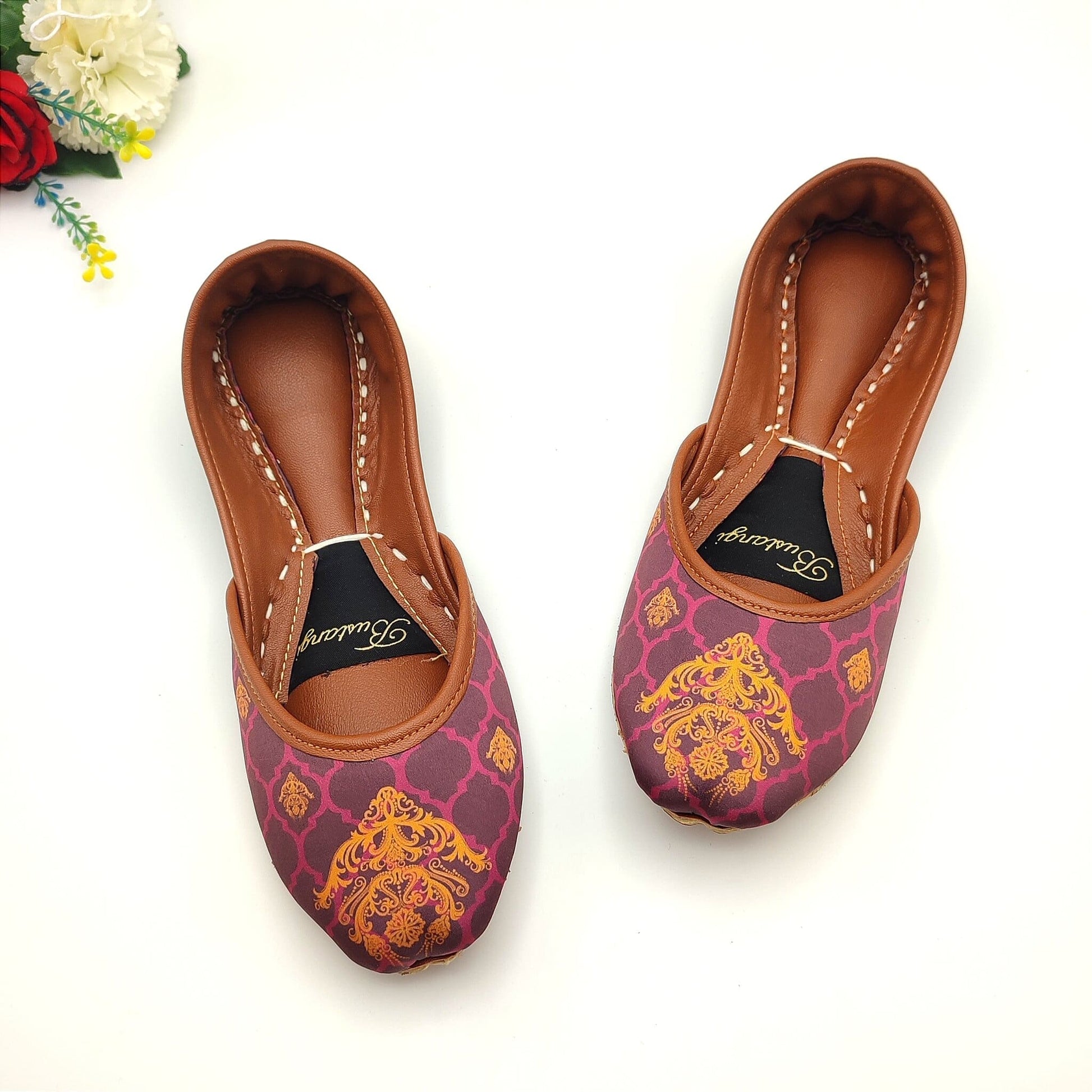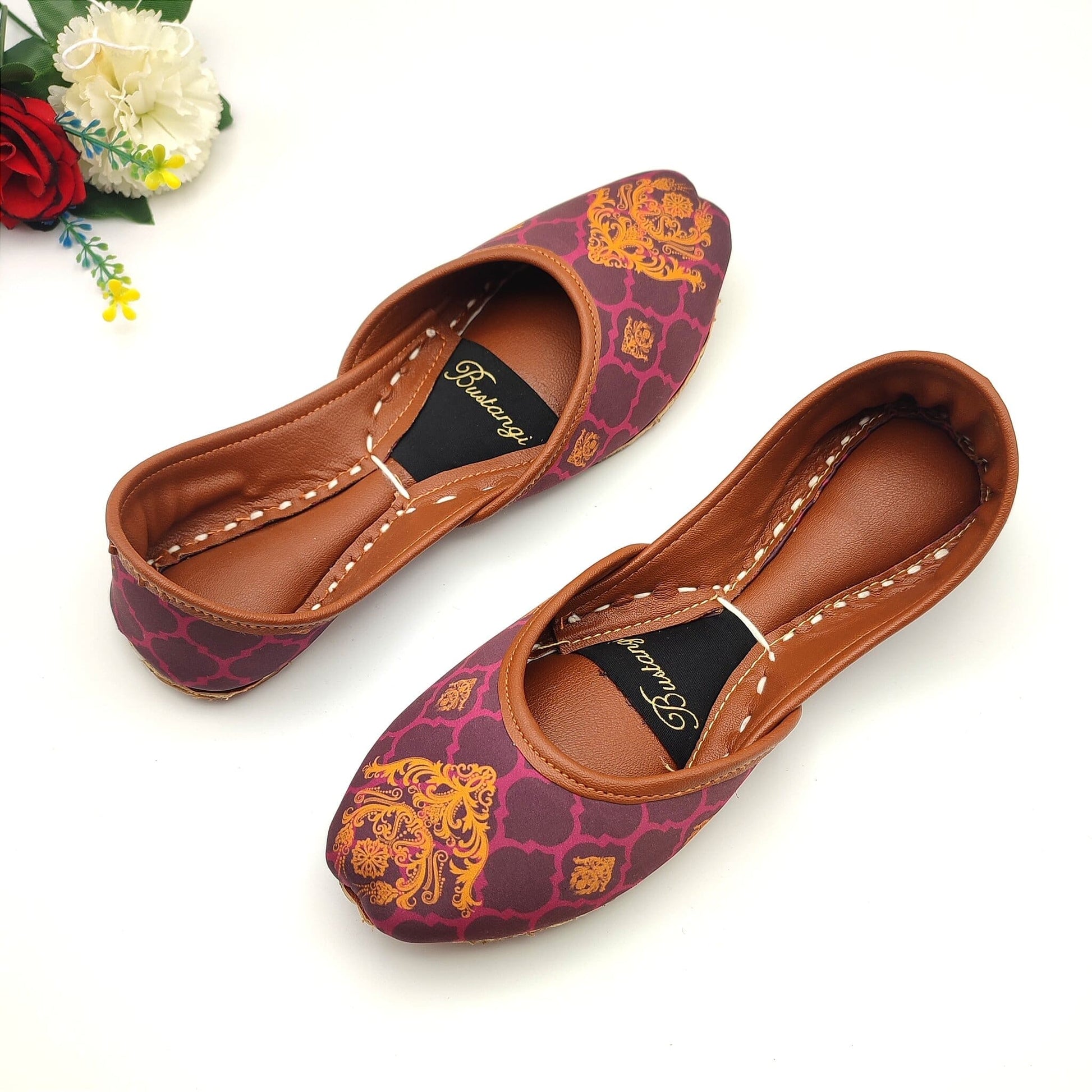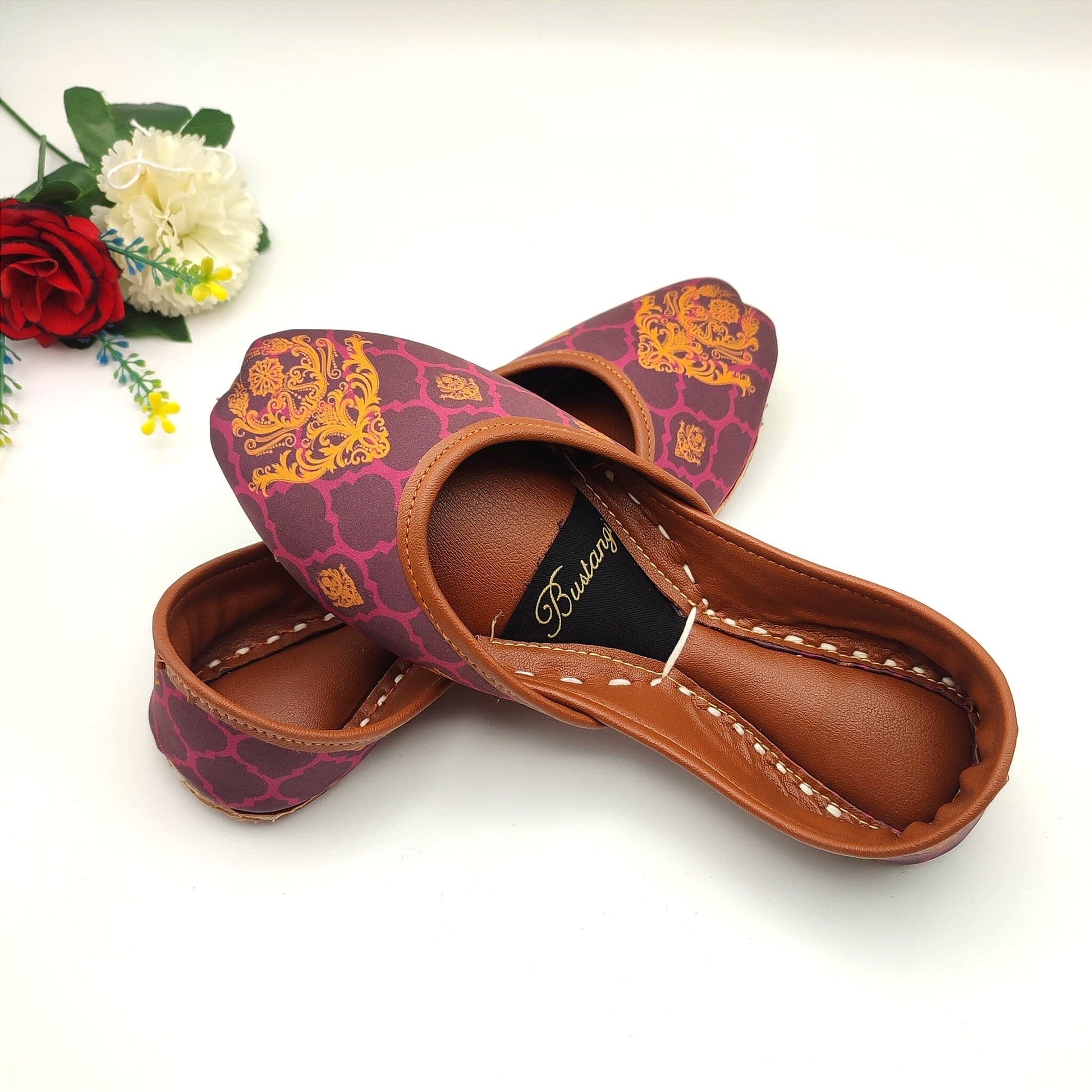 The sole of this ladies khussa is made from Leather, providing excellent traction and support, while the upper part is made from a soft and breathable material with a printed design on top. The slip-on khussa shoes design makes them easy to put on and take off, and the padded insole provides extra cushioning for your feet.