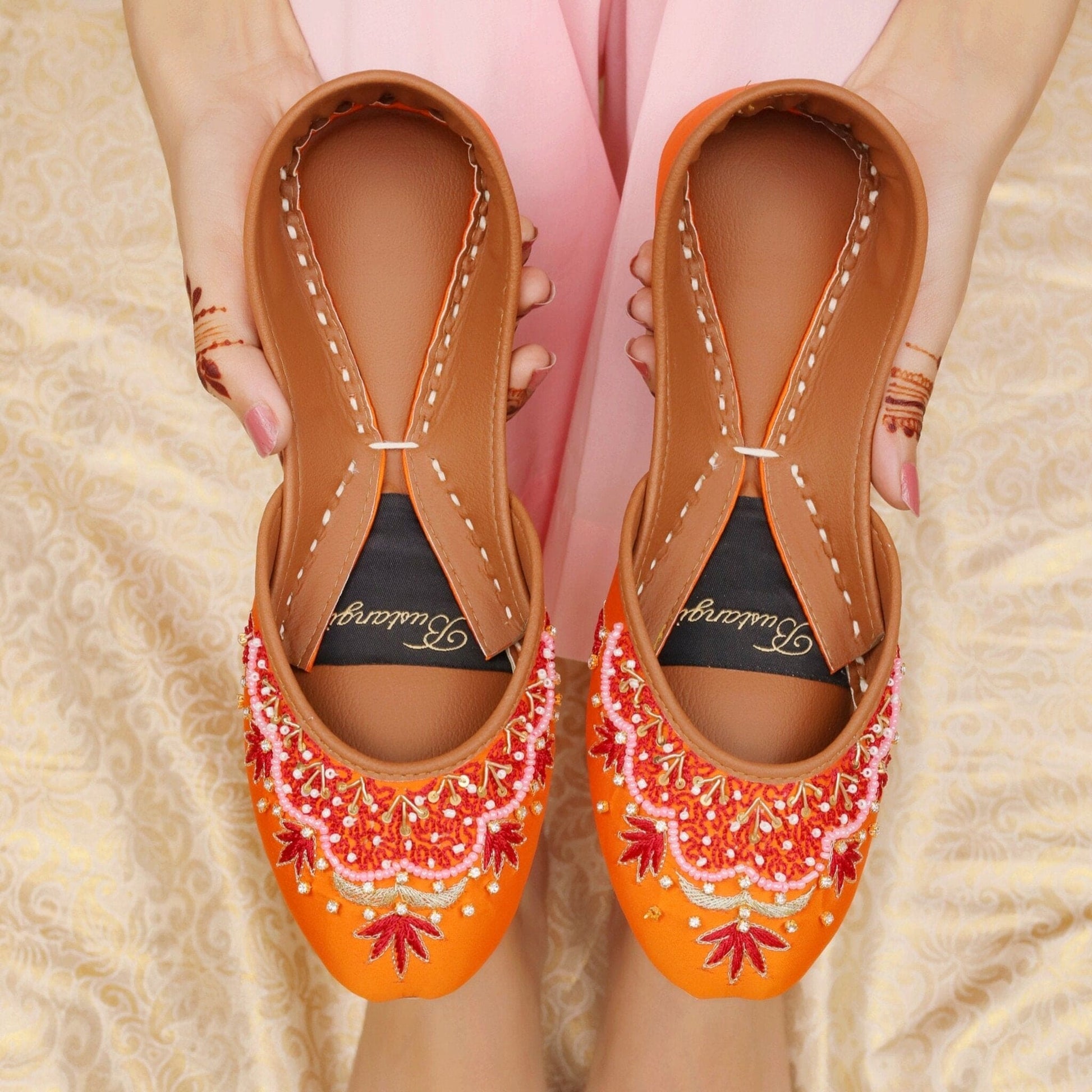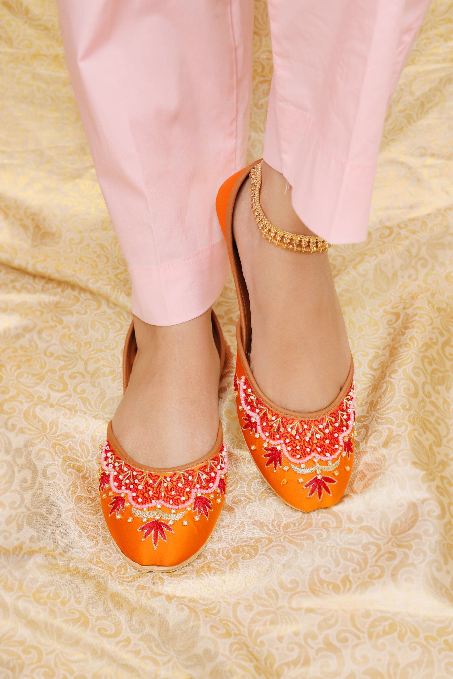 This embroidery khussa is made of leather sole and provides excellent traction and support. Beautiful handcrafted embroidery is done over the upper part on a soft and breathable material. The slip-on khussa shoes design makes them easy to put on and take off, and the padded insole provides extra cushioning for your feet.