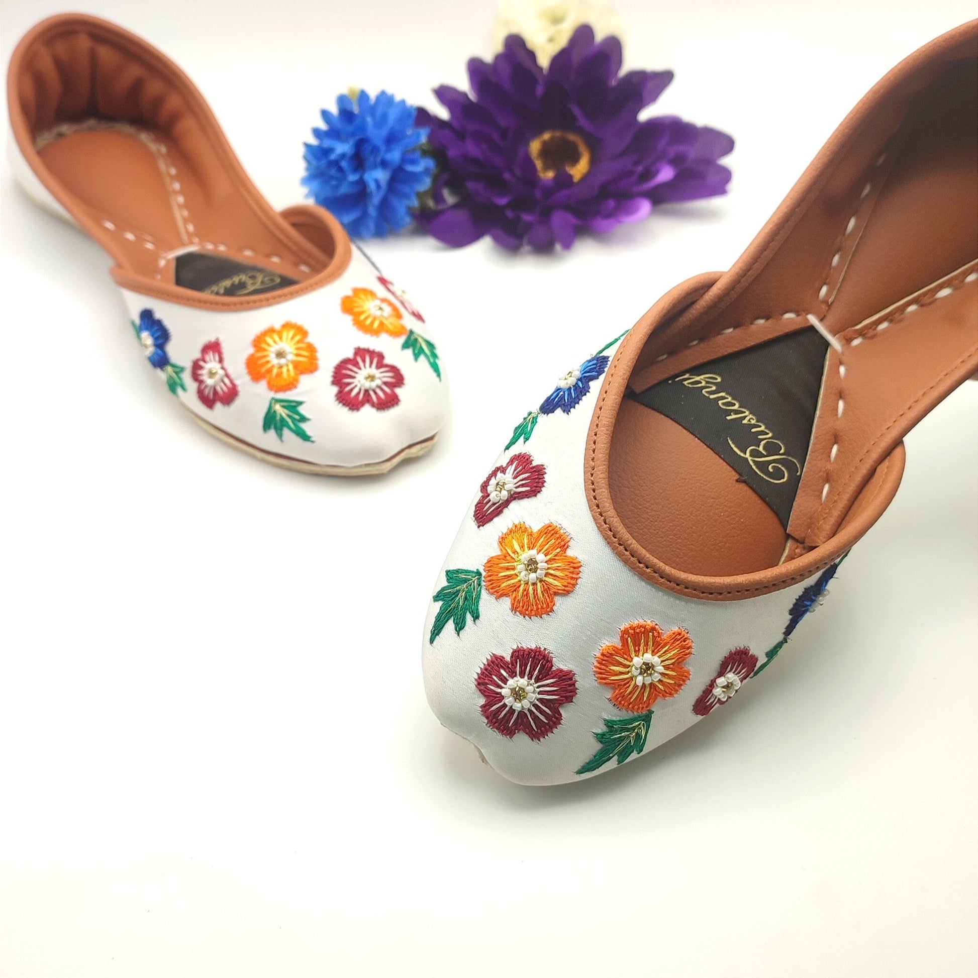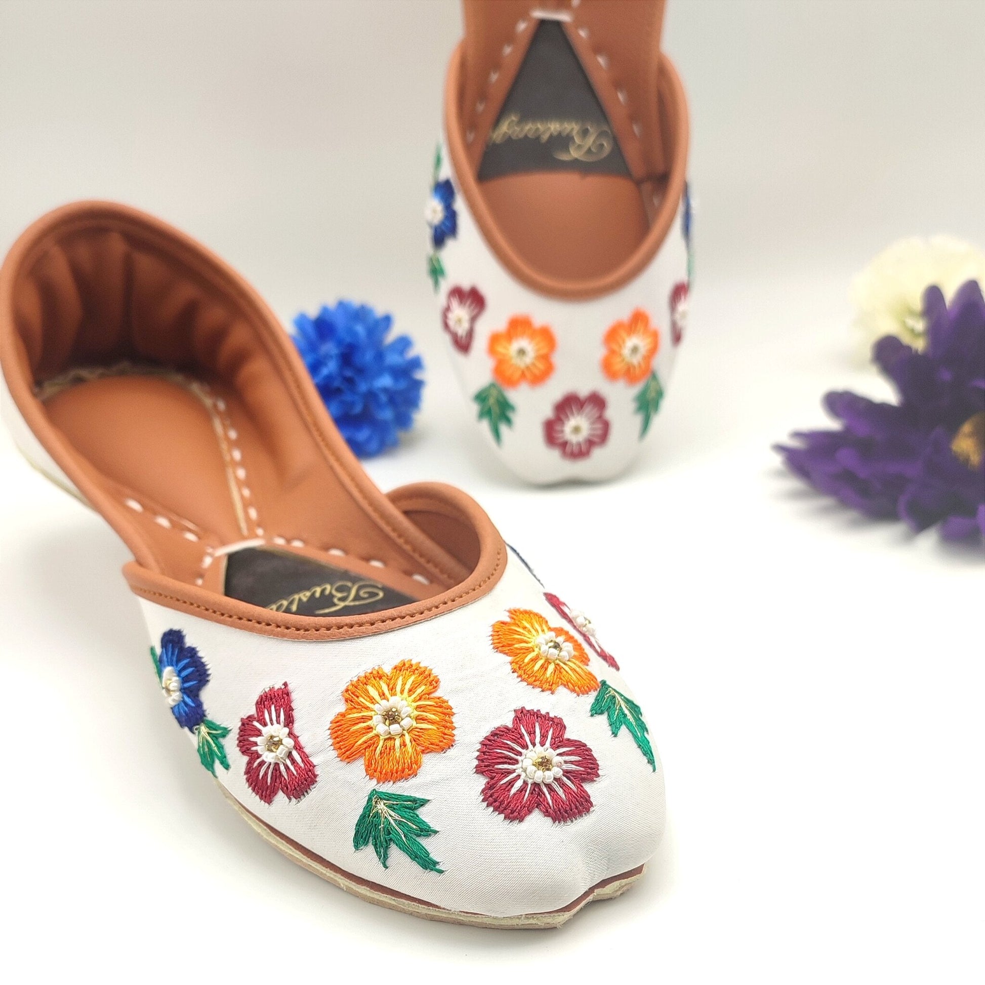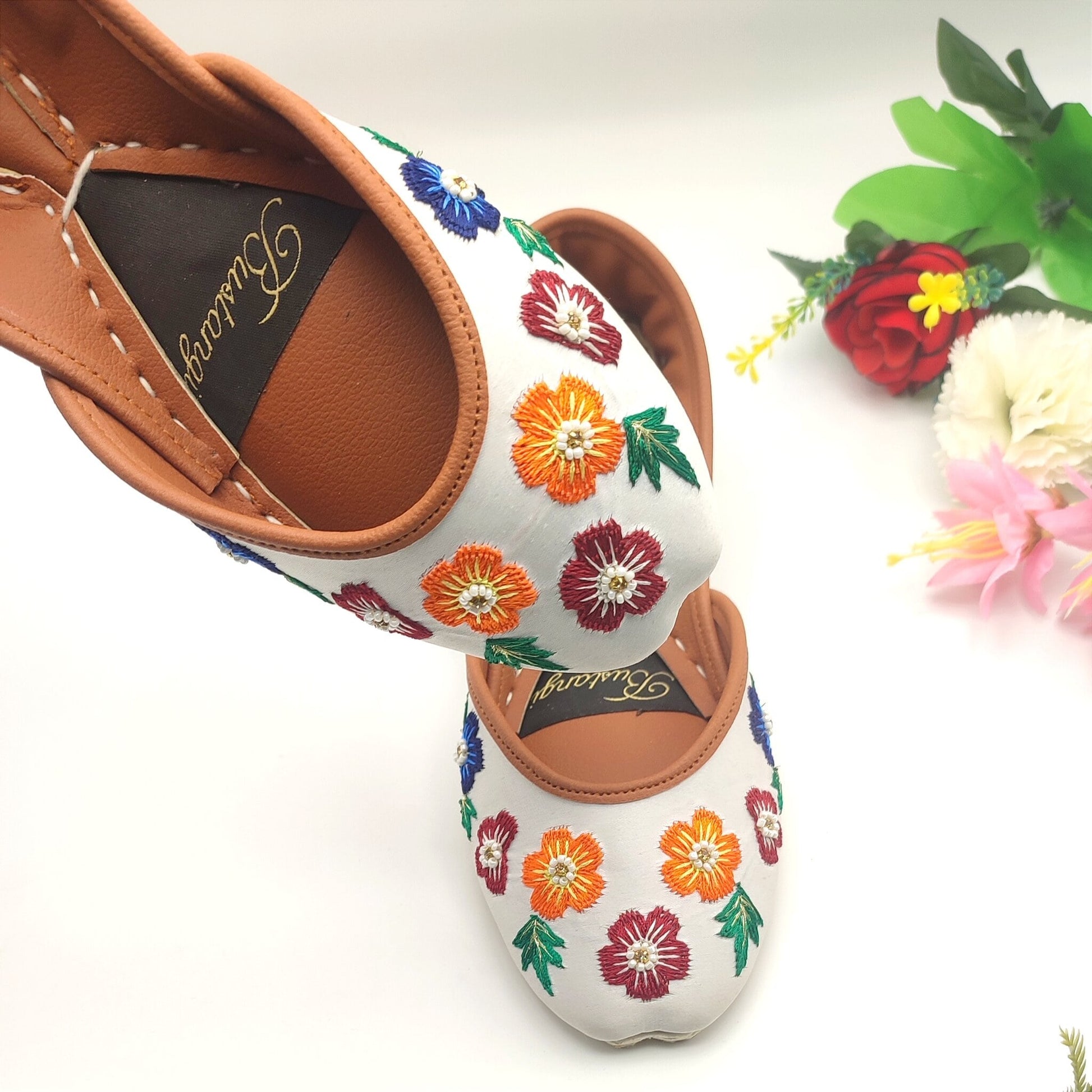 This embroidery khussa is made of leather sole it provides excellent traction and support. Beautiful handcrafted embroidery is done over the upper part on a soft and breathable material. The slip-on khussa shoes design makes them easy to put on and take off, and the padded insole provides extra cushioning for your feet. White color.