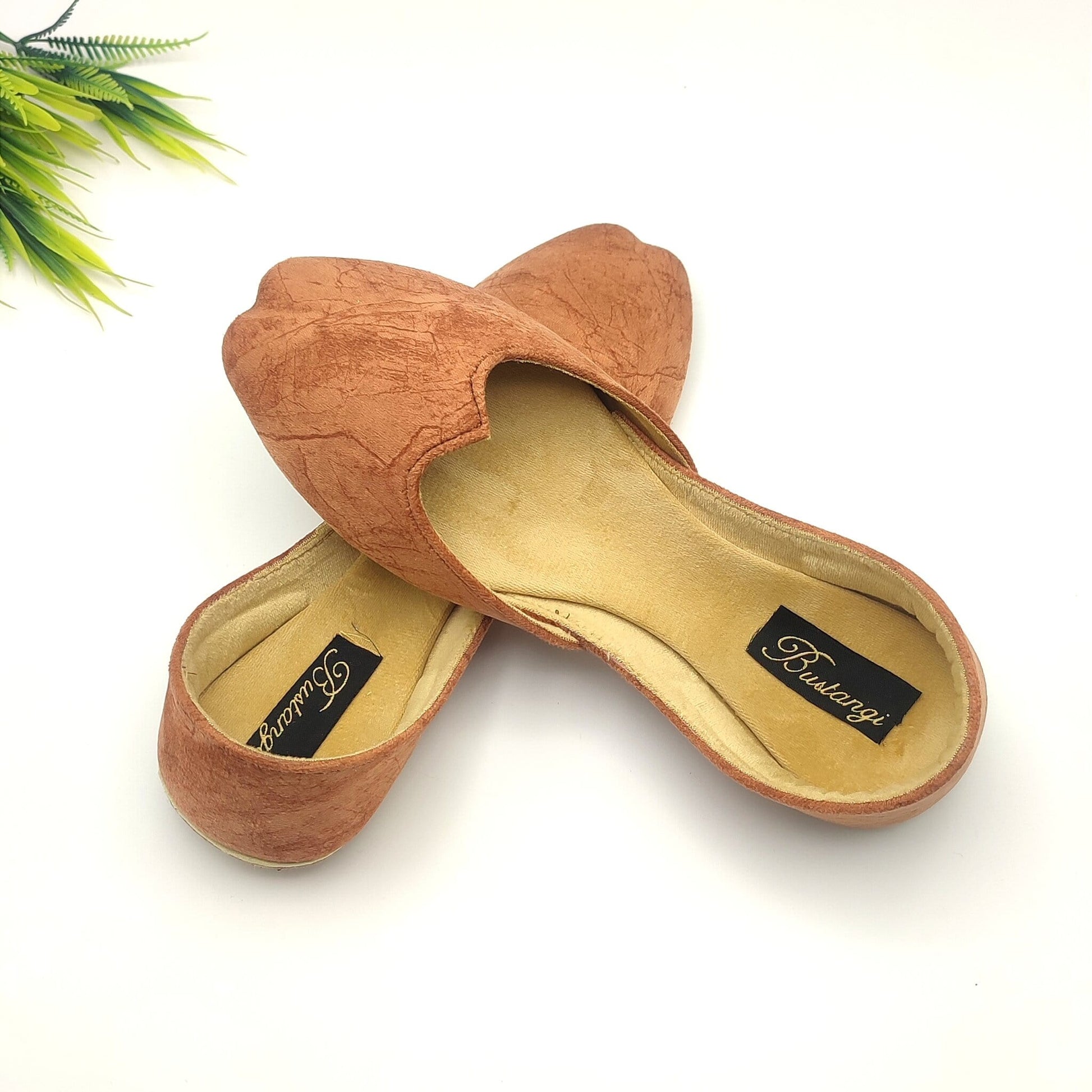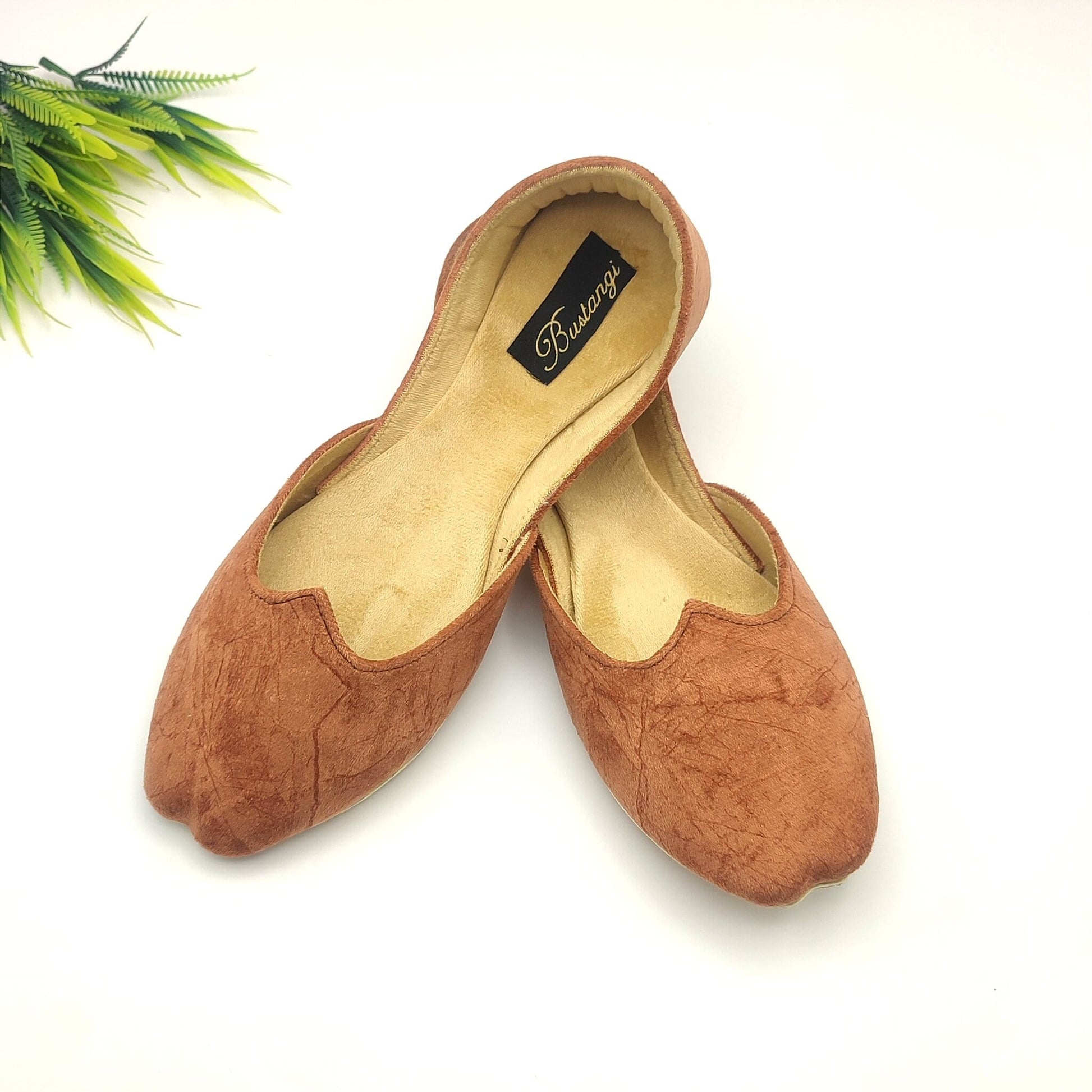 Featuring luxurious abstract lining velvet khussa along with pointed front design. Comfortable double padded cushioning is used with leather sole for additional comfort. This khussa is available in Browncolor.