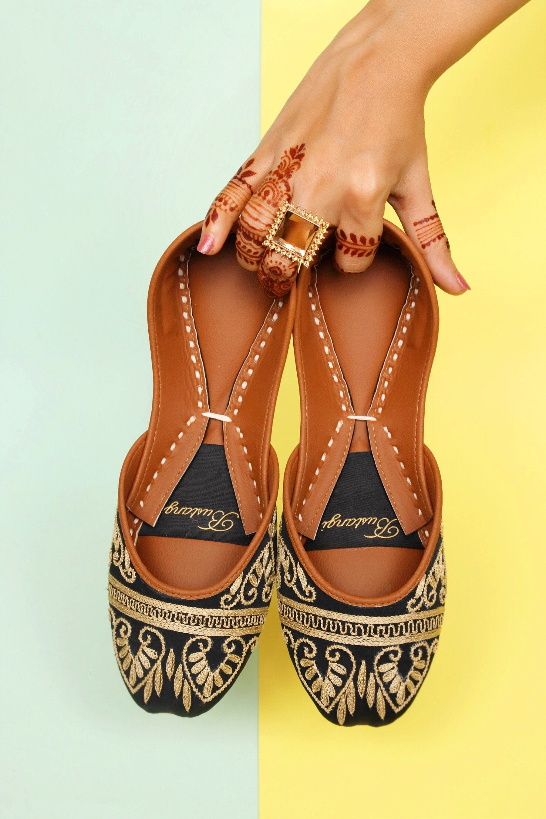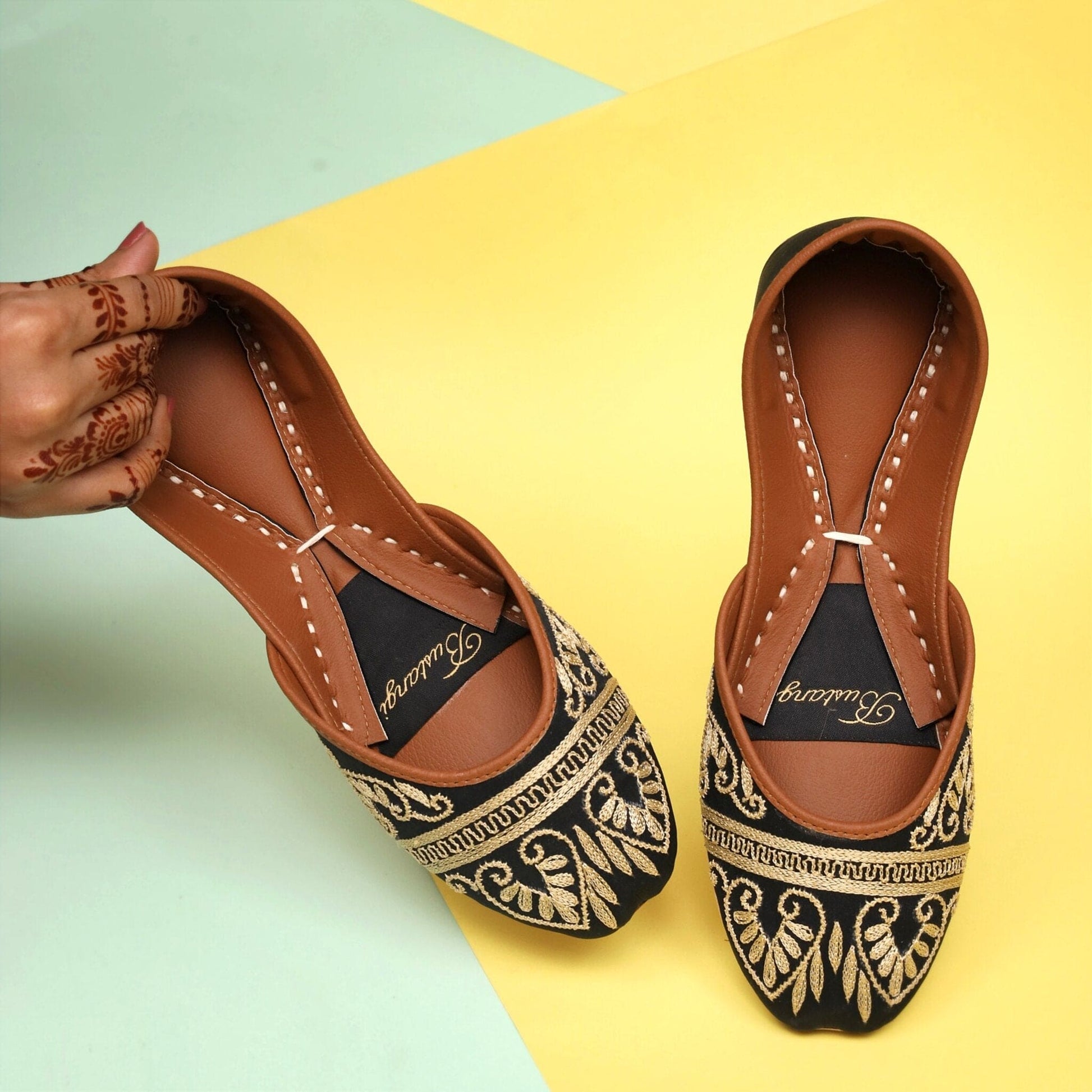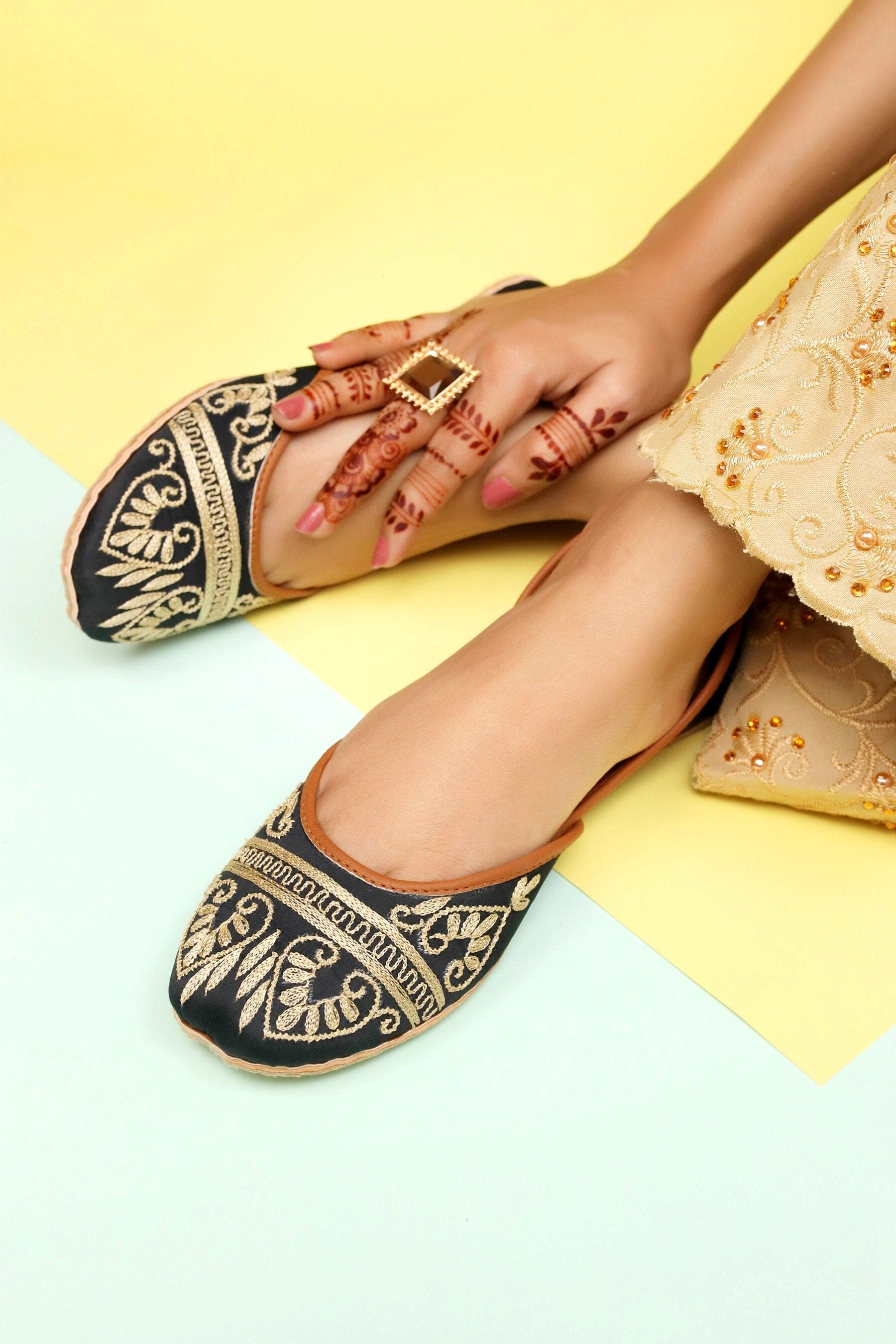 This embroidery khussa is made of leather sole and provides excellent traction and support. Beautiful handcrafted embroidery is done over the upper part on a soft and breathable material. The slip-on khussa shoes design makes them easy to put on and take off, and the padded insole provides extra cushioning for your feet.