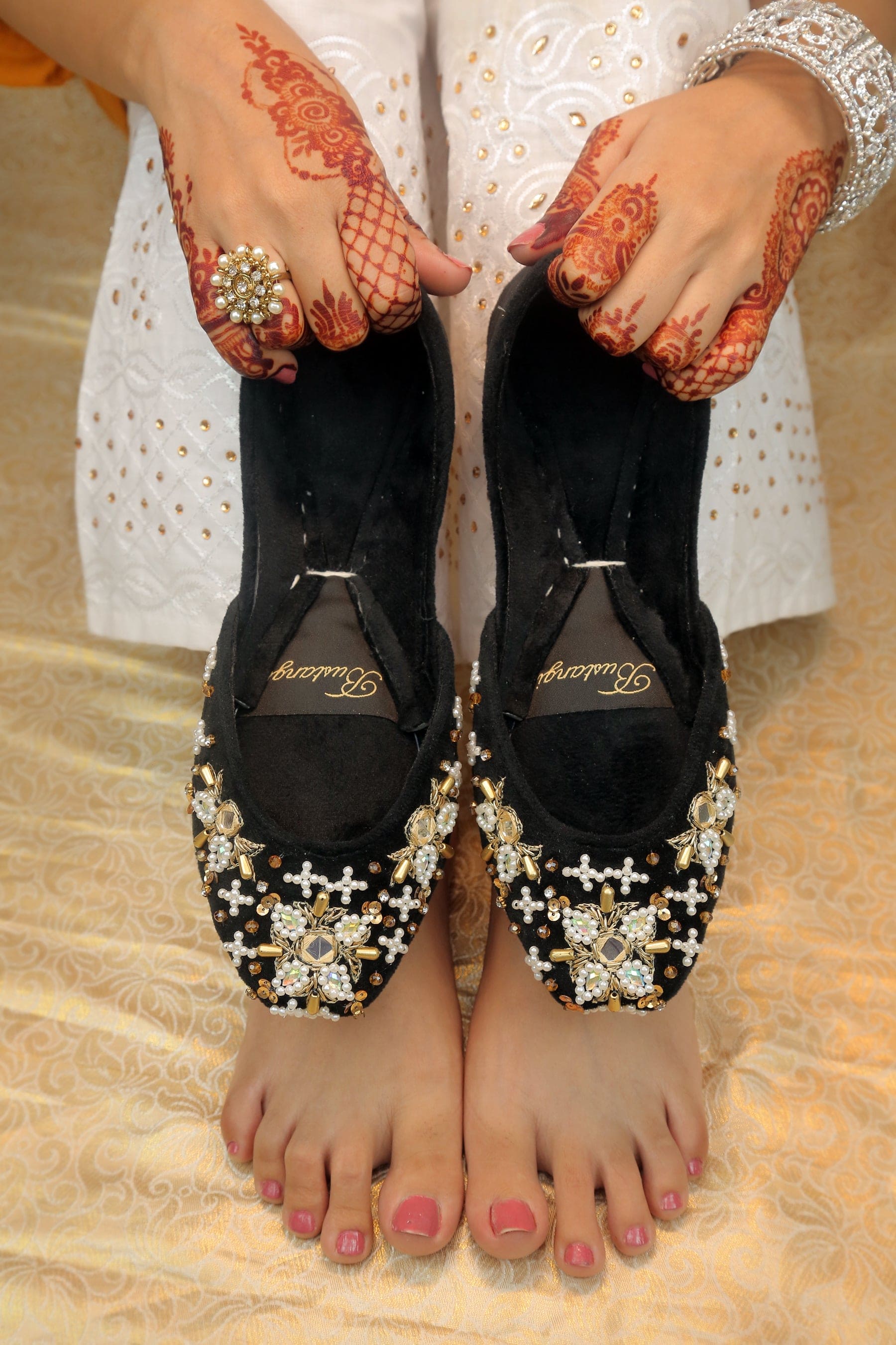 This embroidery khussa is made of leather sole and provides excellent traction and support. Beautiful handcrafted embroidery is done over the upper part on a soft and breathable material. The slip-on khussa shoes design makes them easy to put on and take off, and the padded insole provides extra cushioning for your feet.