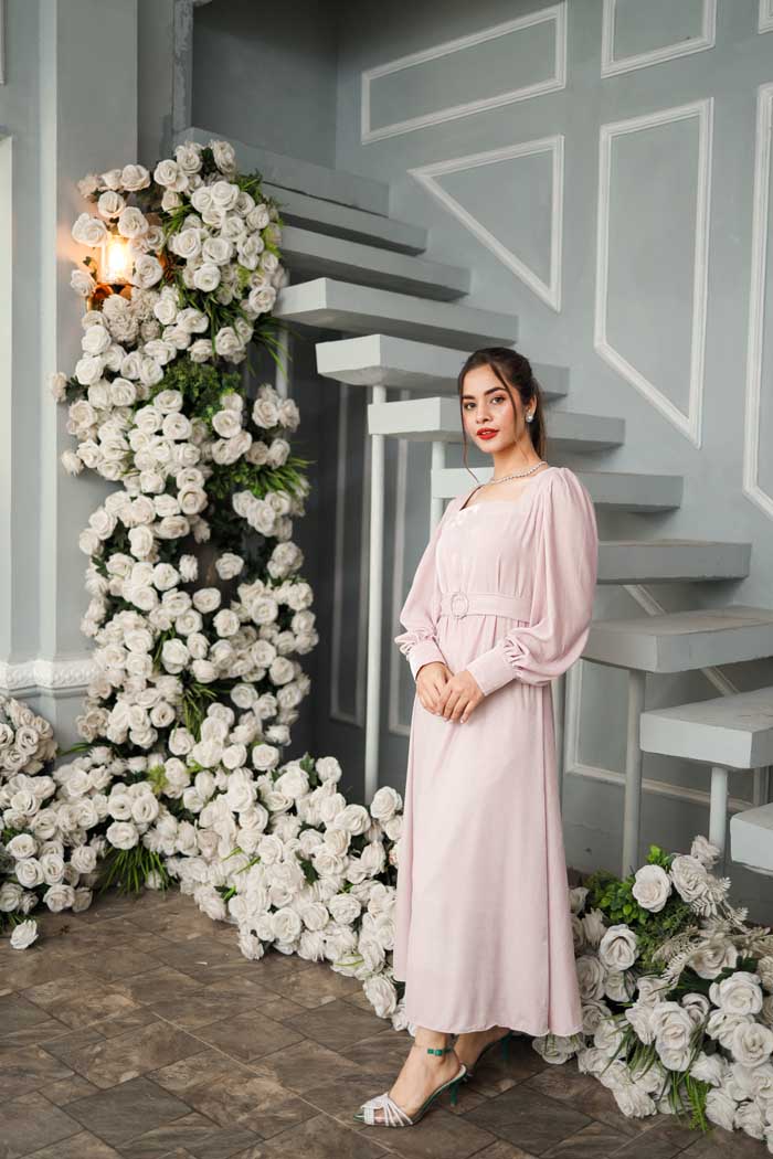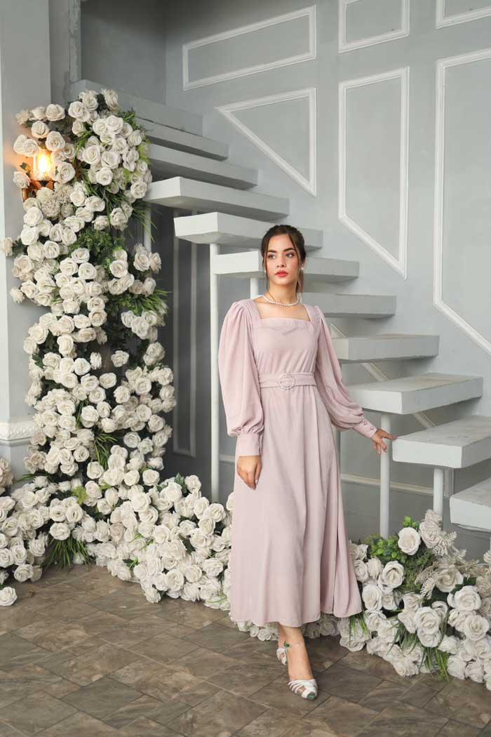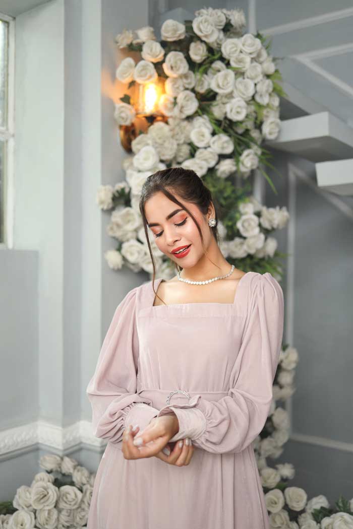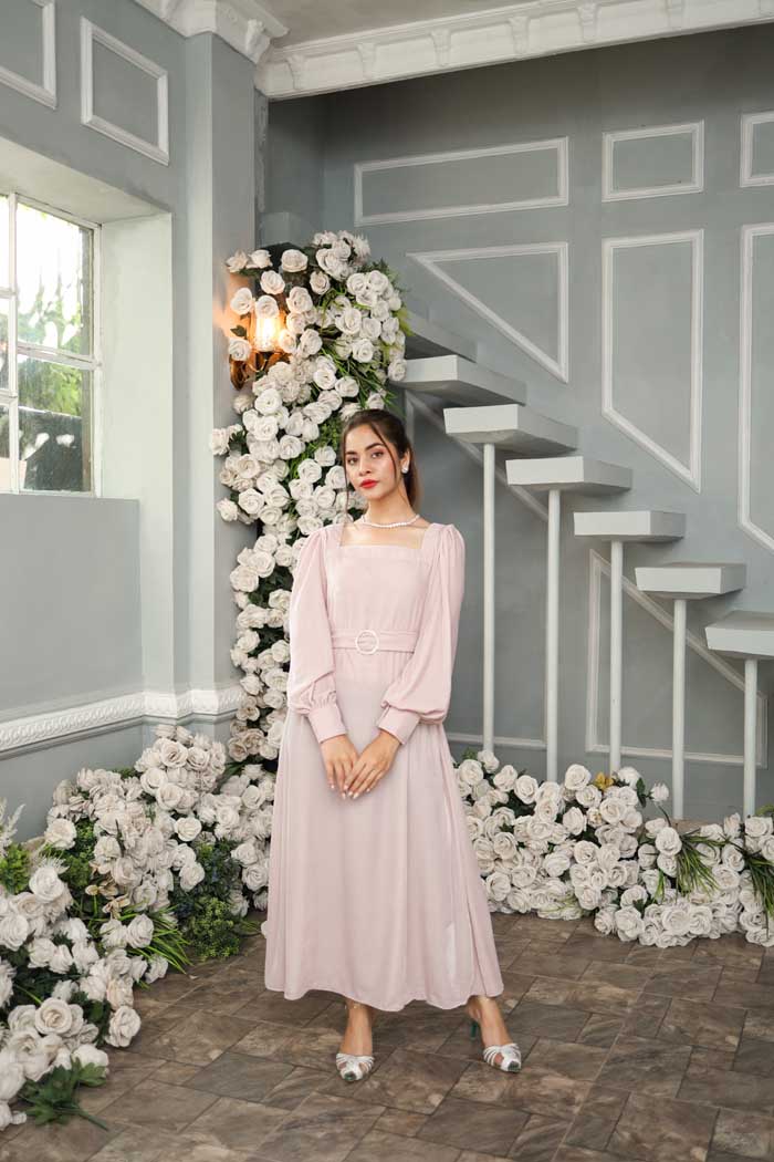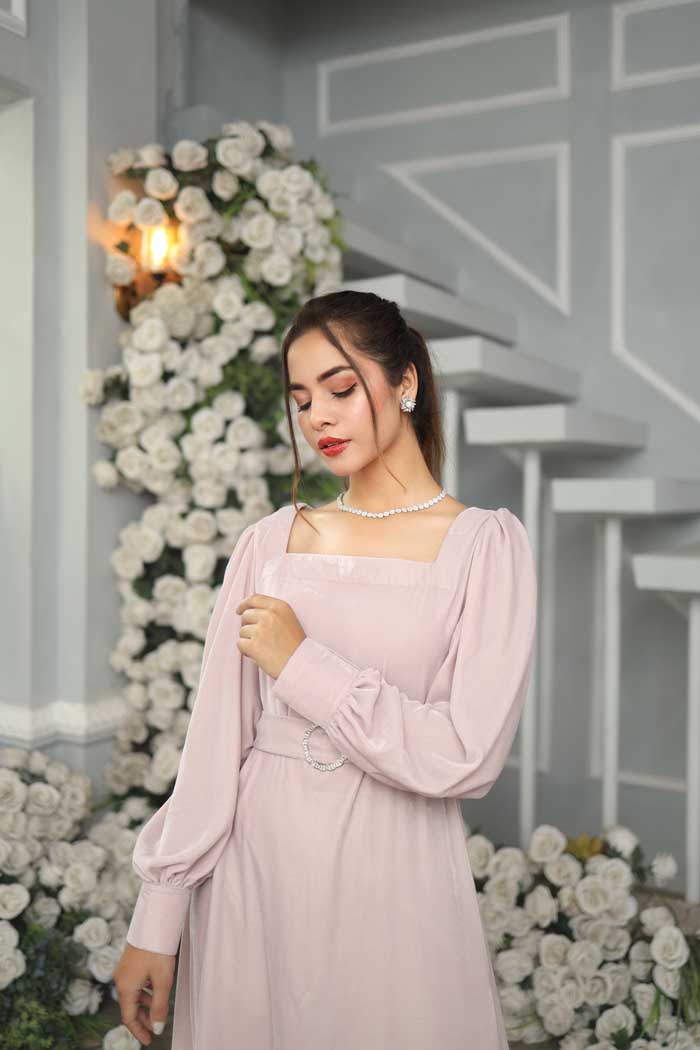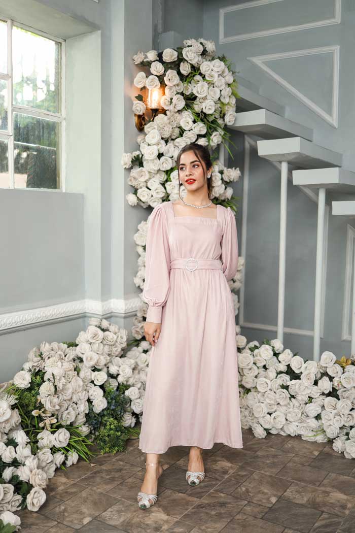A classic dress with dreamy velvet fabrication. With a square neckline, our signature puffy cuff sleeves and a fitted bodice, this velvet dress is perfect for all your outings this winter! To add further elegance to the dress, we have added a silver buckle to the belt.