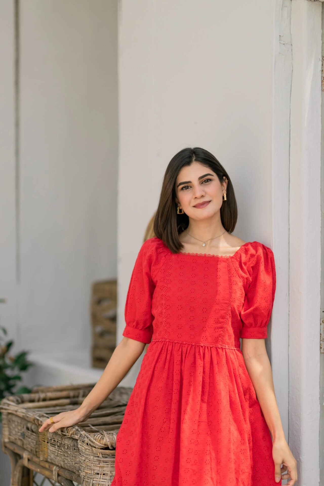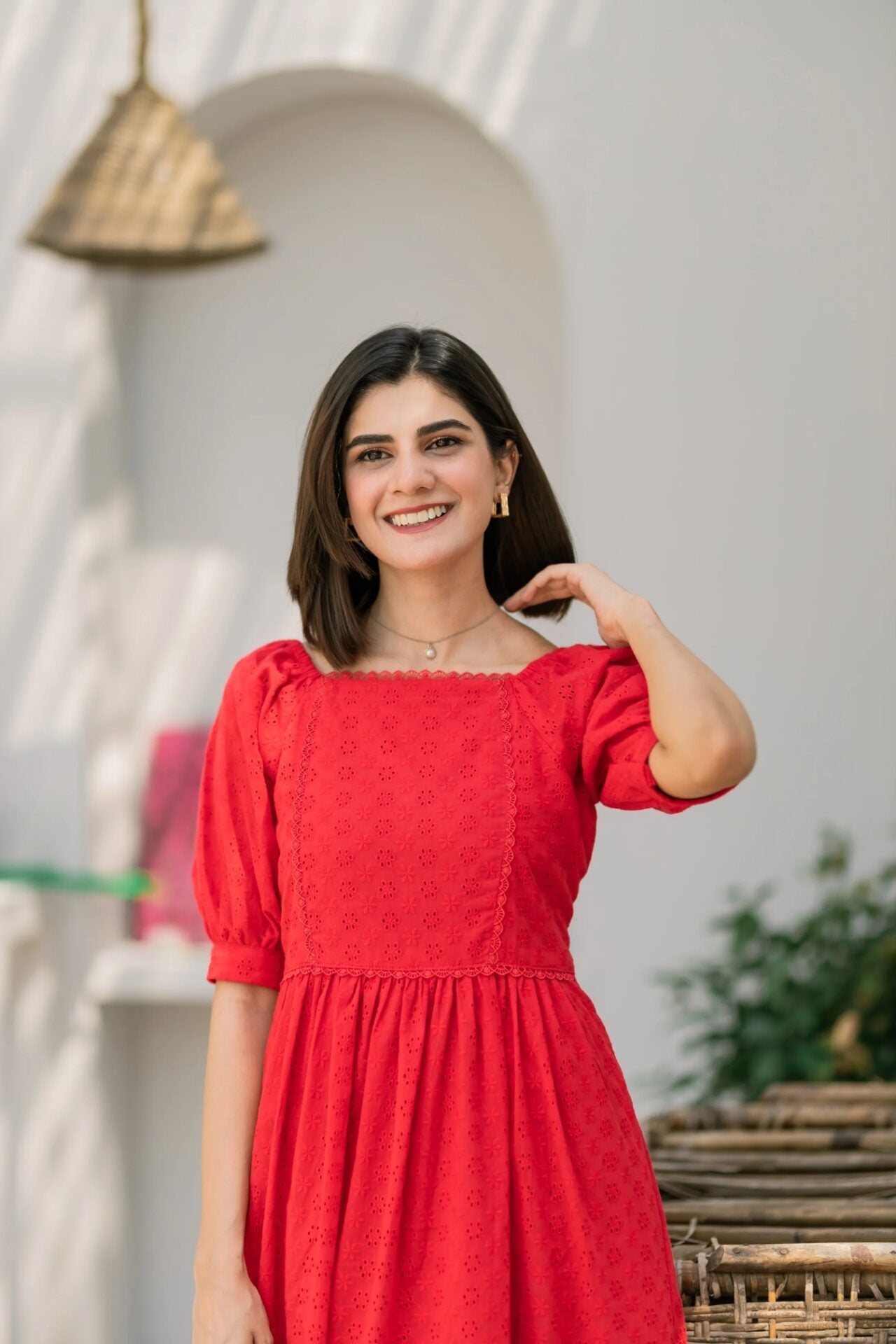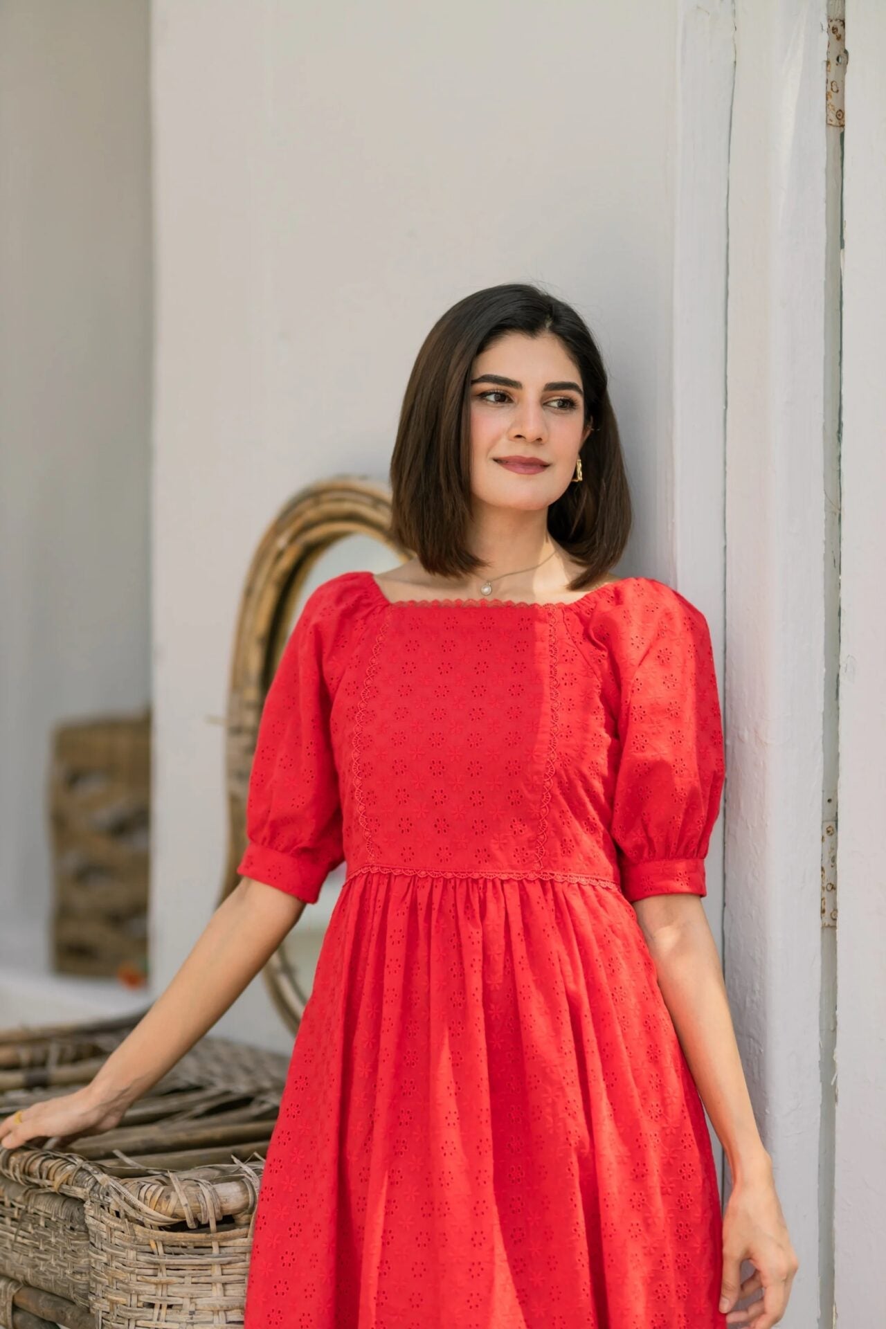 - Fabric of the dress is Eyelet (attached lining).