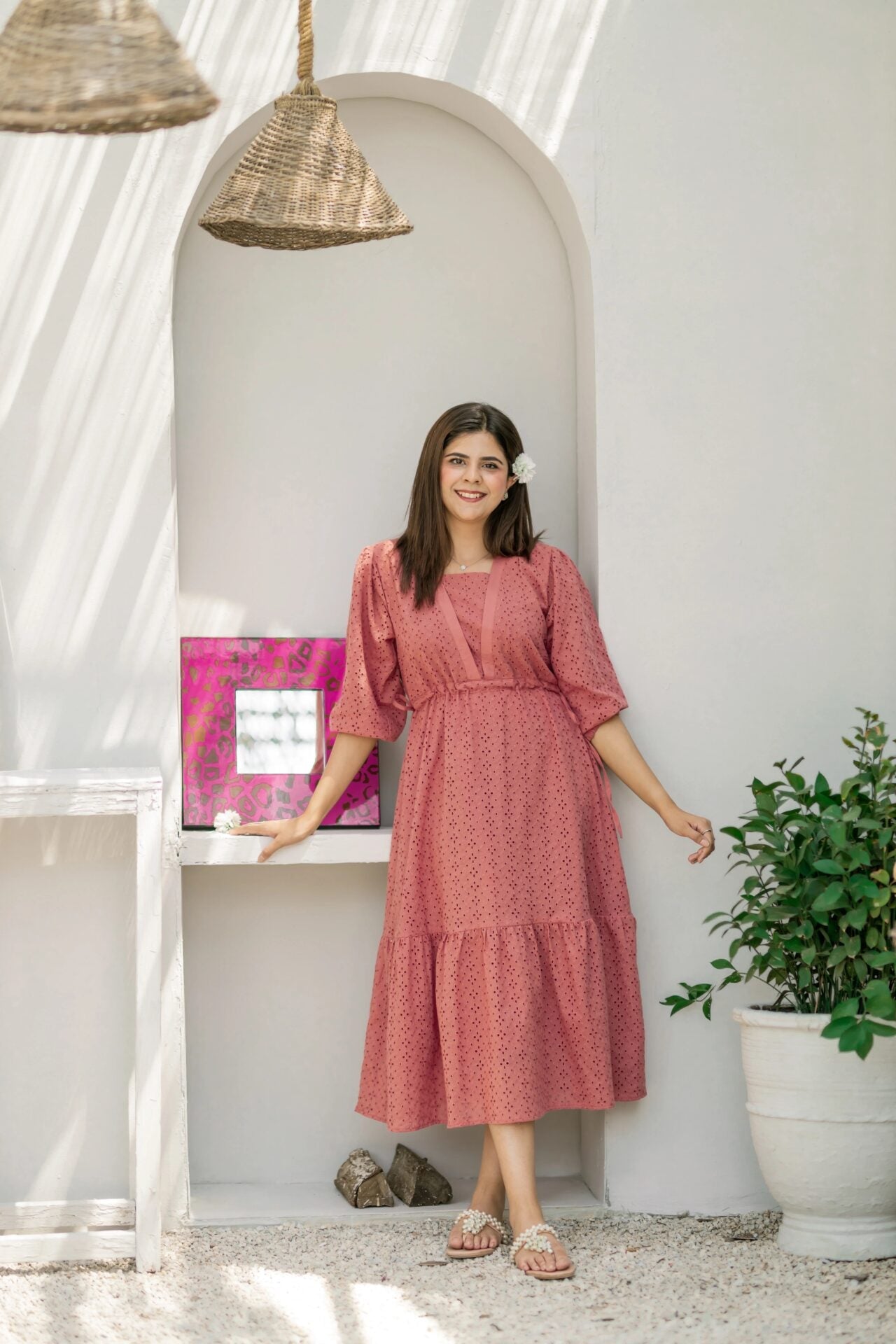 - Fabric of the dress is Eyelet (attached lining).
