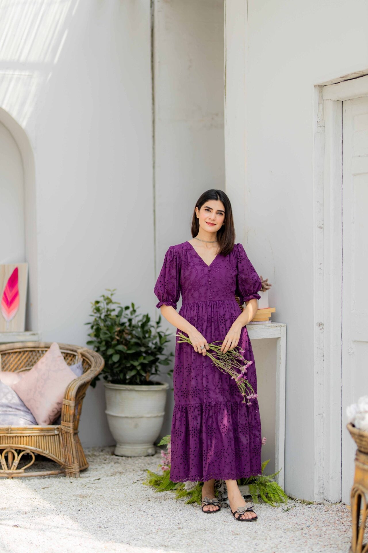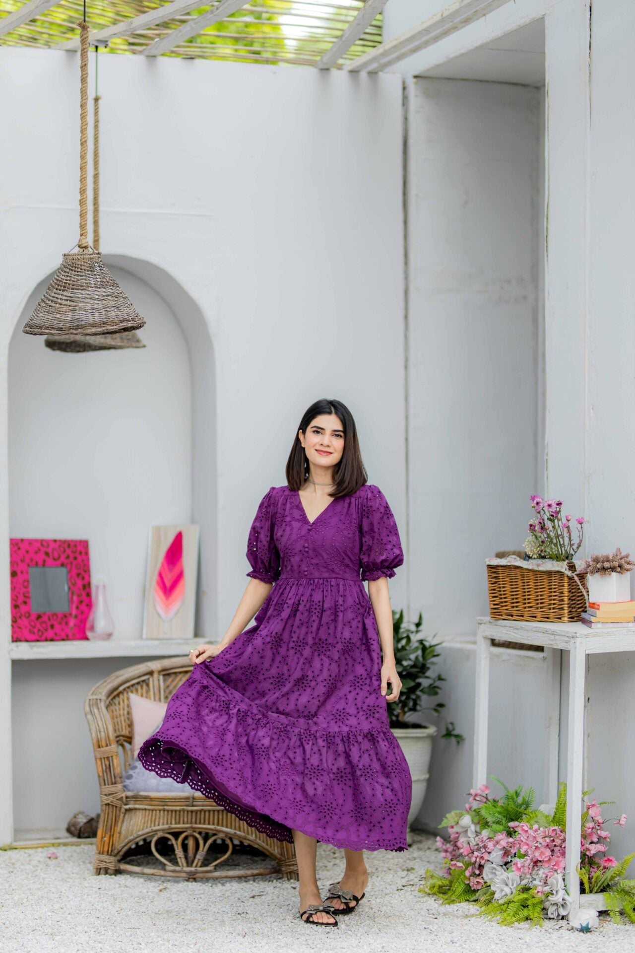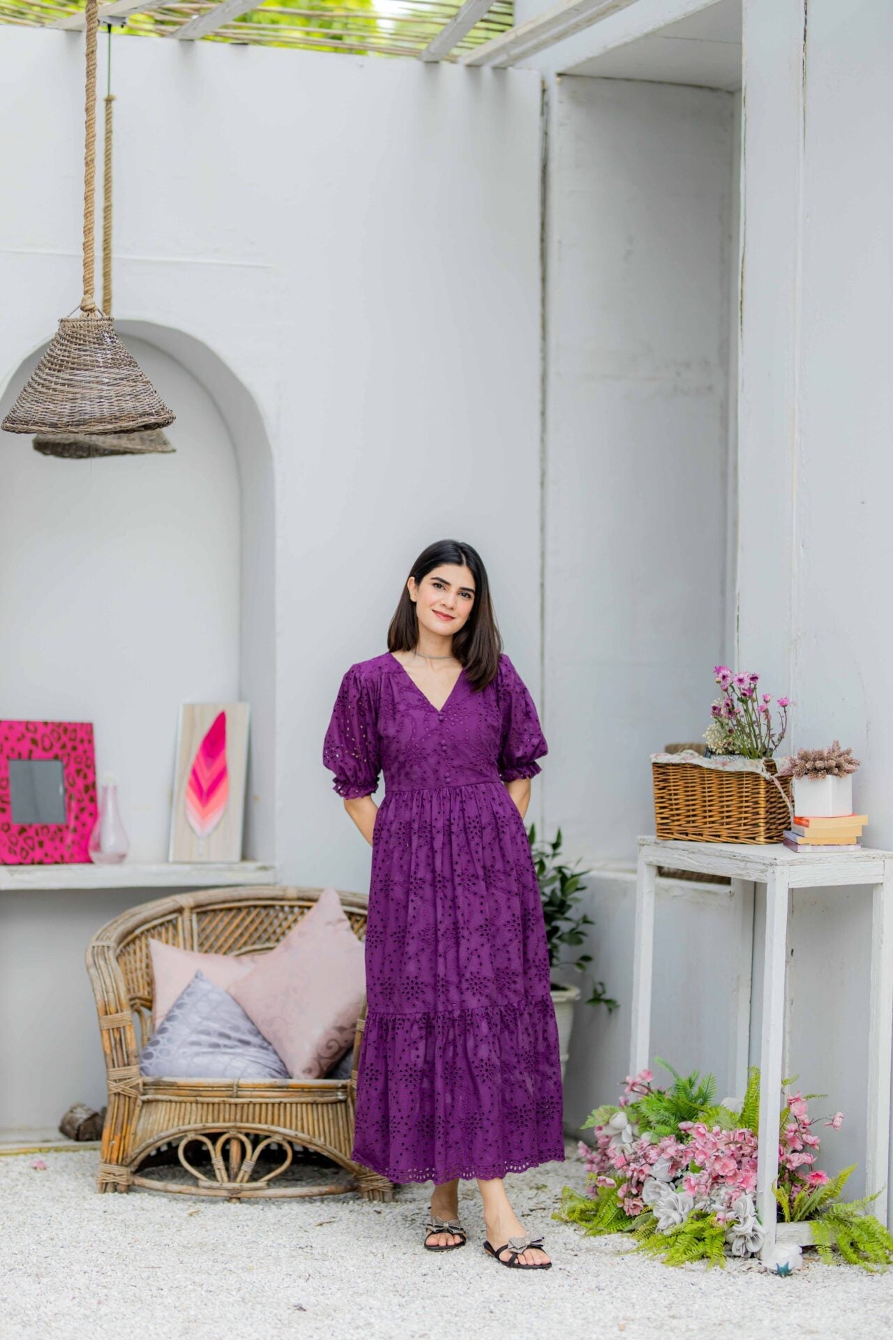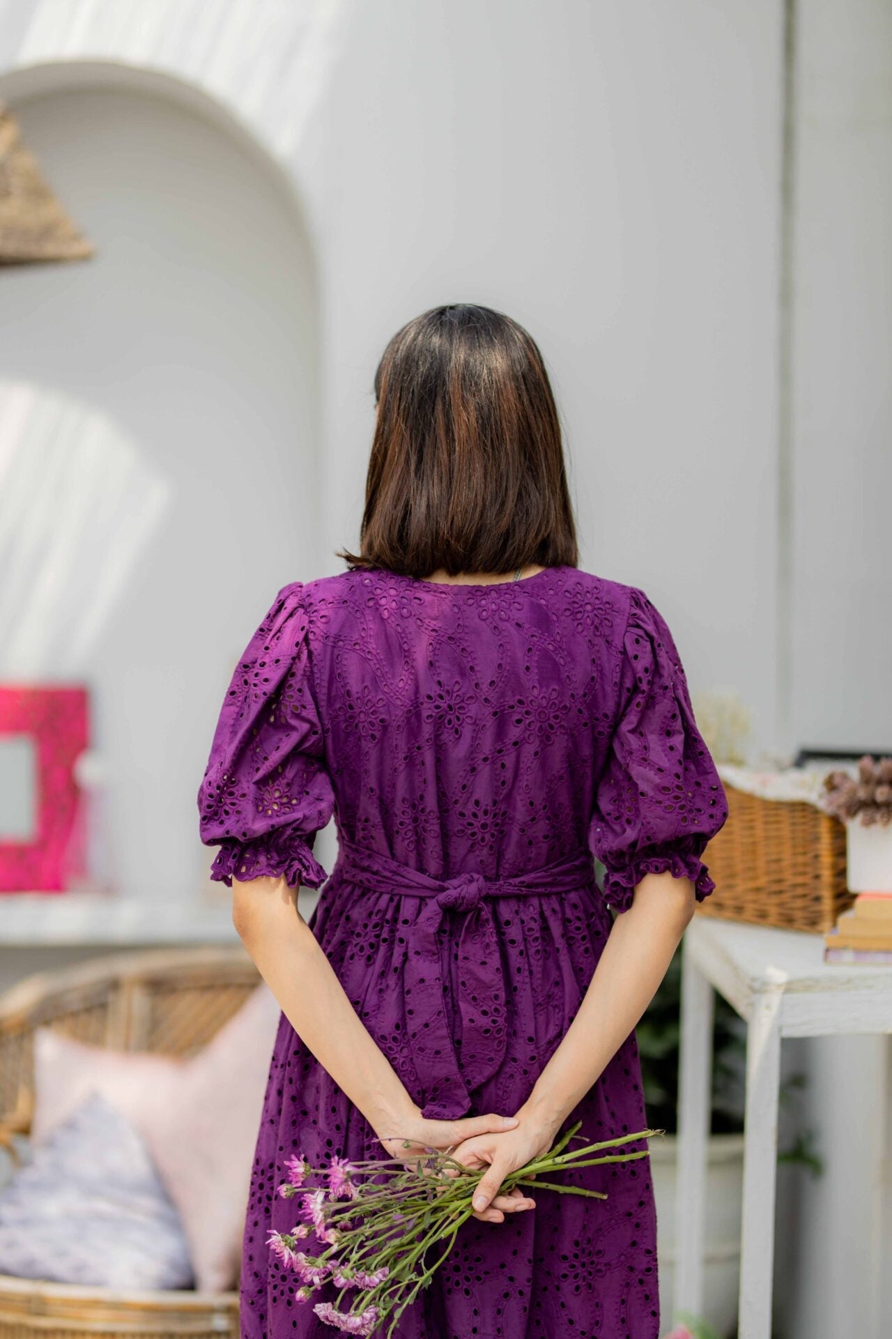 Fabric of the dress is Eyelet (Chikan).