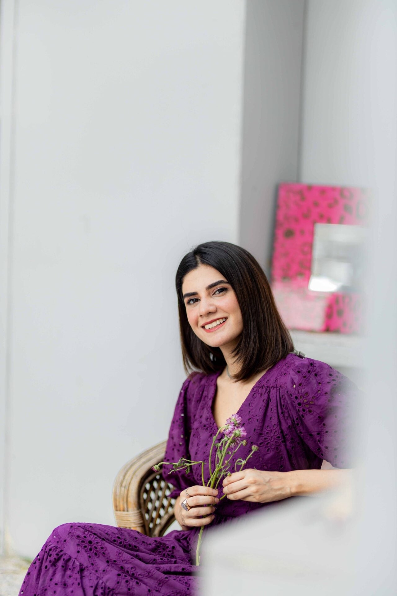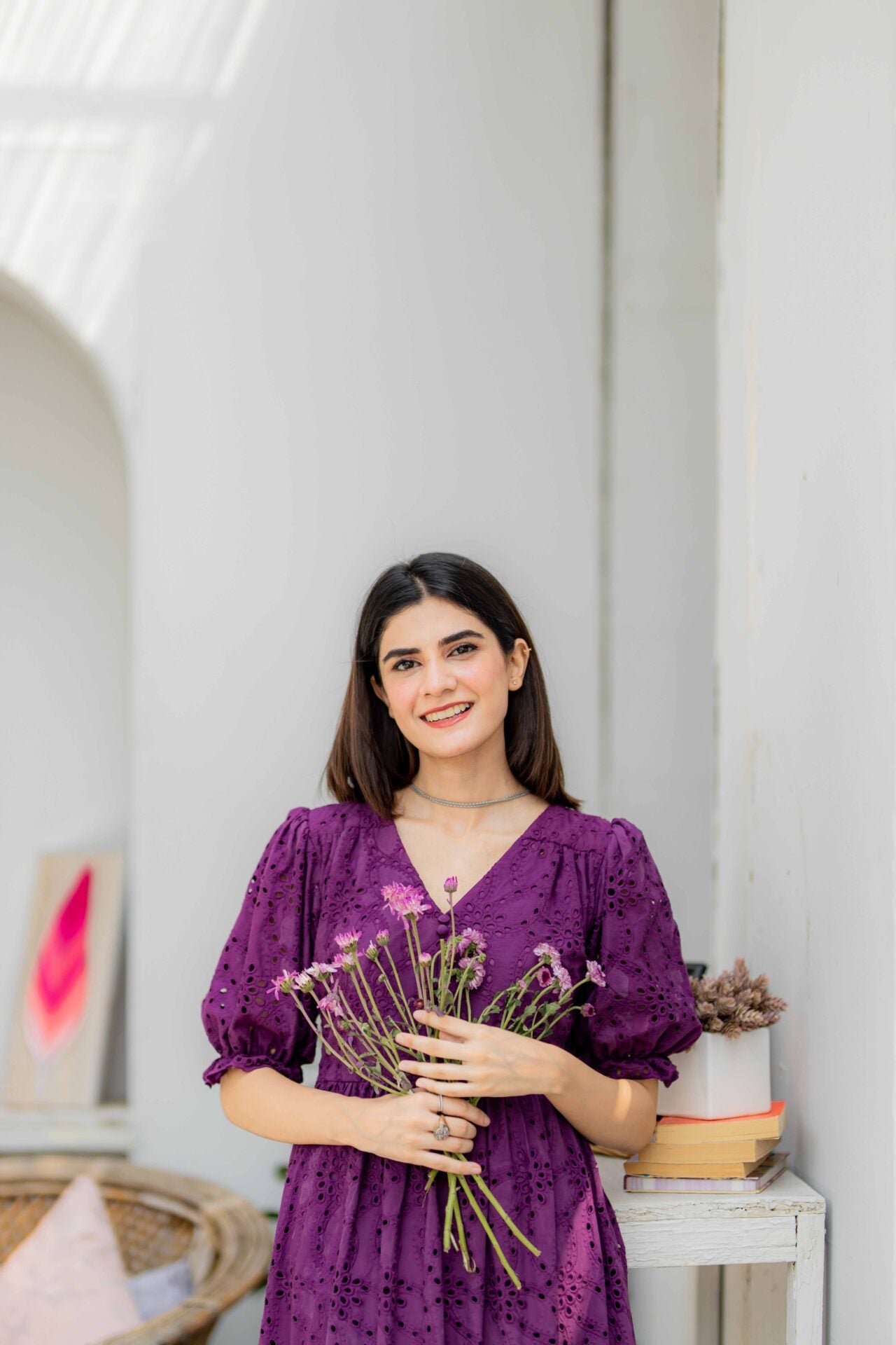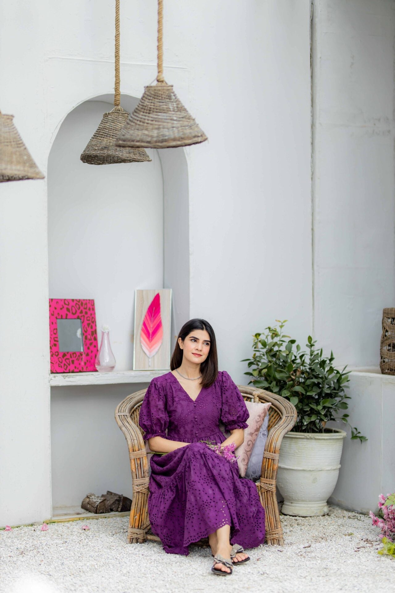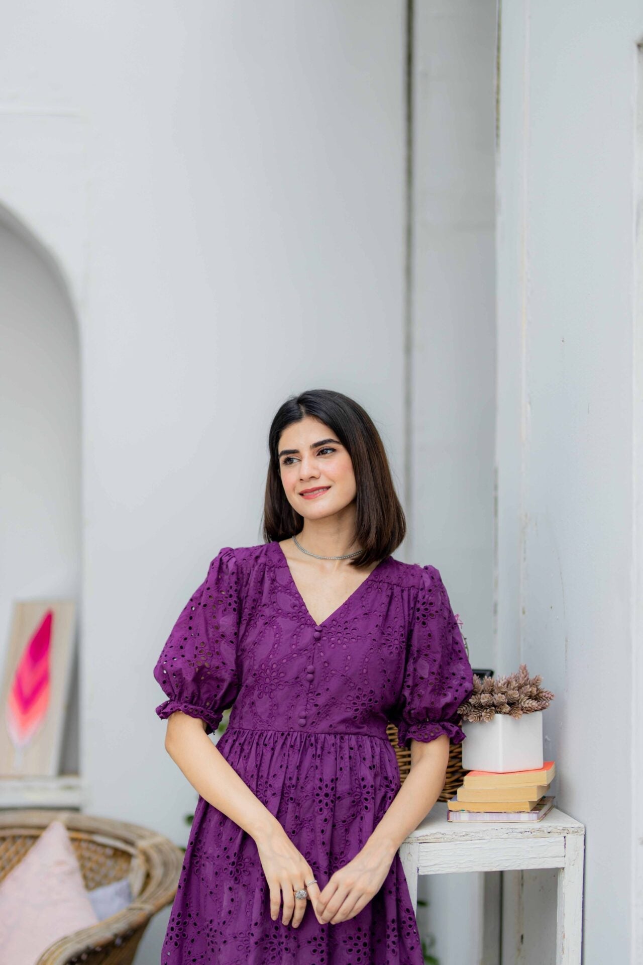 Fabric of the dress is Eyelet (Chikan).