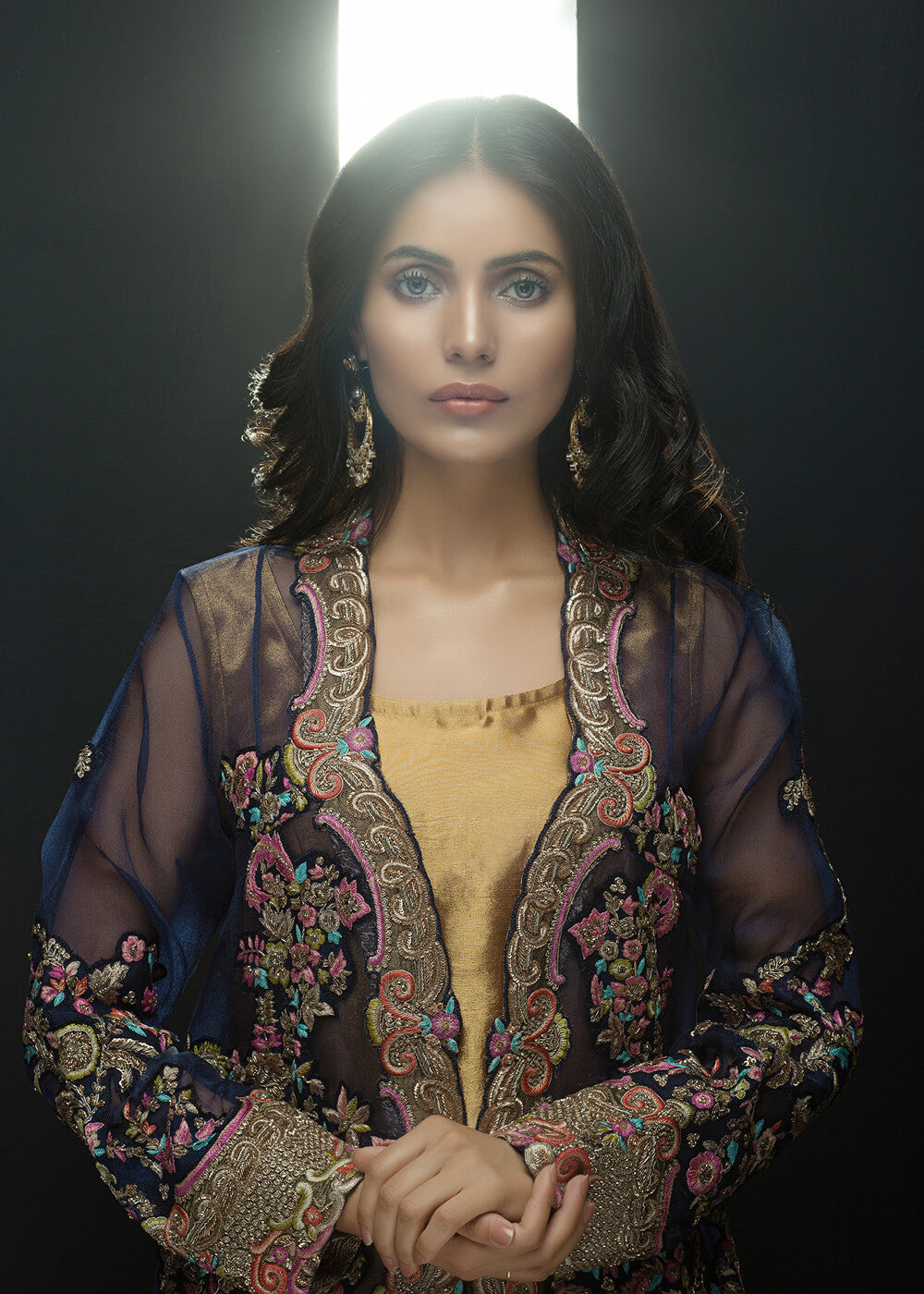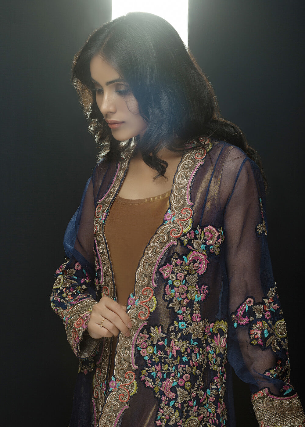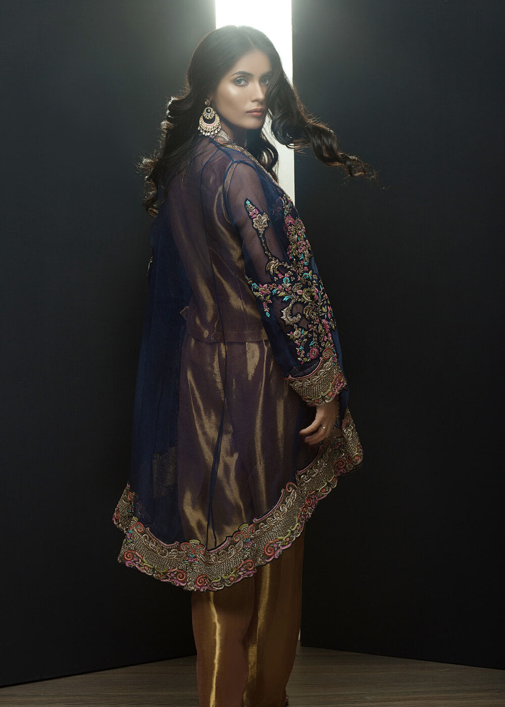 Indulge in most luxurious hand embroided jacket with tissue under shirt and pants to give regal as well as trendy look.